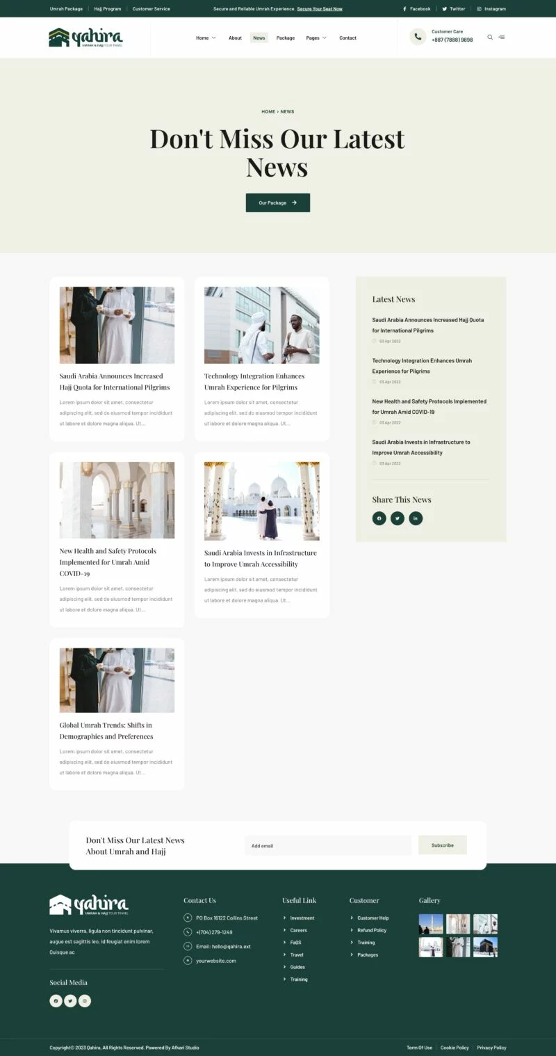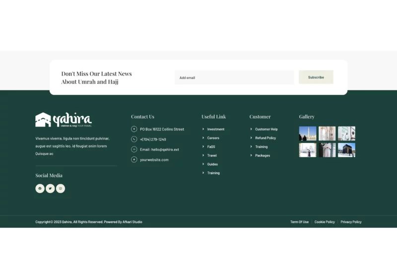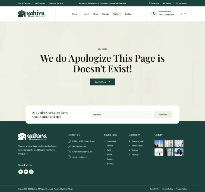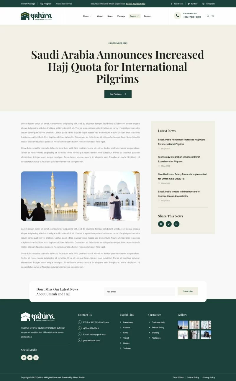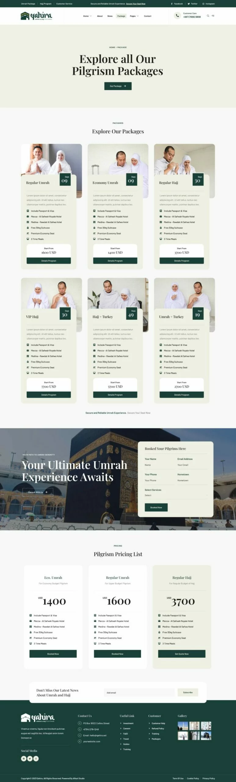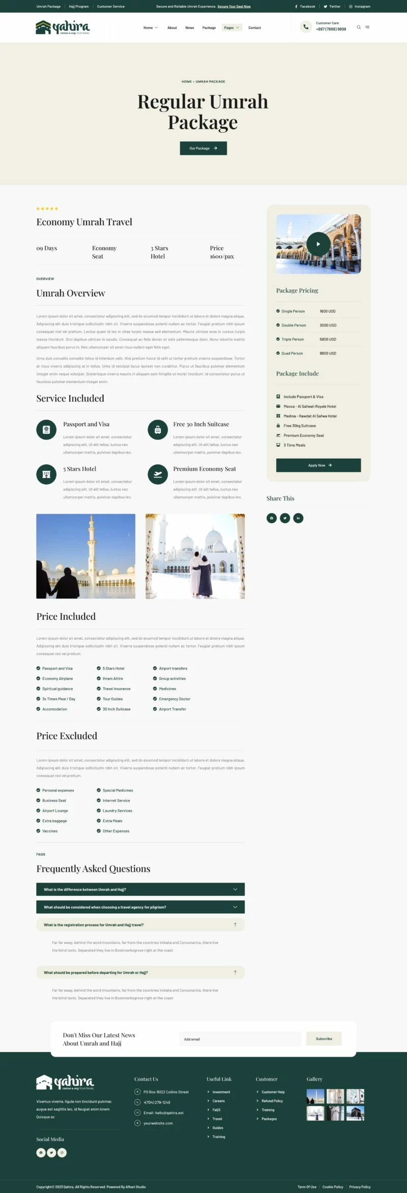 با کیت قالب المنتور تورهای عمره و حج Qahira، به یک سفر بیدغدغه و شخصیسازیشده برای عمره و حج بروید. این قالب با دقت طراحی شده و از المنتور رایگان استفاده میکند، وبسایت شما را به یک نمونه از سادگی و انعطافپذیری تبدیل میکند.
