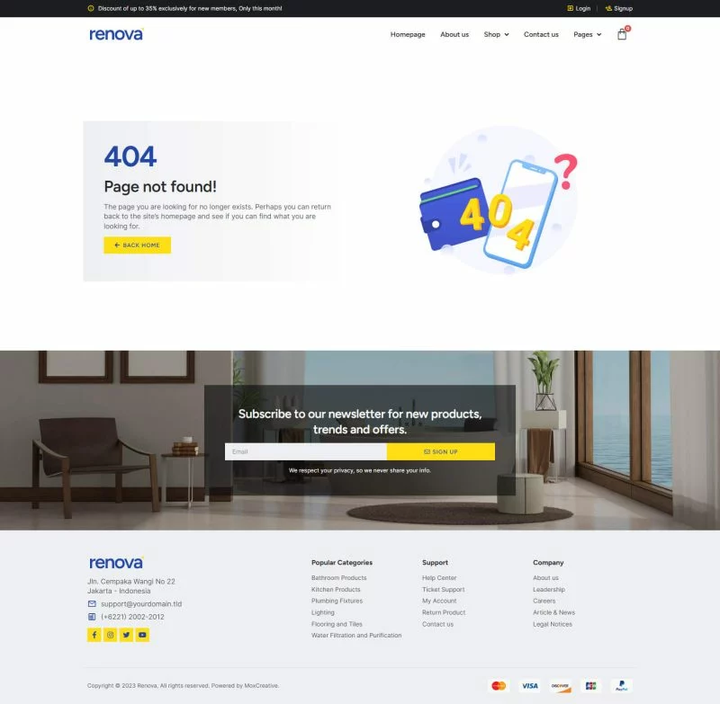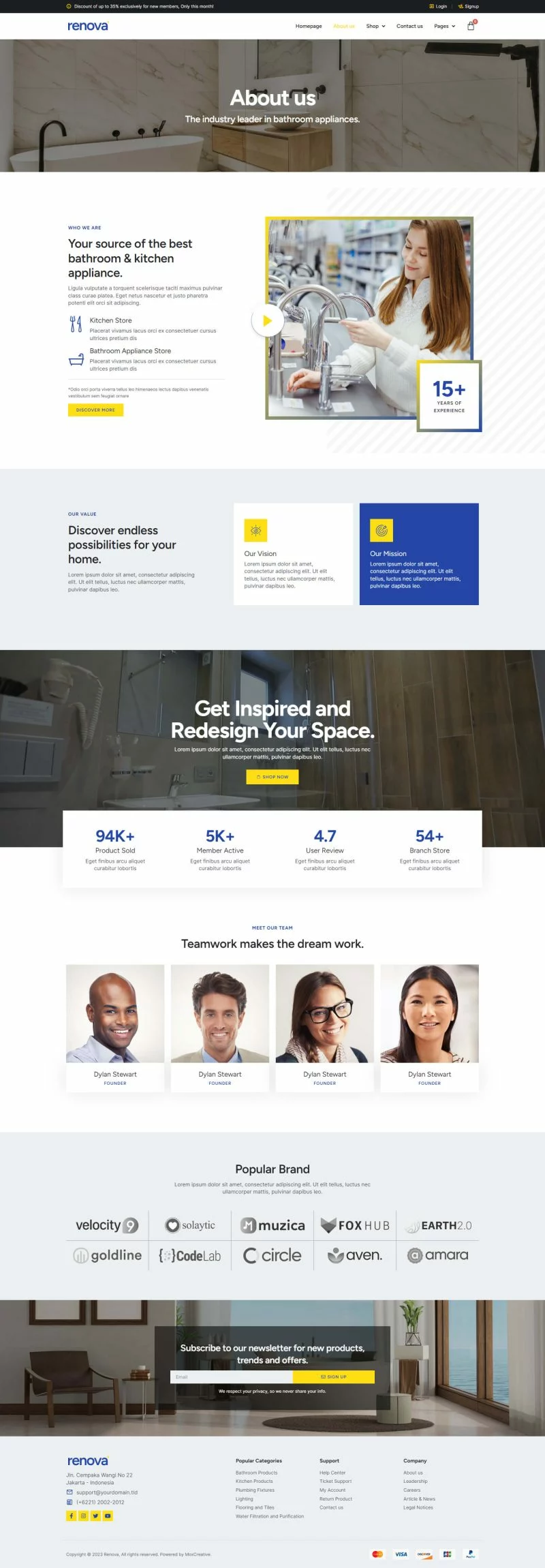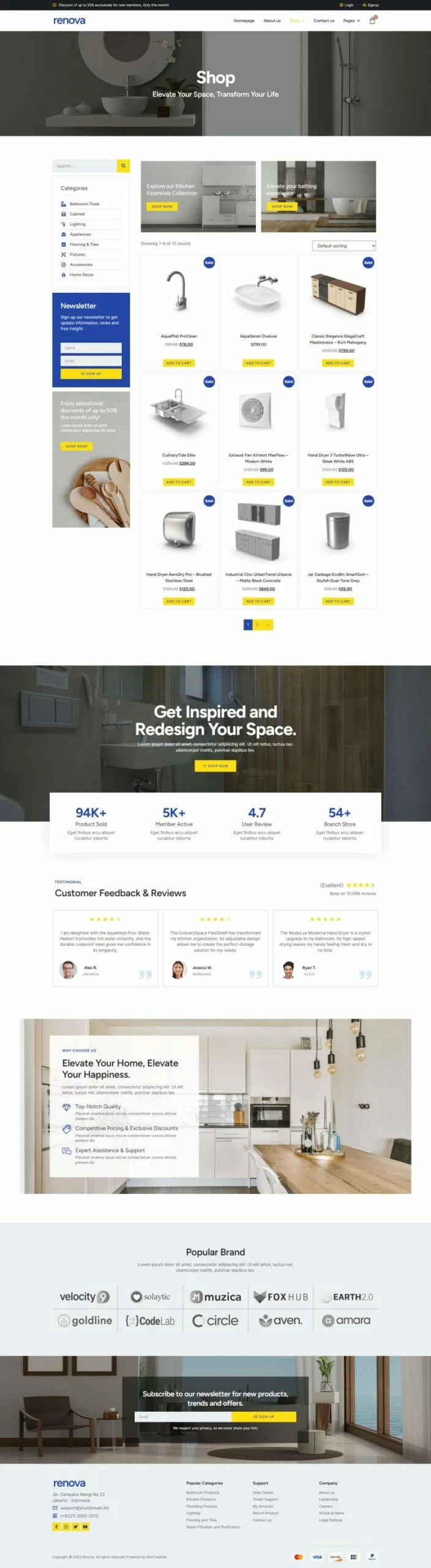 با استفاده از کیت قالب المنتور فروشگاه لوازم آشپزخانه Renova، در زمان ساخت وبسایت فروشگاه لوازم آشپزخانه، حمام و بازسازی صرفهجویی کنید. با استفاده از صفحهساز المنتور، میتوانید به راحتی آن را ویرایش یا سفارشیسازی کنید، نیازی به کدنویسی نیست، فقط بکشید و رها کنید.