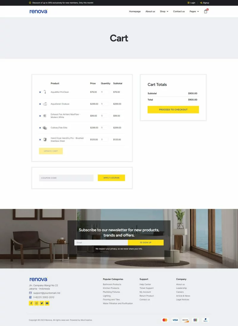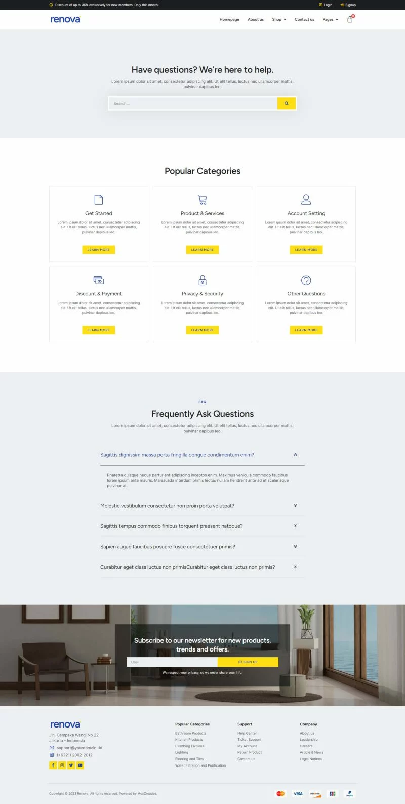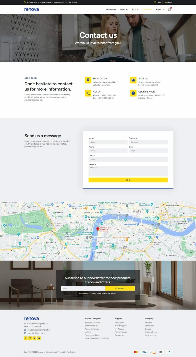 با استفاده از کیت قالب المنتور فروشگاه لوازم آشپزخانه Renova، در زمان ساخت وبسایت فروشگاه لوازم آشپزخانه، حمام و بازسازی صرفهجویی کنید. با استفاده از صفحهساز المنتور، میتوانید به راحتی آن را ویرایش یا سفارشیسازی کنید، نیازی به کدنویسی نیست، فقط بکشید و رها کنید.