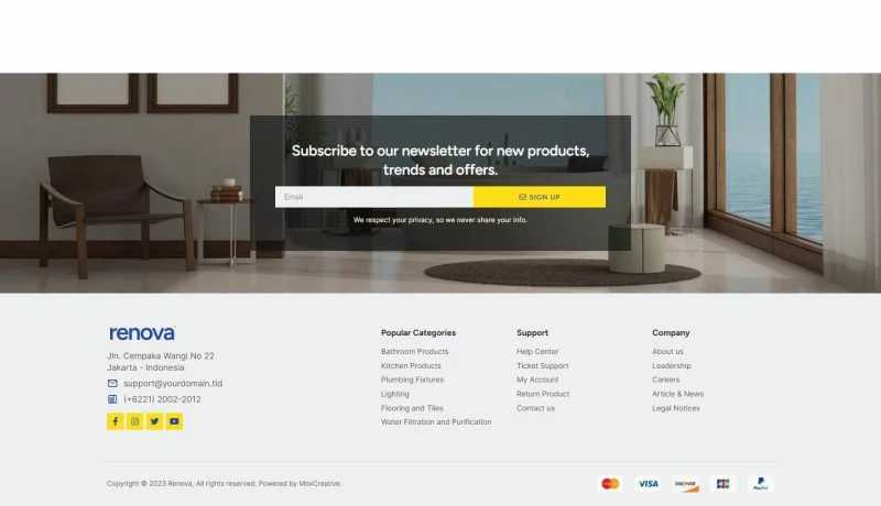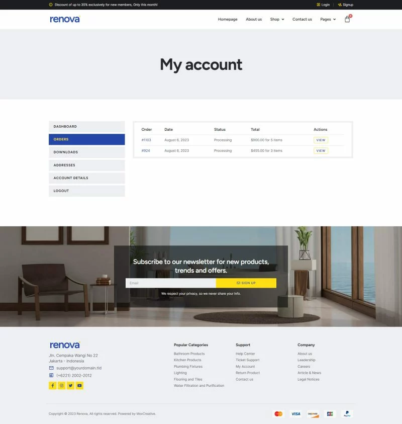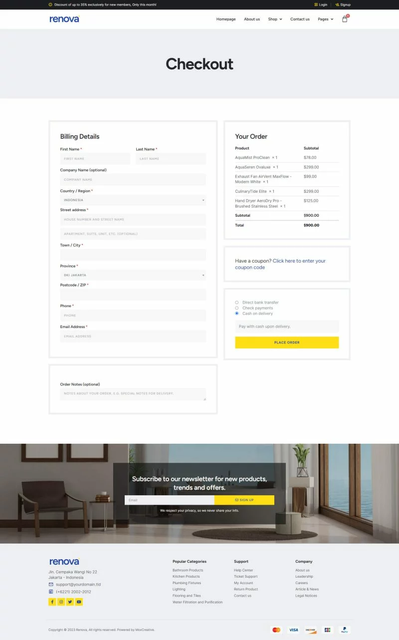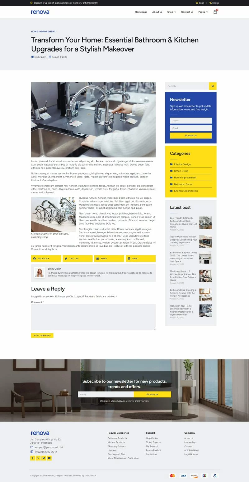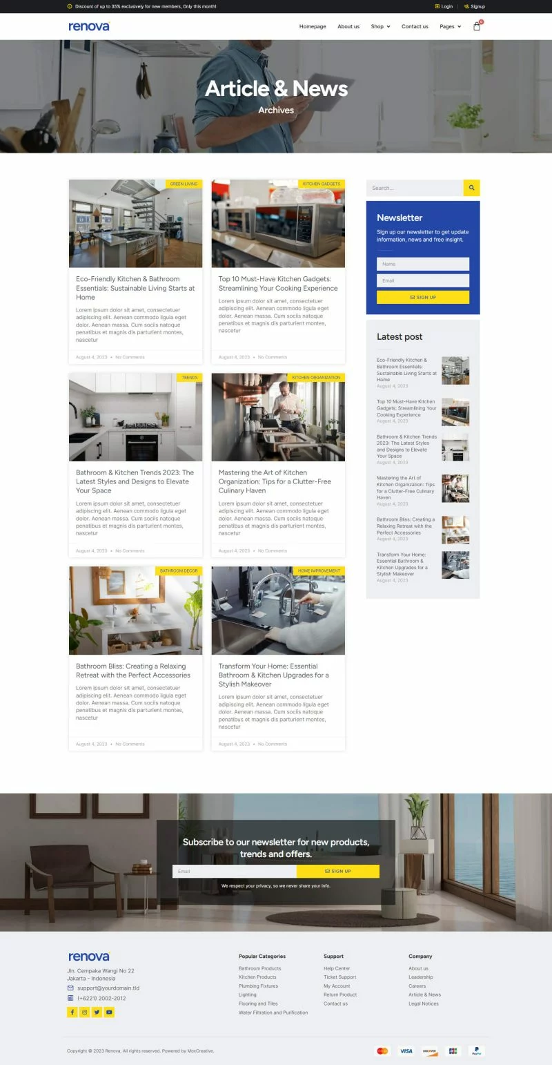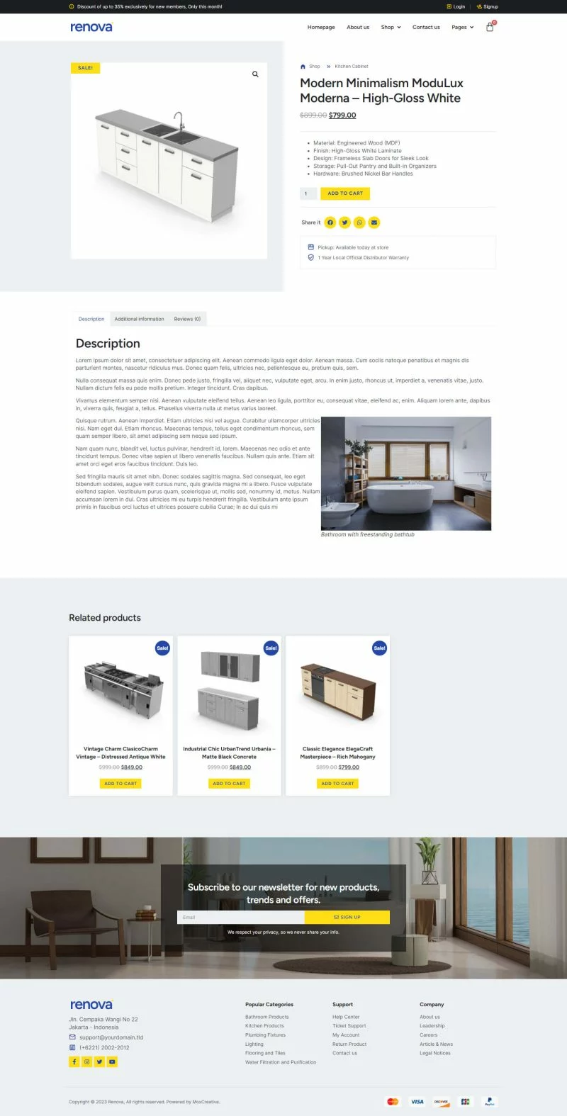 کیت قالب المنتور فروشگاه لوازم آشپزخانه Renova برای وبسایت فروشگاه ووکامرس لوازم آشپزخانه، حمام و بازسازی است. این کیت قالب به شما کمک میکند تا هر وبسایتی مرتبط با فروشگاه آشپزخانه را ایجاد کنید. شما میتوانید به راحتی هر چیزی مربوط به آشپزخانه را بفروشید و حتی یک وبلاگ درباره آشپزخانه ایجاد کنید. این کیت دارای بیش از 12 قالب از پیش ساخته شده با طراحی تمیز و سبک مدرن است.
