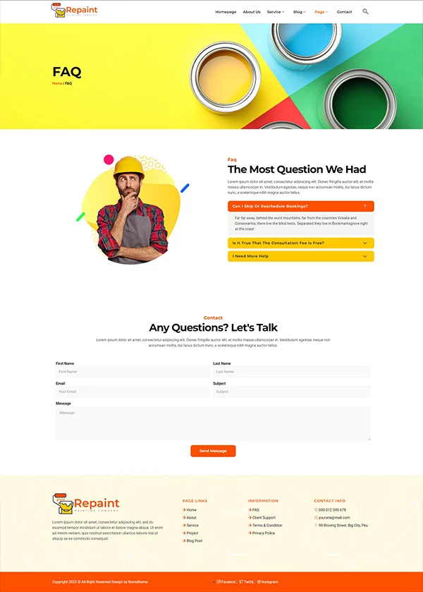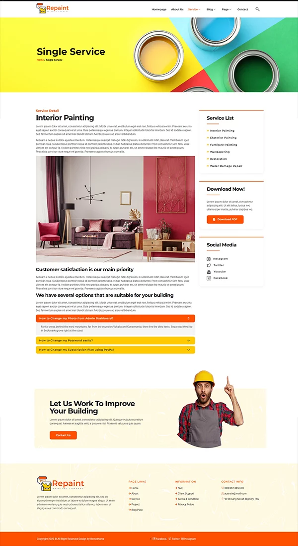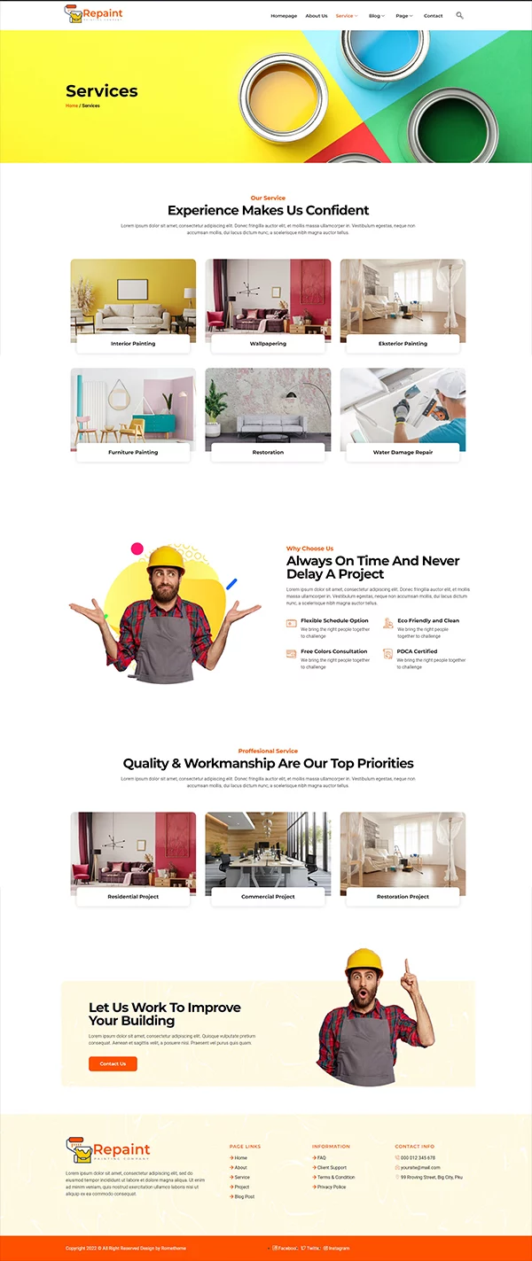 طراحی حرفهای و مدرن: کیت قالب ریپینت با طراحی حرفهای و مدرن خود، برای شرکتهای نقاشی و استودیوهای معماری ایدهآل است. این طراحی به شما کمک میکند تا کارها و خدمات خود را به بهترین شکل ممکن به نمایش بگذارید.