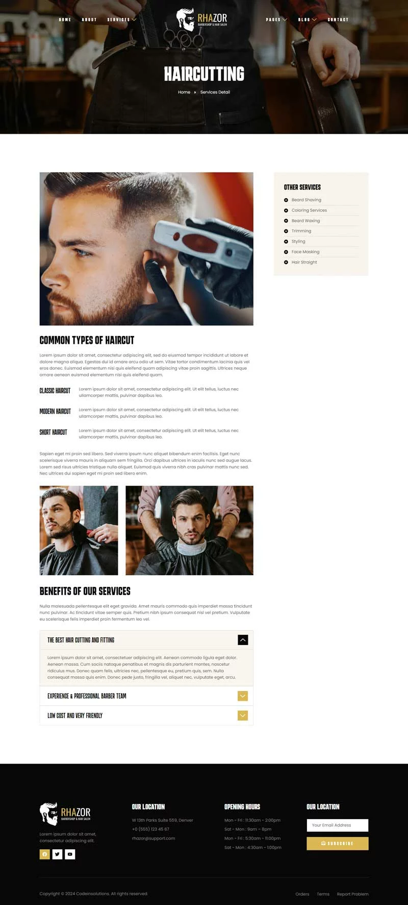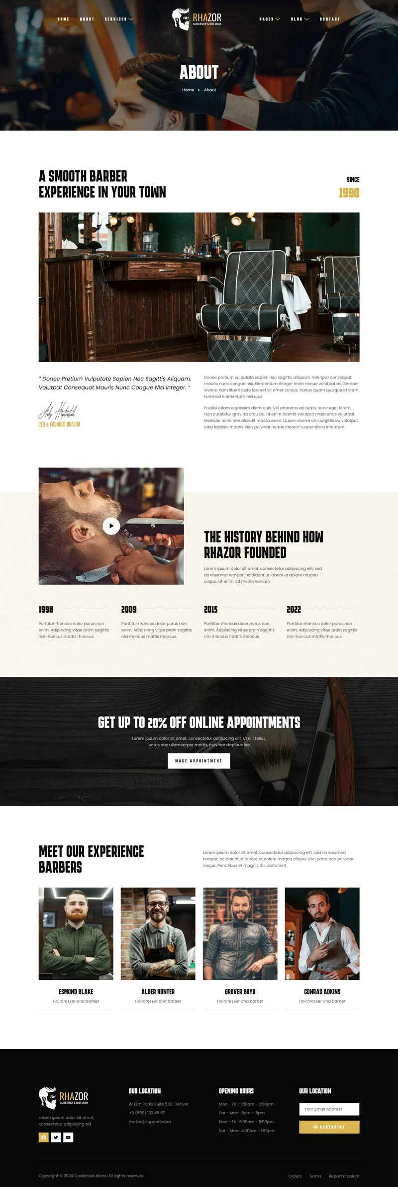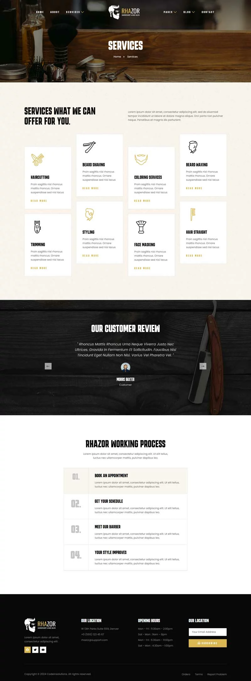 با طراحی مدرن و بروز، Rhazor تجربهای حرفهای و کاربرپسند را هم برای صاحبان سالن و هم مشتریان فراهم میکند. هر قالب به شکلی طراحی شده تا جنبههای مختلف کسبوکار شما، از منوی خدمات شیک گرفته تا نمونه کارهای جذاب، به خوبی برجسته شوند.