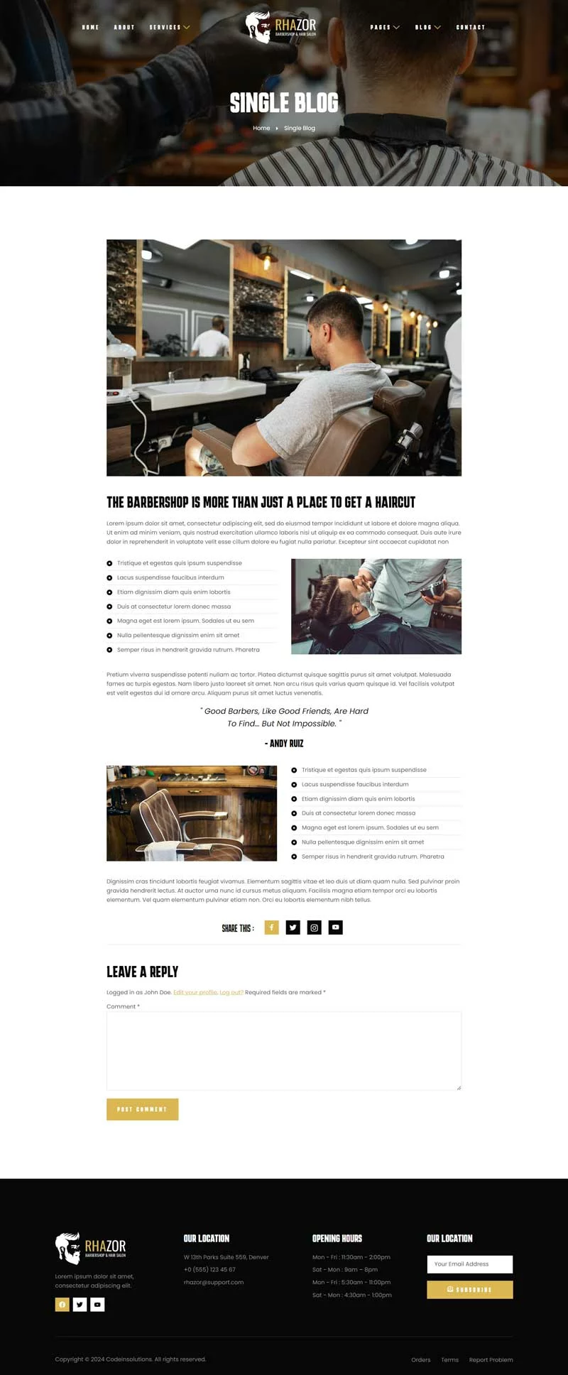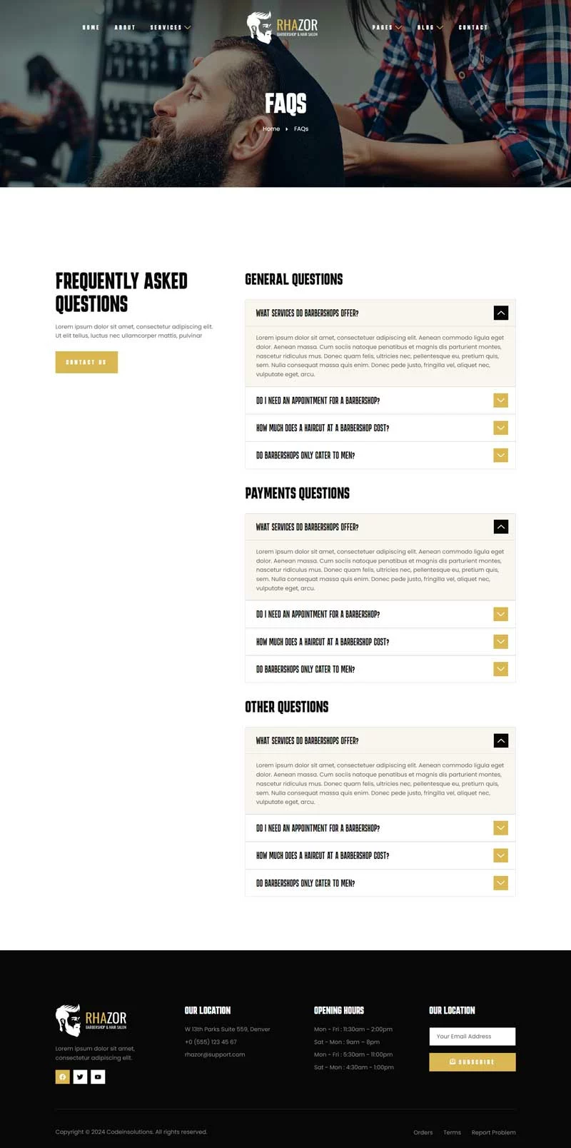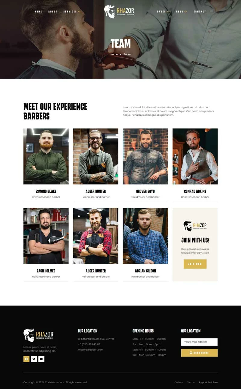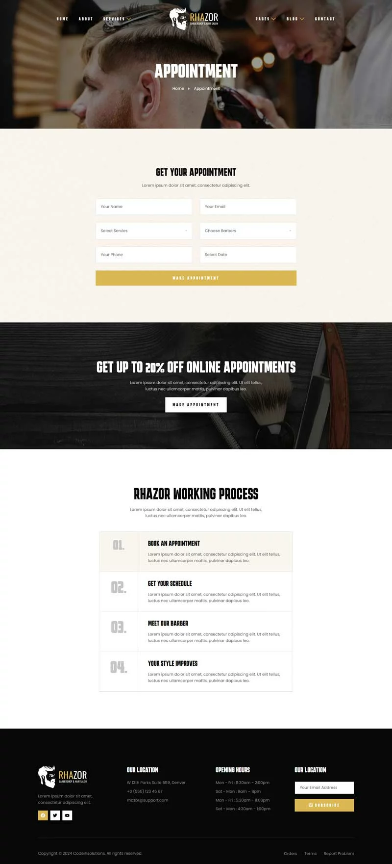 با طراحی مدرن و بروز، Rhazor تجربهای حرفهای و کاربرپسند را هم برای صاحبان سالن و هم مشتریان فراهم میکند. هر قالب به شکلی طراحی شده تا جنبههای مختلف کسبوکار شما، از منوی خدمات شیک گرفته تا نمونه کارهای جذاب، به خوبی برجسته شوند.