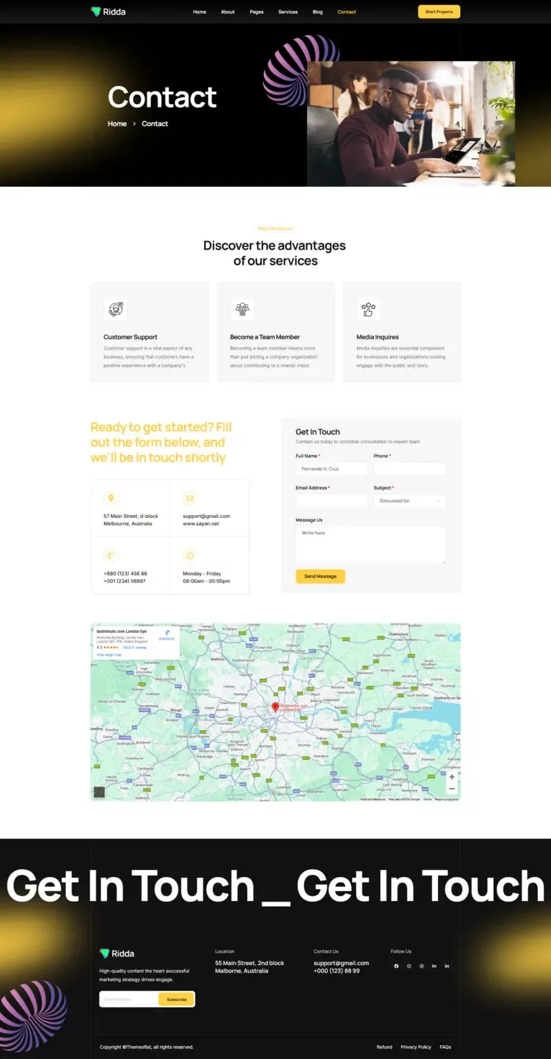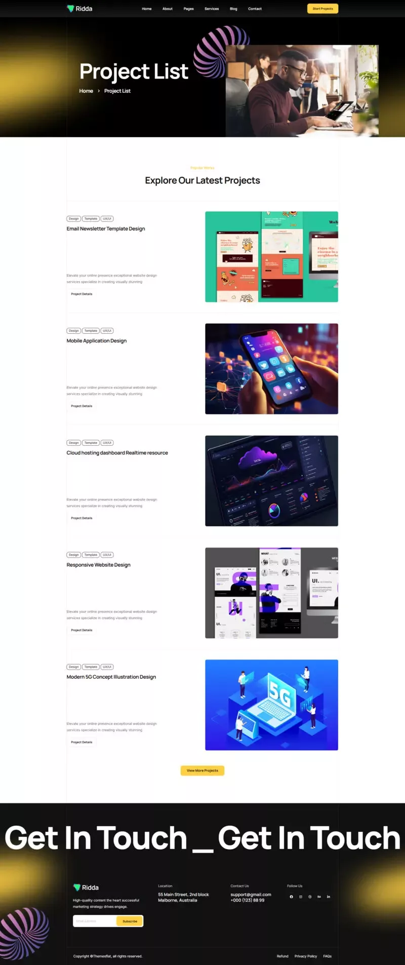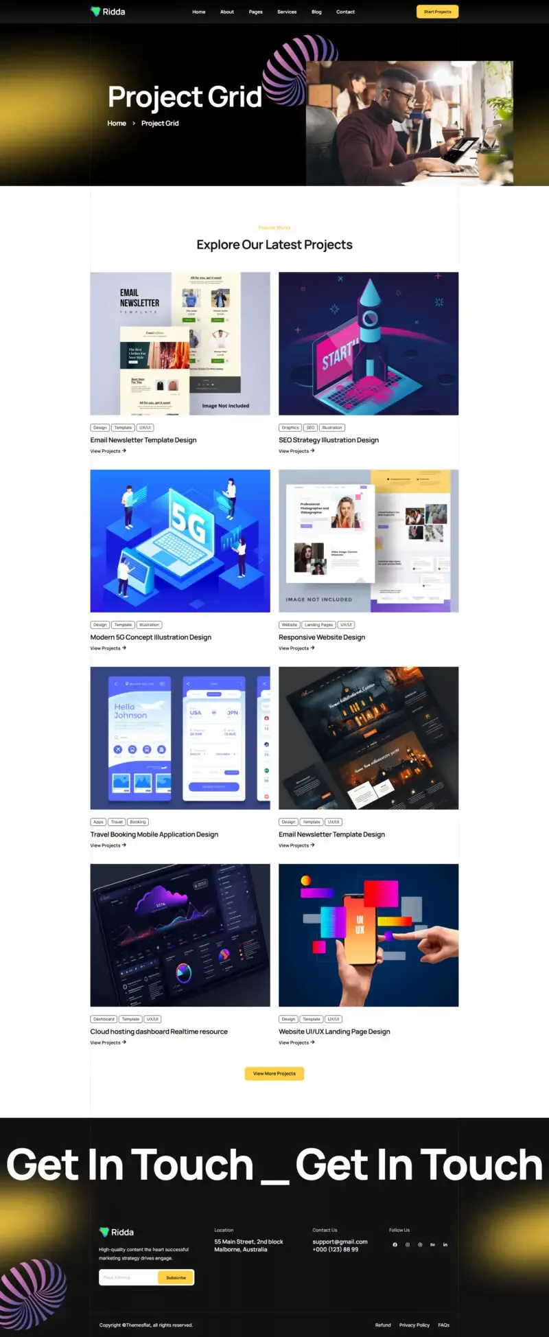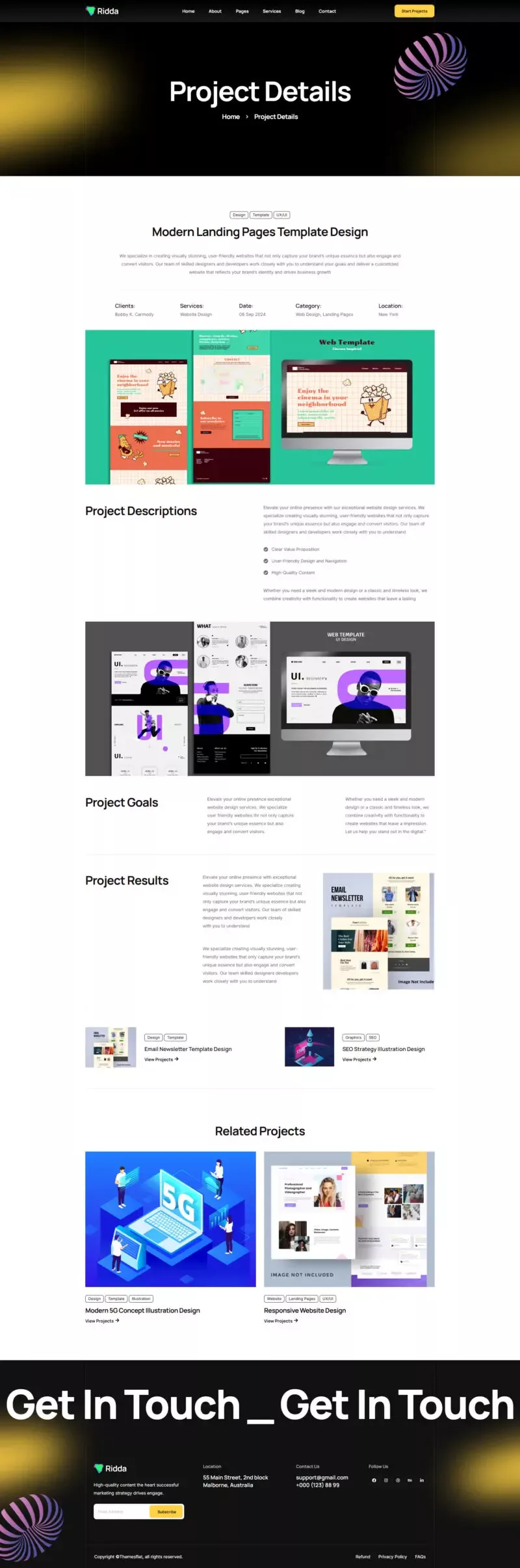 با استفاده از این کیت، دیگر نیازی به دانش کدنویسی یا طراحی حرفهای نخواهید داشت. تمامی المانها از پیش آماده شدهاند تا شما بتوانید تنها با چند کلیک ساده، یک وبسایت مدرن و زیبا بسازید. Ridda با تمرکز بر طراحی کاربرپسند و قابلیتهای پیشرفته، یکی از بهترین گزینهها برای وبسایتهای مرتبط با طراحی و بازاریابی دیجیتال است.