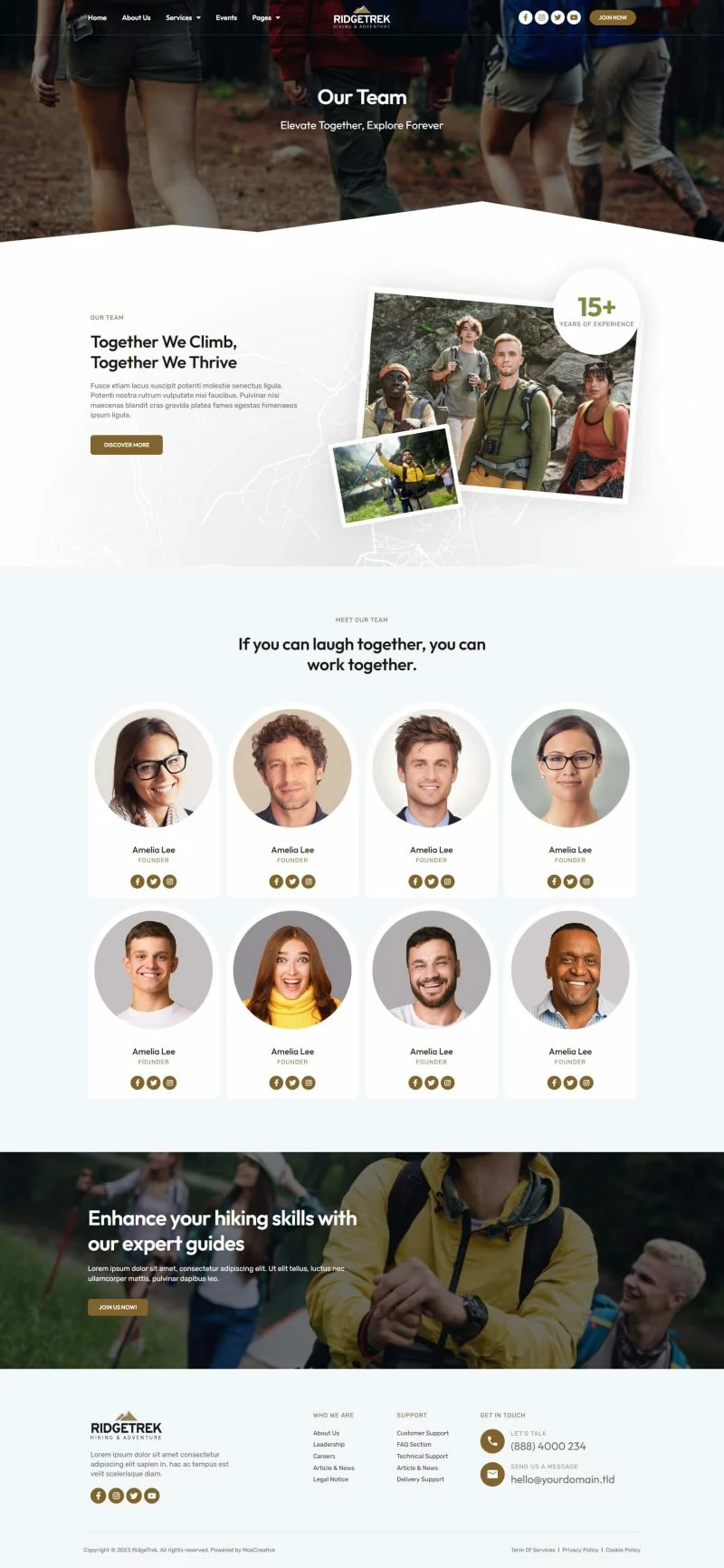صفحه اصلی، درباره ما، تماس با ما، سوالات متداول، عضویت، رویدادهای ما، تیم ما، آرشیو وبلاگ، صفحه خطای 404، پست تکی، خدمات، مقصد کوهنوردی، سبک جهانی، هدر، فوتر