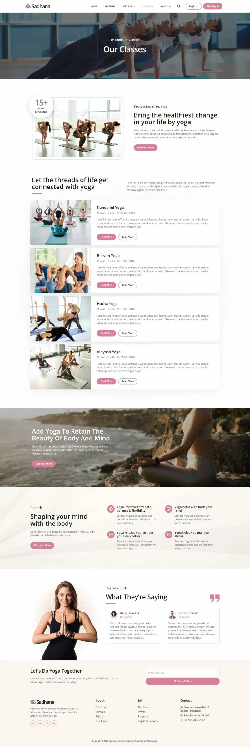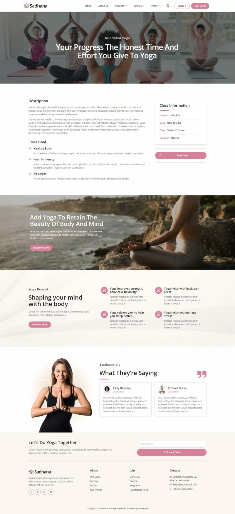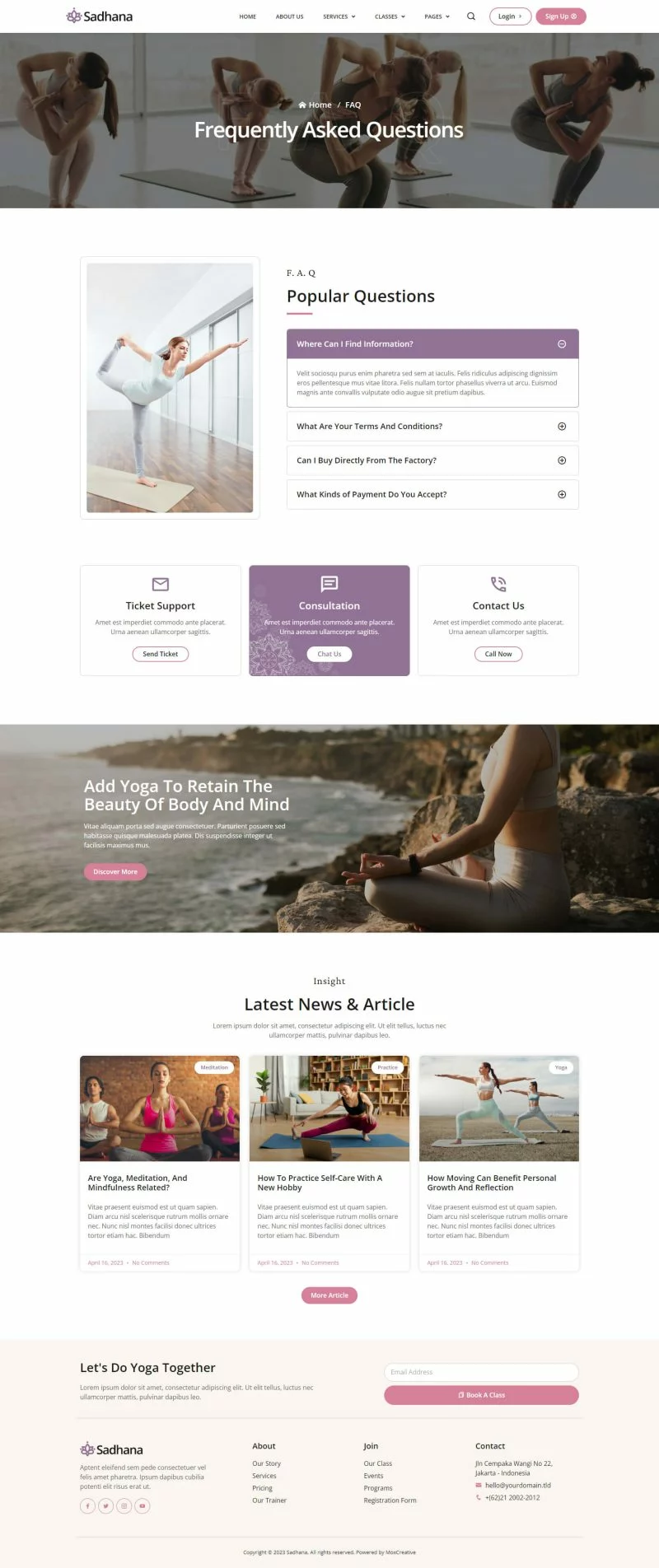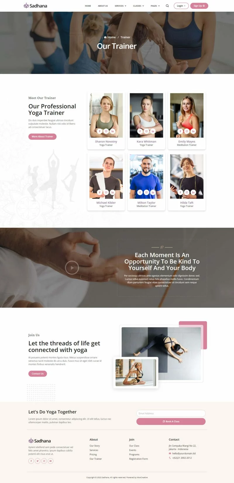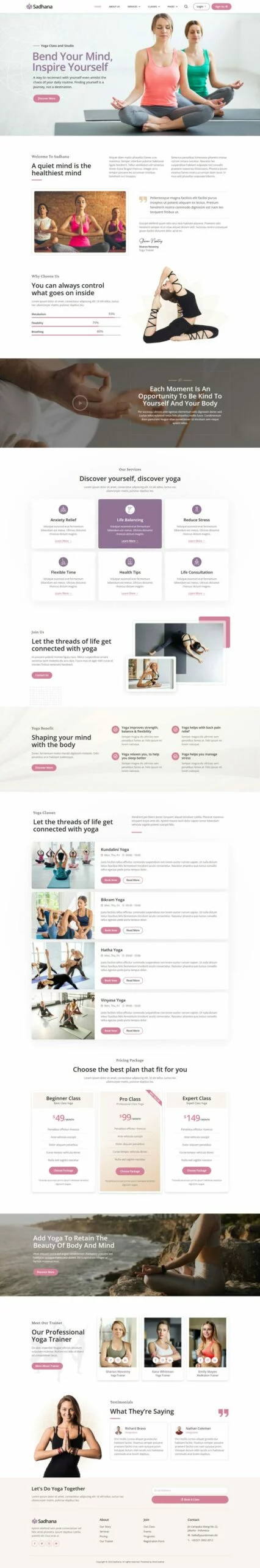 با استفاده از کیت قالب المنتور یوگا Sadhana، میتوانید به سرعت و بدون نیاز به کدنویسی یک وبسایت حرفهای و واکنشگرا برای مربی و استودیوی یوگا خود ایجاد کنید. این کیت با طراحی مدرن و زیبا، تمامی ابزارهای لازم برای نمایش کلاسها، مربیان، خدمات و تماس با ما را در اختیار شما قرار میدهد. Sadhana انتخابی عالی برای ایجاد یک حضور آنلاین برجسته و حرفهای در زمینه یوگا است.