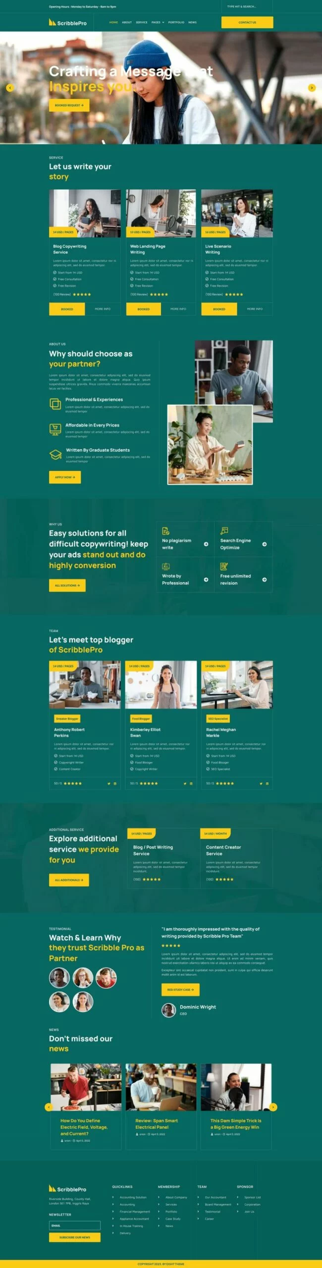 توضیحات بیشتر درباره کیت قالب المنتور خدمات نوشتن محتوا ScribblePro