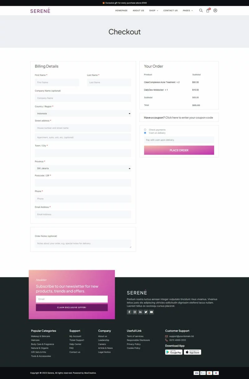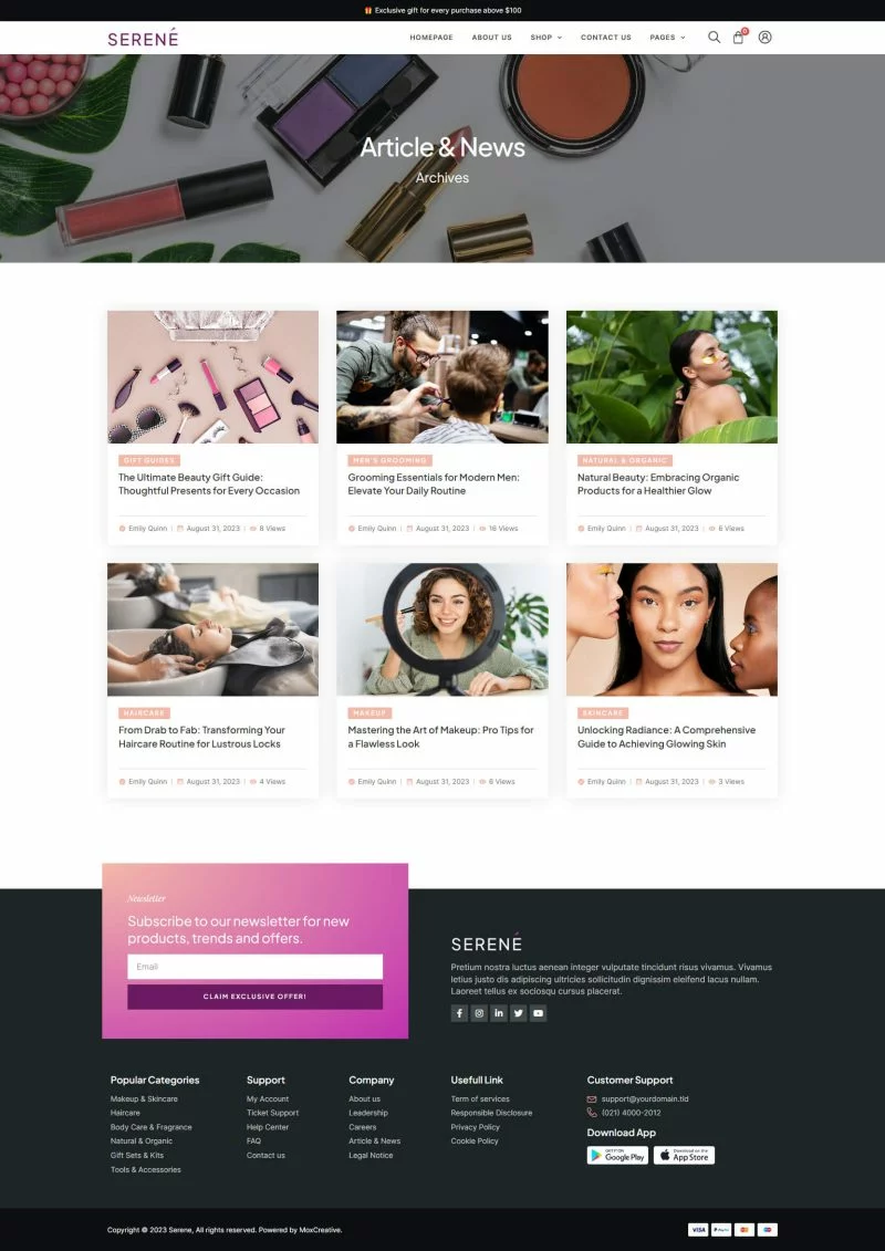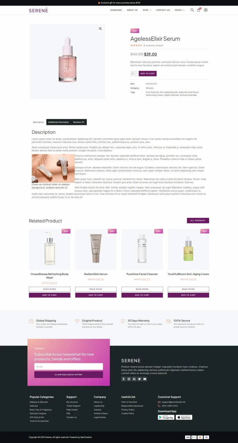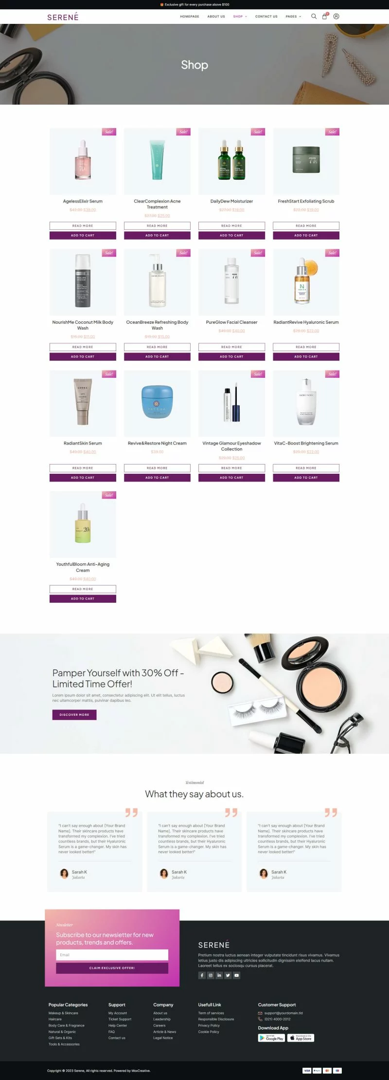 توضیحات بیشتر درباره کیت قالب المنتور فروشگاه زیبایی و مراقبت از پوست Serene