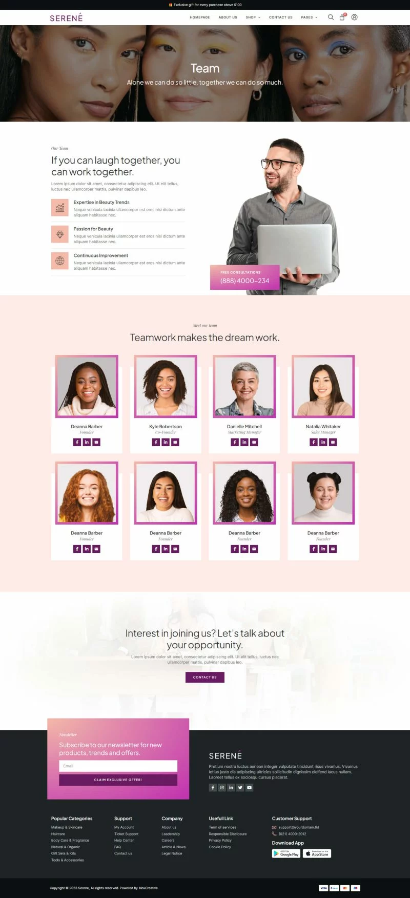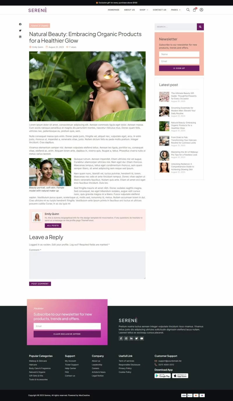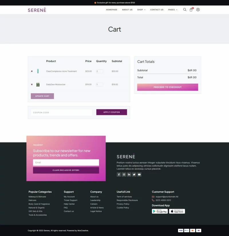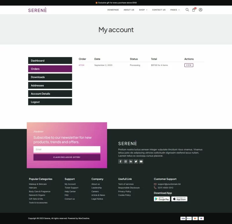 توضیحات بیشتر درباره کیت قالب المنتور فروشگاه زیبایی و مراقبت از پوست Serene