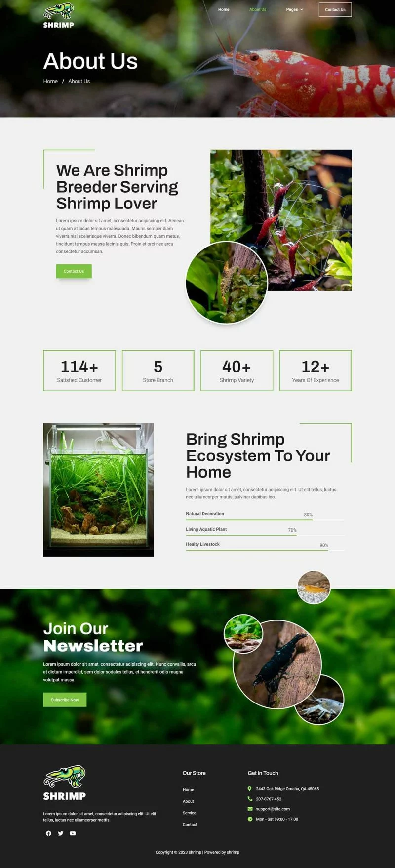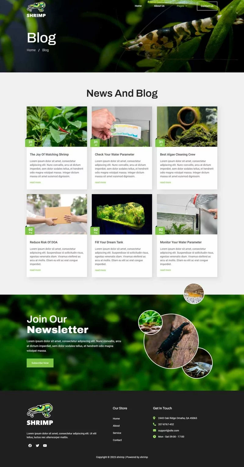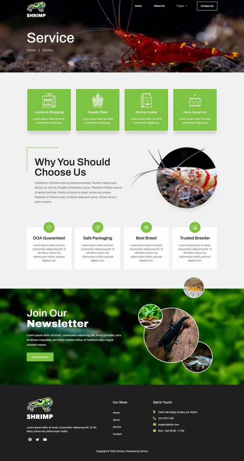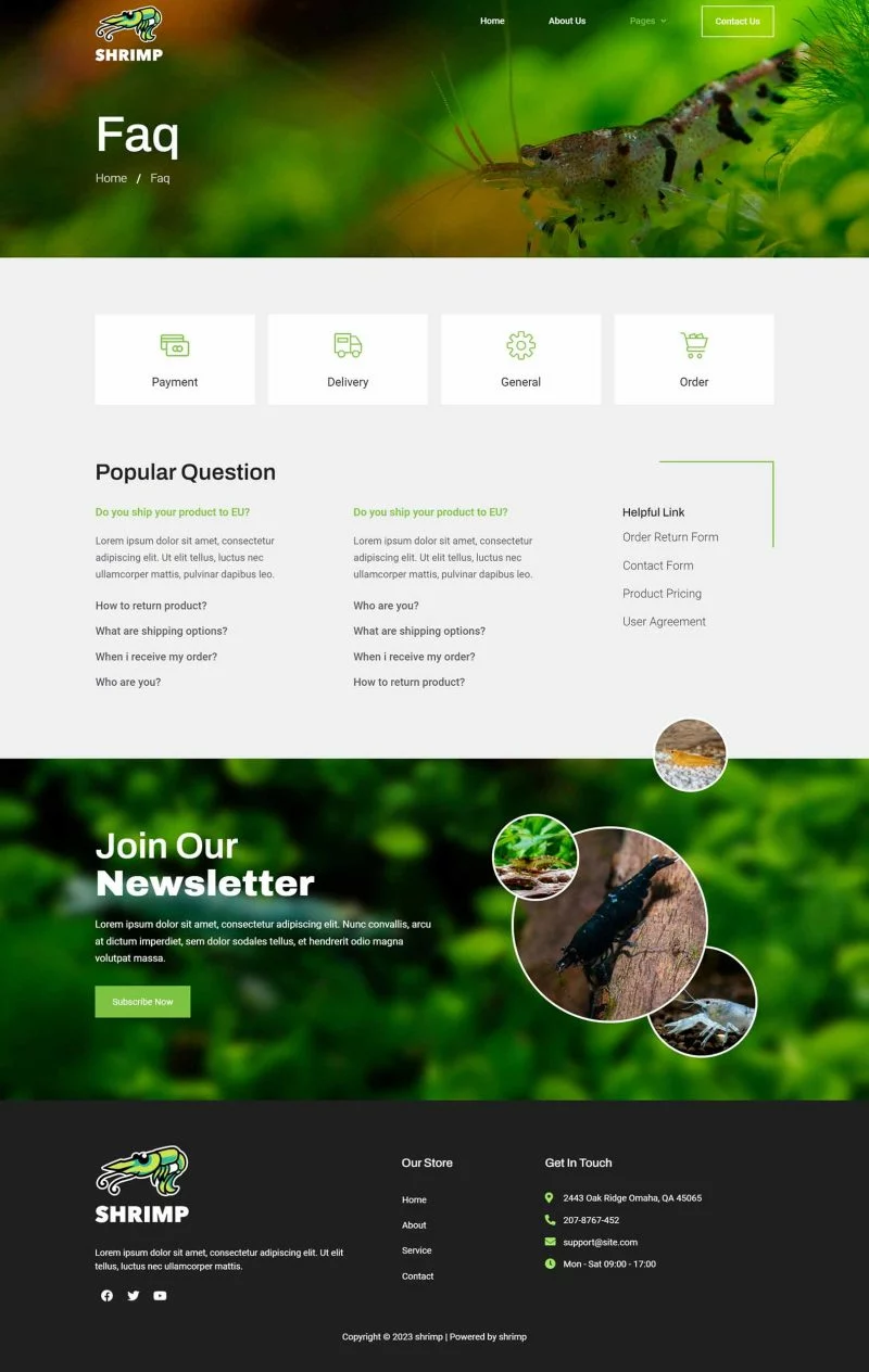 کیت قالب المنتور آکواریوم و فروشگاه سرگرمی Shrimp برای ایجاد سریع و آسان وبسایتهای تجاری با استفاده از افزونه صفحهساز المنتور برای وردپرس طراحی شده است. این یک تم وردپرس نیست. کیتهای قالب شامل محتوای صفحه برای صفحهساز المنتور هستند. این کیت برای استفاده با تم رایگان Hello Elementor بهینه شده است، اما ممکن است با اکثر تمهایی که از المنتور پشتیبانی میکنند استفاده شود.