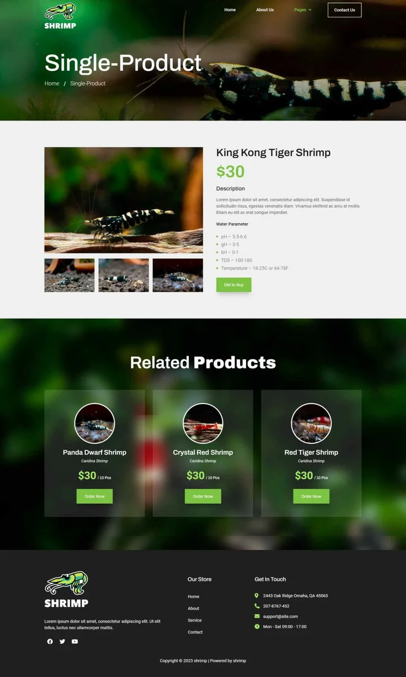 توضیحات بیشتر درباره کیت قالب المنتور آکواریوم و فروشگاه سرگرمی Shrimp