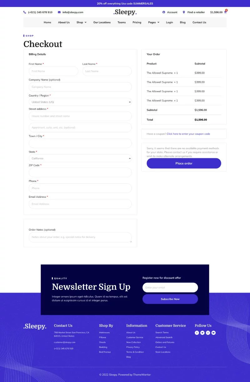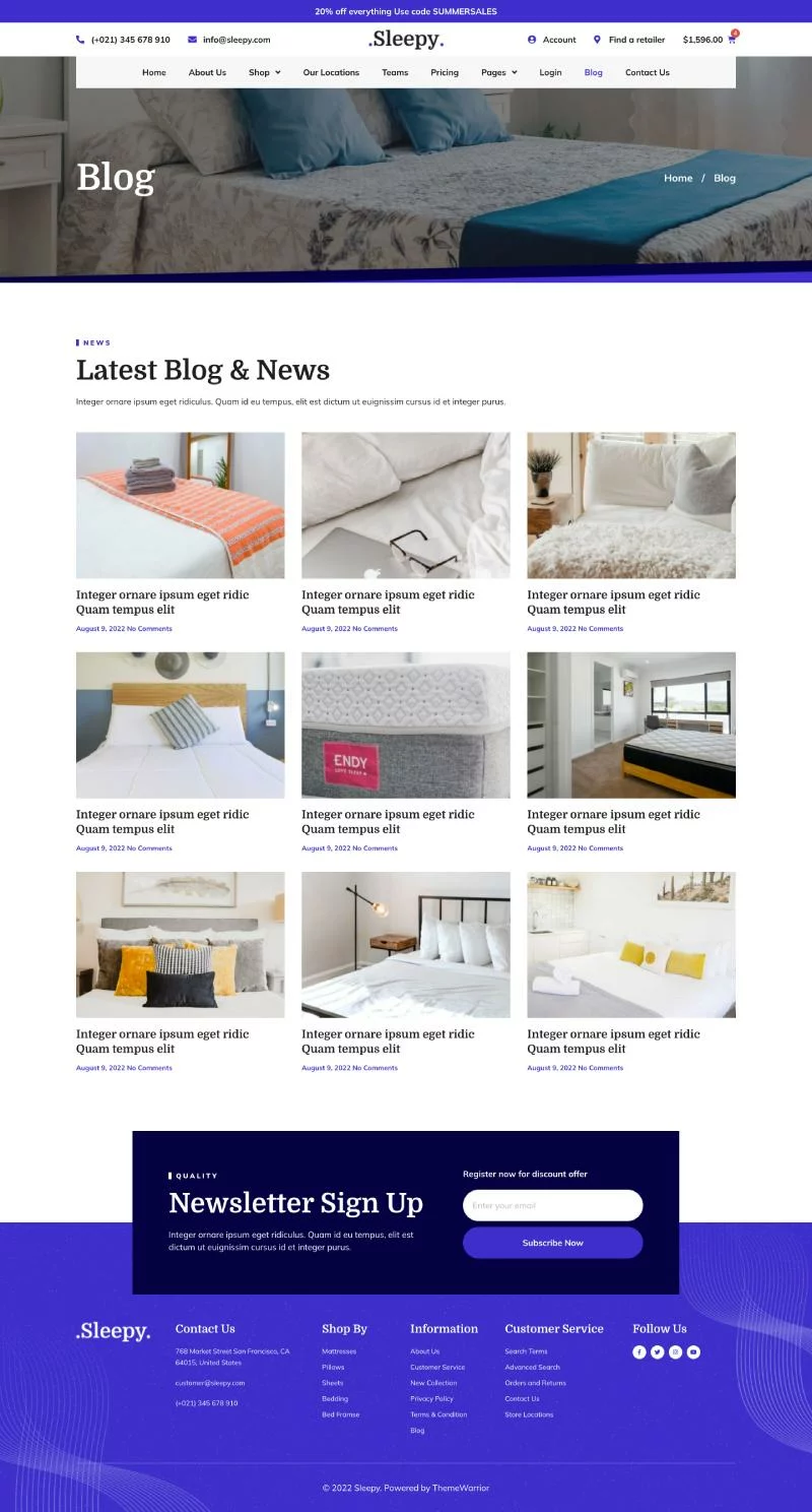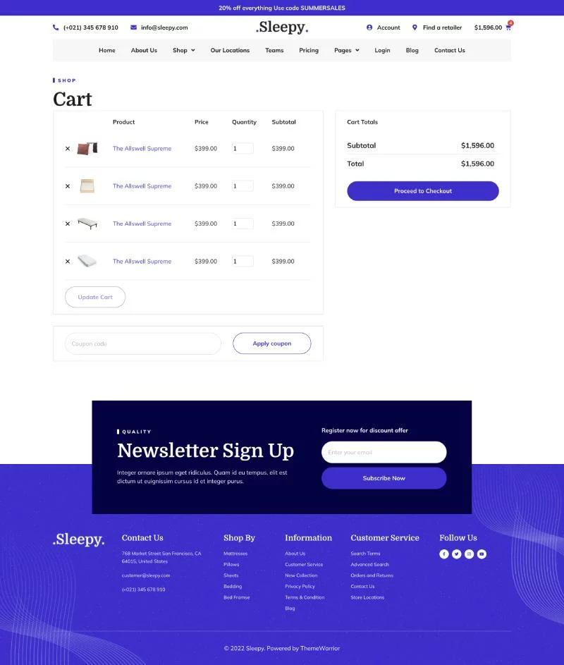 تمام صفحات و بخشهای کیت قالب المنتور فروشگاه کالای خواب Sleepy به صورت حرفهای طراحی و ساخته شدهاند.