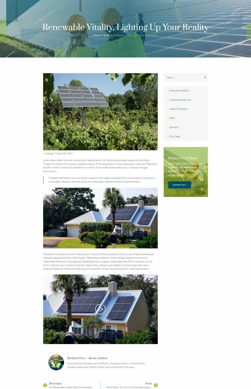 کیت قالب المنتور انرژی خورشیدی Solargy یک کیت قالب المنتور برای ایجاد وبسایتهای مرتبط با انرژی خورشیدی و انرژیهای جایگزین است.