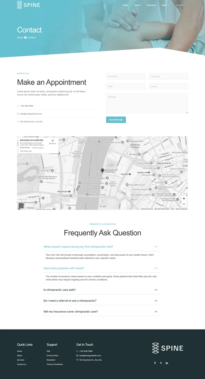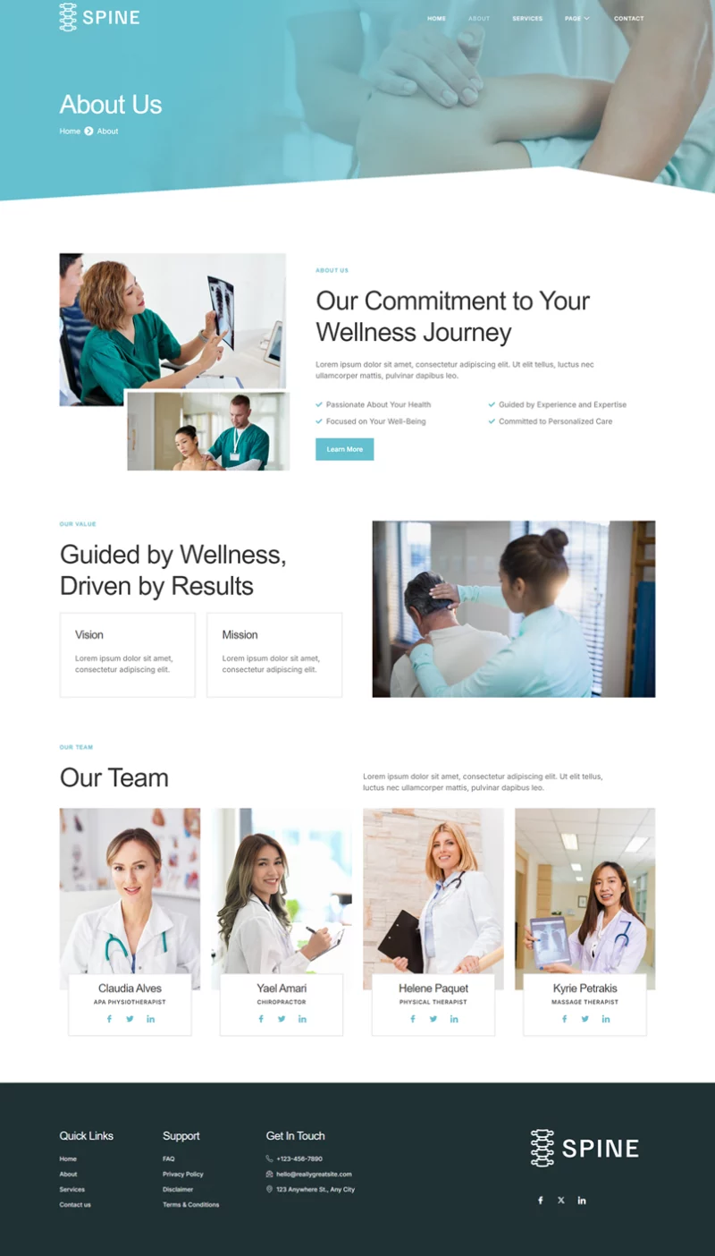 Spine بهگونهای طراحی شده که طراحی مدرن و تمیزی داشته باشد، تا به کاربران تجربهای منحصر به فرد و آرامشبخش ارائه کند. این طراحی به متخصصین حوزه سلامت کمک میکند تا بهراحتی بتوانند خدمات خود را معرفی کنند و اعتماد مخاطبین خود را جلب کنند.