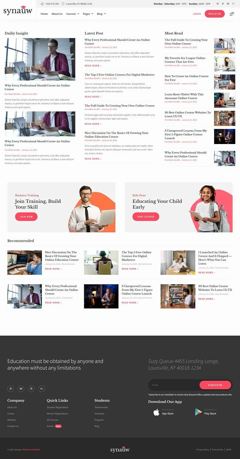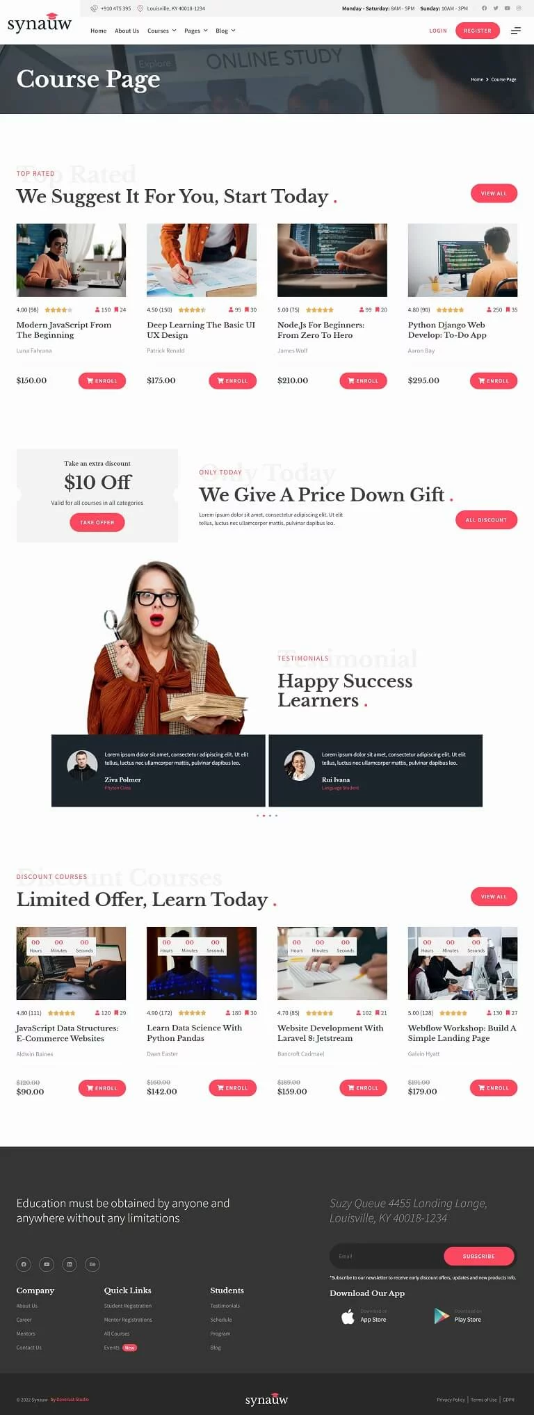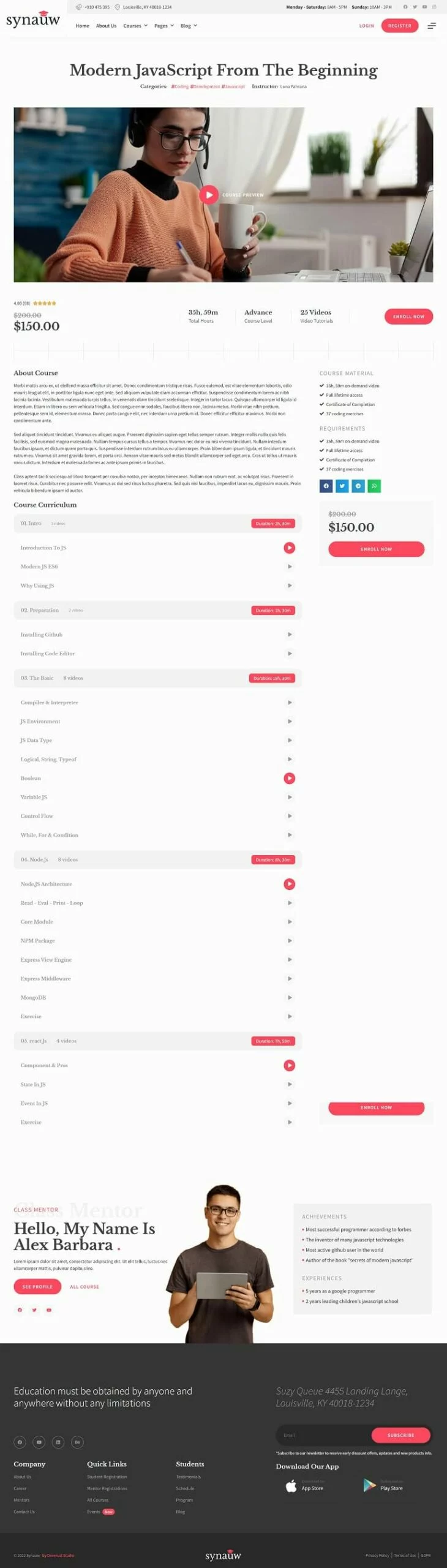 کیت قالب المنتور آموزش آنلاین Synauw به شما امکان میدهد به سرعت و به راحتی یک وبسایت برای کسبوکار خود با استفاده از افزونه صفحهساز المنتور برای وردپرس ایجاد کنید.