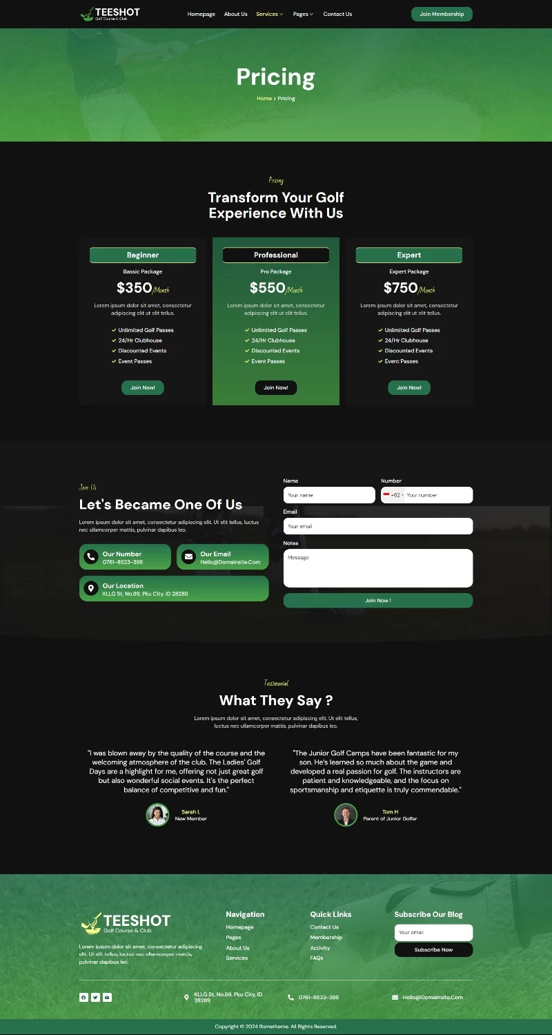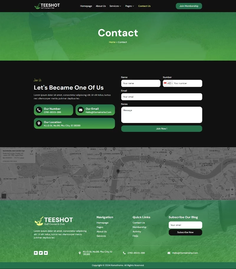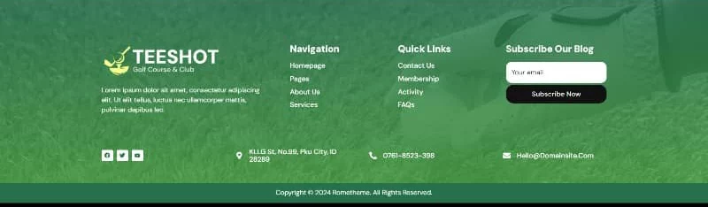 کیت قالب المنتور باشگاه گلف Teeshot برای استفاده با قالب رایگان “Hello Elementor” بهینه شده است.