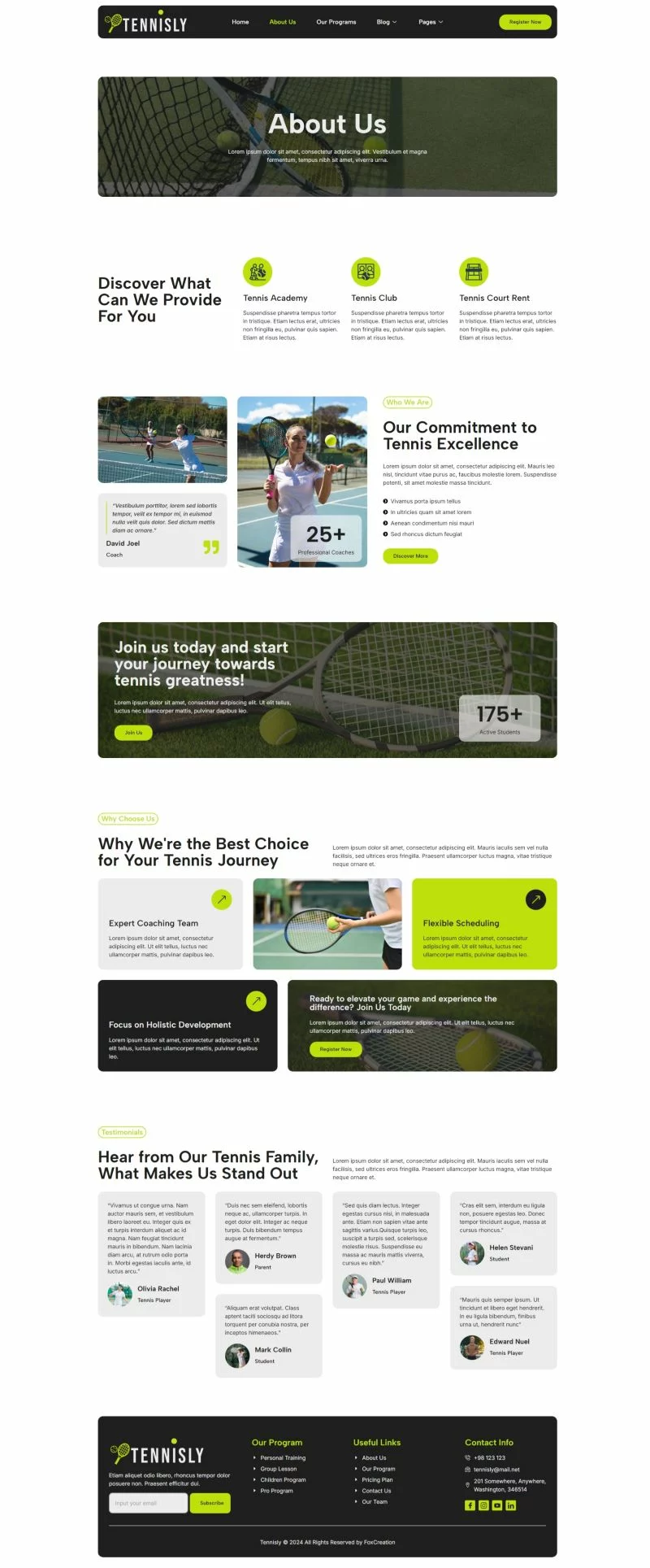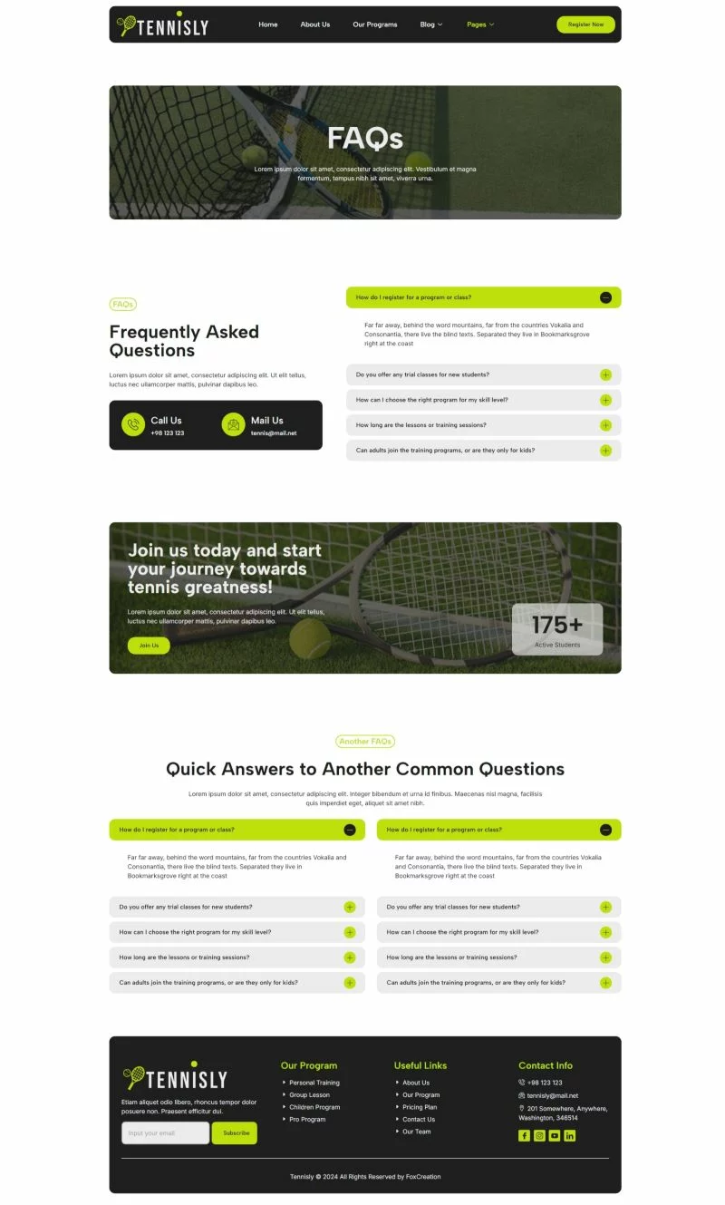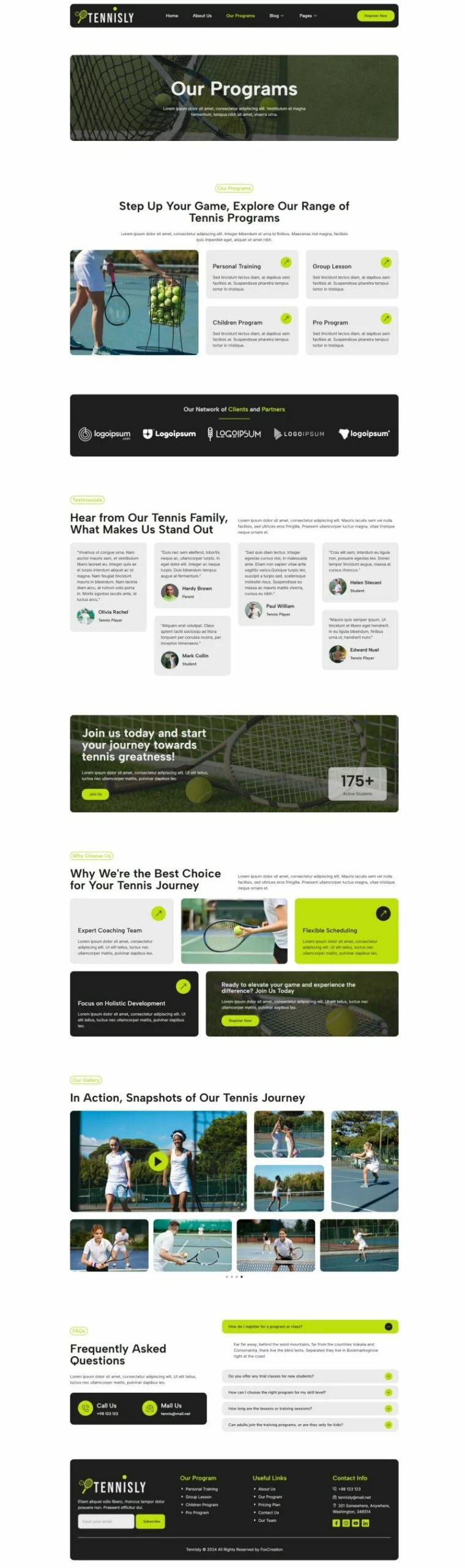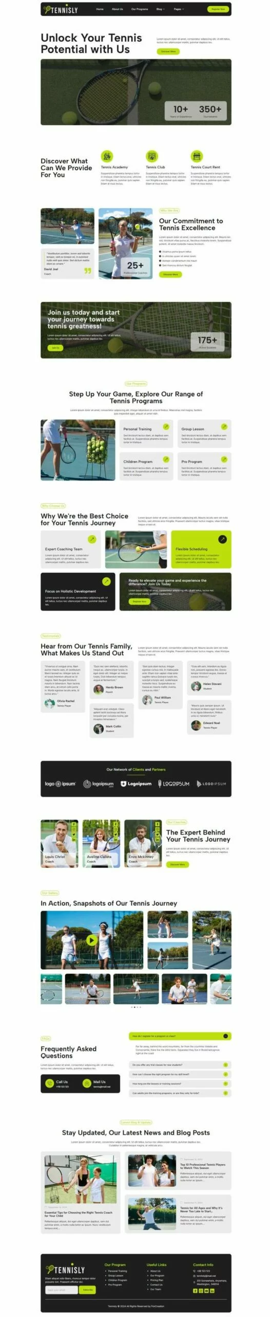 این کیت شامل صفحات متنوع و مورد نیاز برای یک سایت آموزشی و باشگاهی تنیس است که به شما امکان میدهد تمامی اطلاعات مهم و خدمات خود را به بهترین شکل ارائه دهید. برخی از این صفحات عبارتند از: