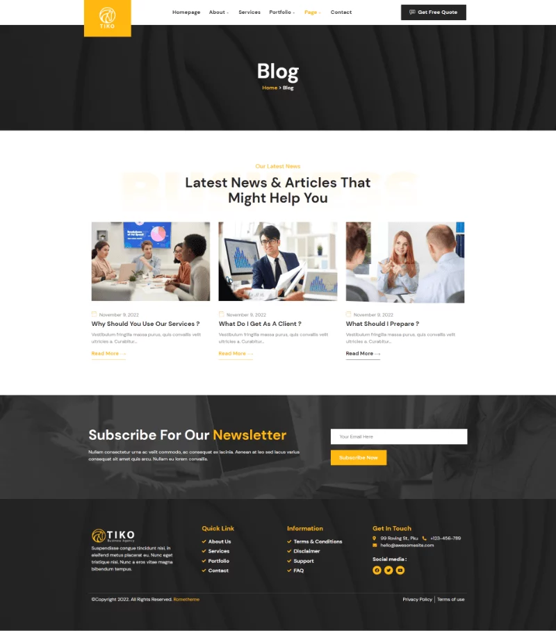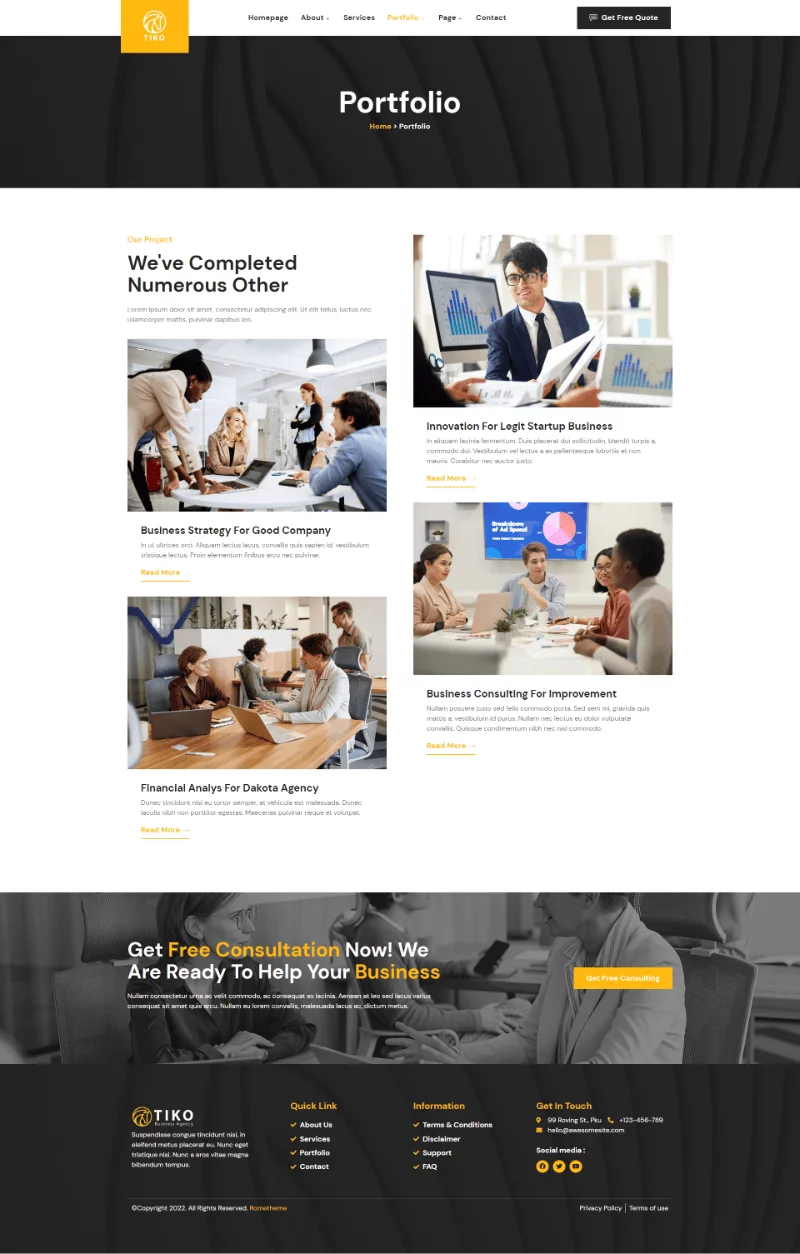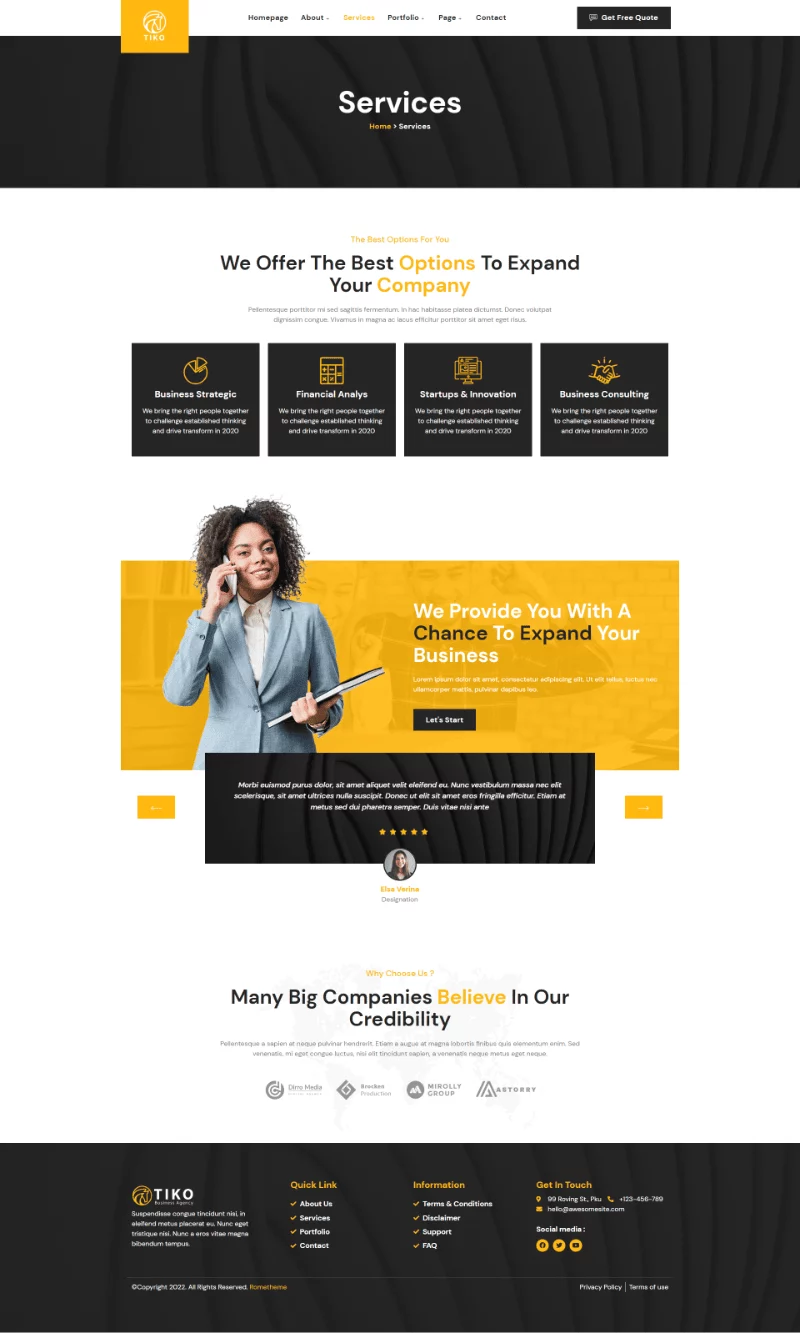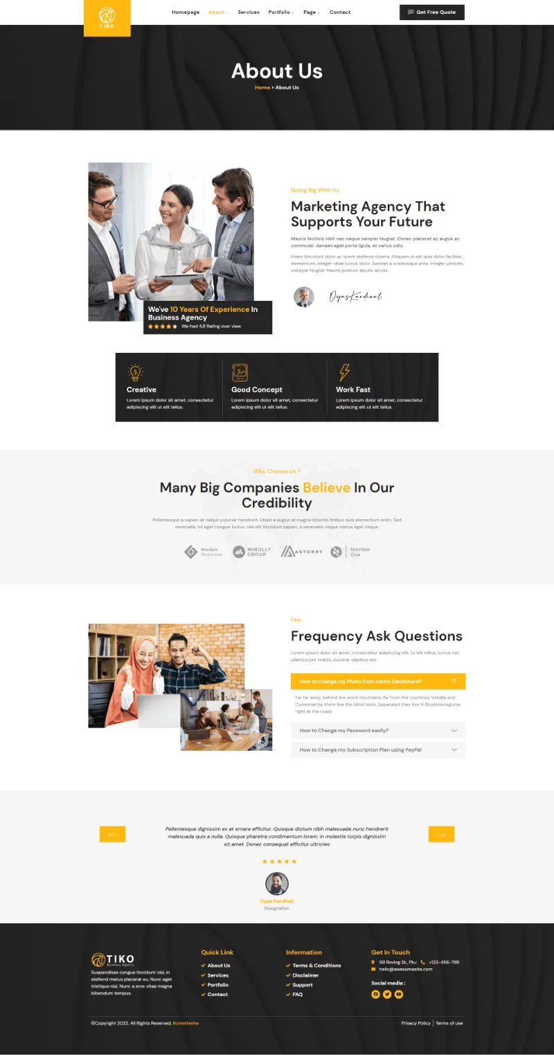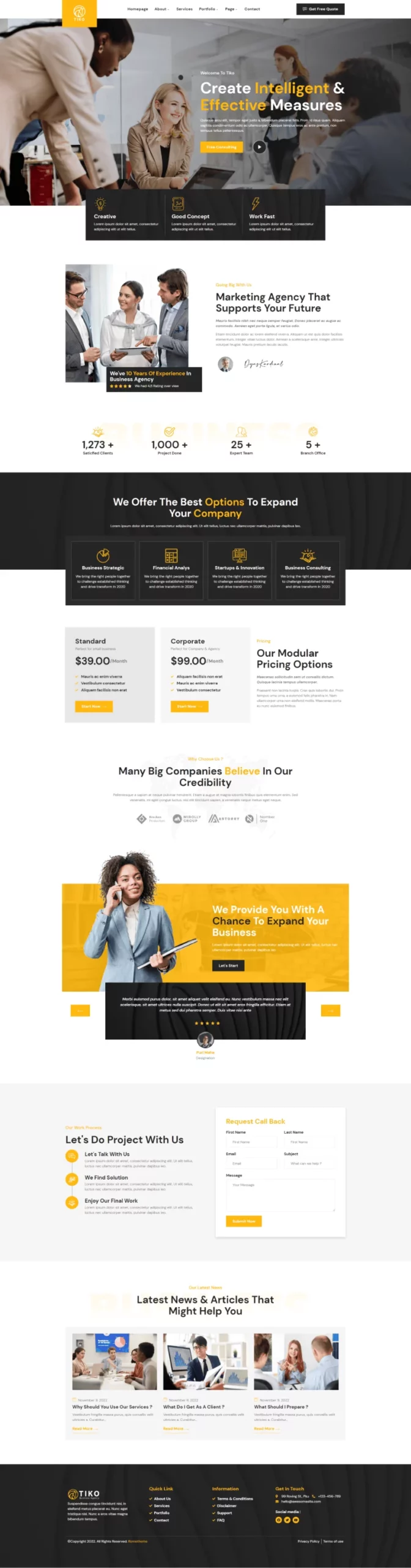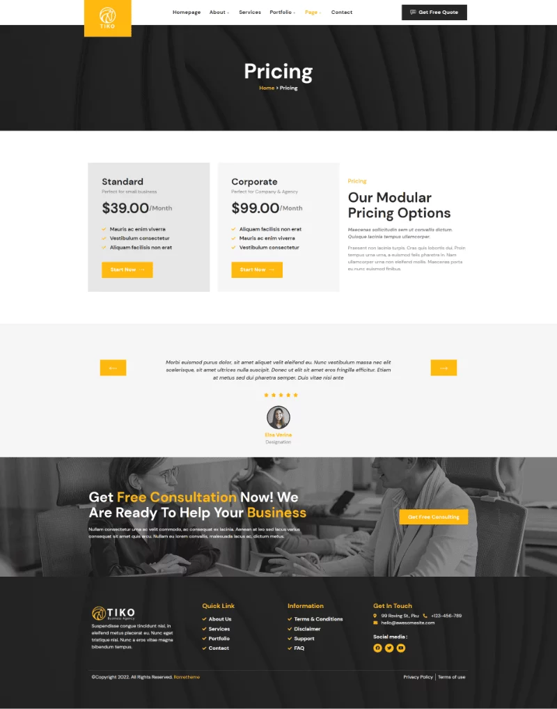 کیت قالب المنتور آژانس کسب و کار Tiko با طراحیهای مدرن و حرفهای به شما این امکان را میدهد تا یک وبسایت شیک و حرفهای برای کسب و کار خود ایجاد کنید. این طراحیها تمام نیازهای شما برای نمایش خدمات و پروژههای مختلف را پوشش میدهند.