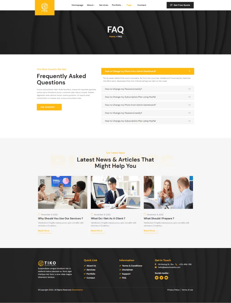 توضیحات بیشتر درباره کیت قالب المنتور آژانس کسب و کار Tiko
