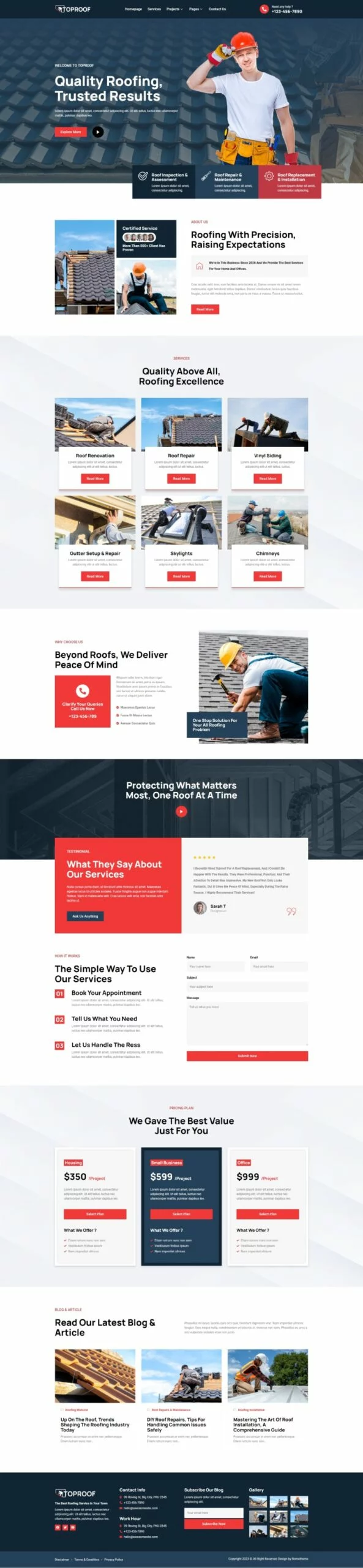 کیت قالب المنتور خدمات سقف Toproof طراحی شده برای خدمات سقفپوشی مانند تعمیر سقف، خدمات سقف، پوشش سقف، بازرسی سقف، نوسازی سقف و غیره است. این کیت دارای طراحی مدرن و منحصر به فرد با یک چیدمان 100٪ کاملاً واکنشگرا، نصب آسان و بسیار آسان برای سفارشیسازی است زیرا با استفاده از المنتور نیازی به یک خط کدنویسی ندارید!