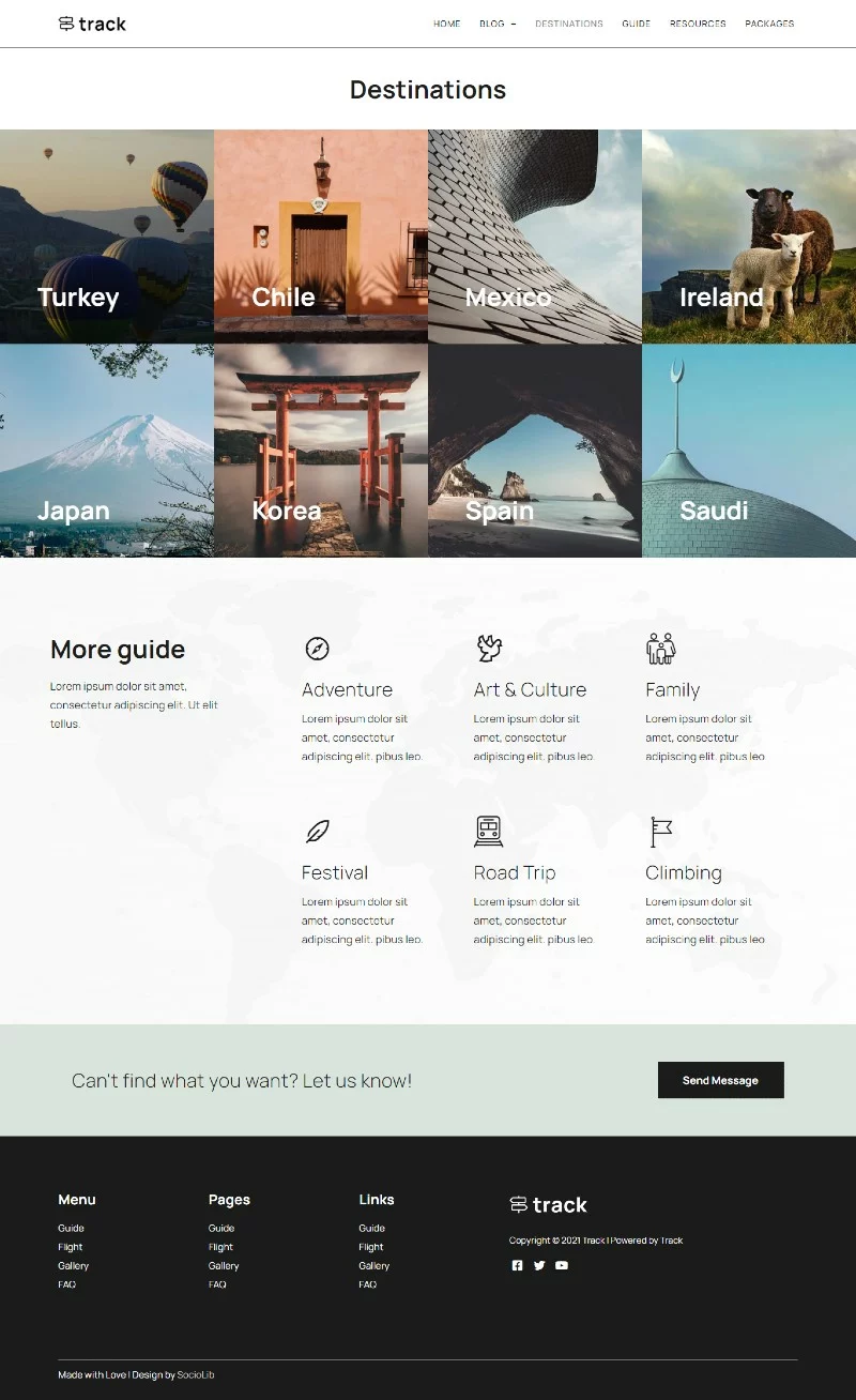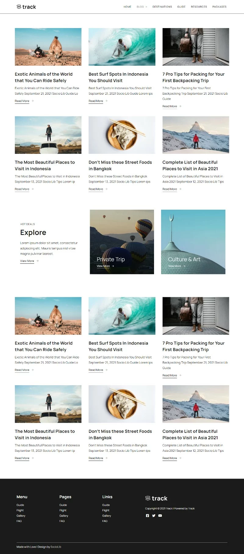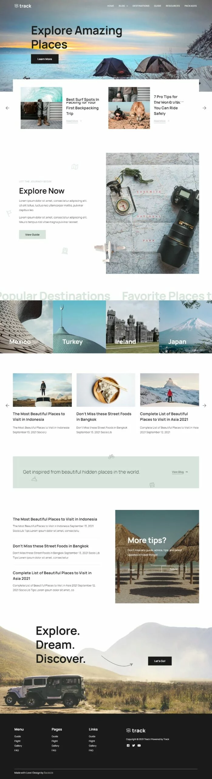 کیت قالب المنتور وبلاگ سفر Track برای ساخت سریع و آسان وبسایتهای وبلاگ راهنمای سفر با استفاده از افزونه صفحهساز المنتور برای وردپرس است. این کیت برای استفاده با قالب رایگان Hello Elementor بهینهسازی شده، اما میتوان آن را با اکثر قالبهایی که از المنتور پشتیبانی میکنند، استفاده کرد.