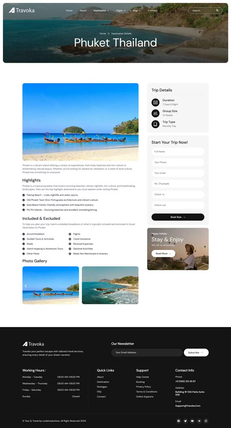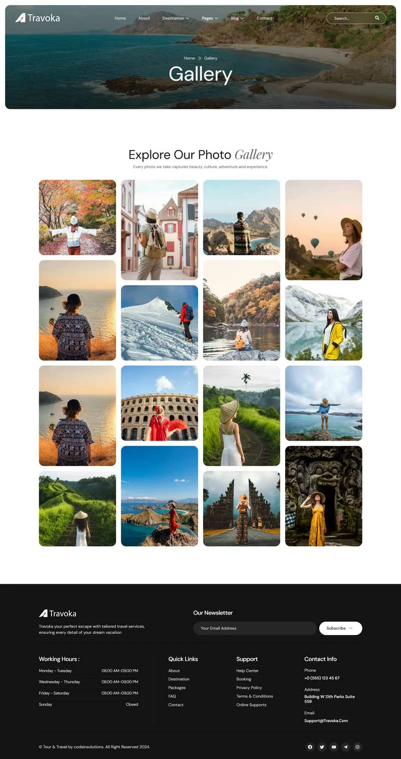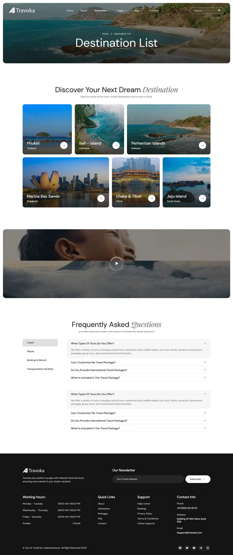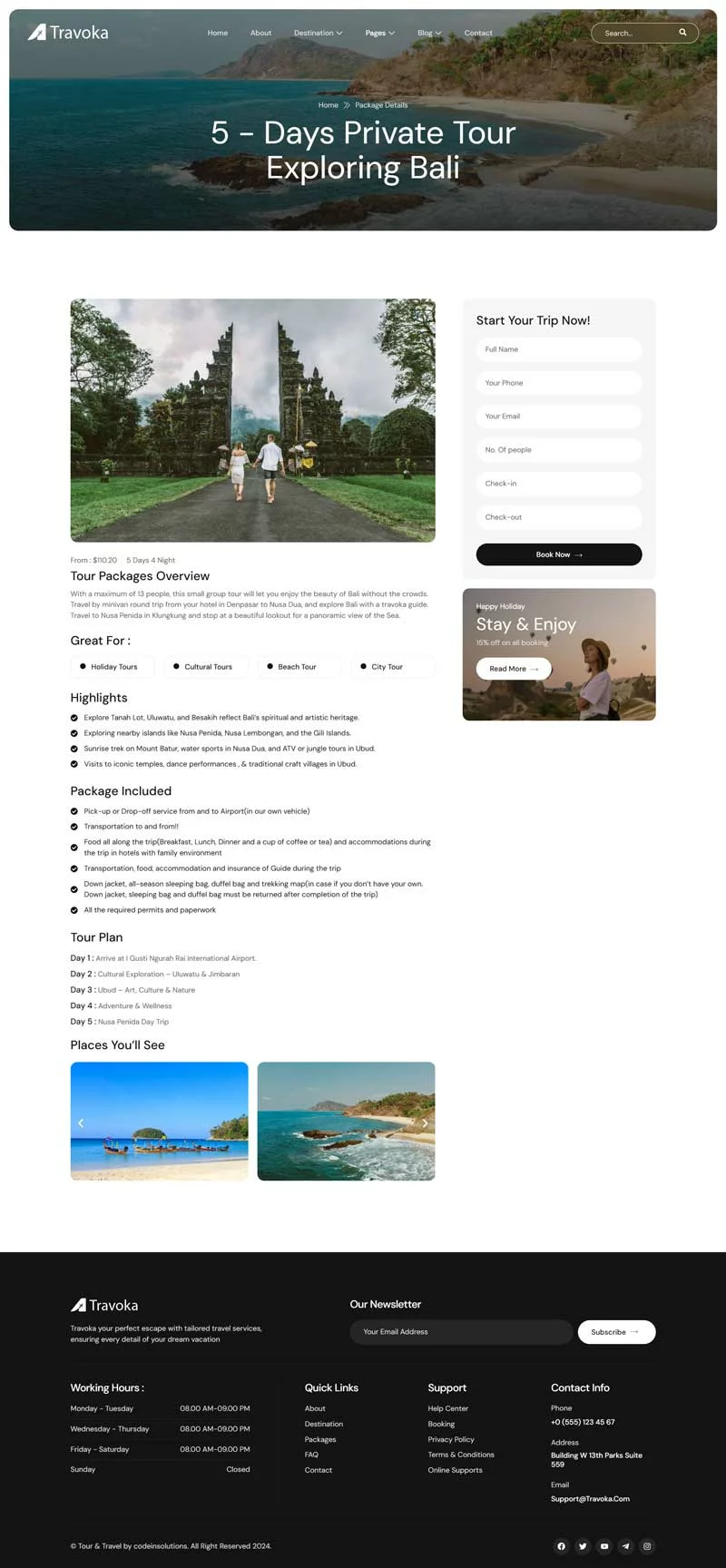 اگر به دنبال یک قالب حرفهای برای نمایش مقاصد و خدمات گردشگری خود هستید، کیت Travoka بهترین انتخاب برای شما است. همین حالا این قالب را امتحان کنید و وبسایتی طراحی کنید که الهامبخش کاربران شما برای شروع سفرهای جدید باشد.