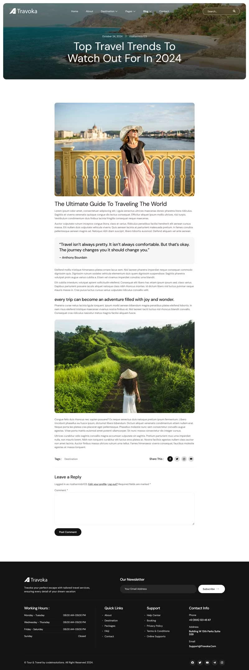 اگر در کنار خدمات خود قصد دارید در زمینه نکات سفر و ماجراجویی نیز تولید محتوا کنید، صفحات وبلاگ این قالب کاملاً برای شما مناسب هستند.