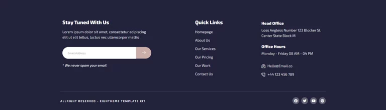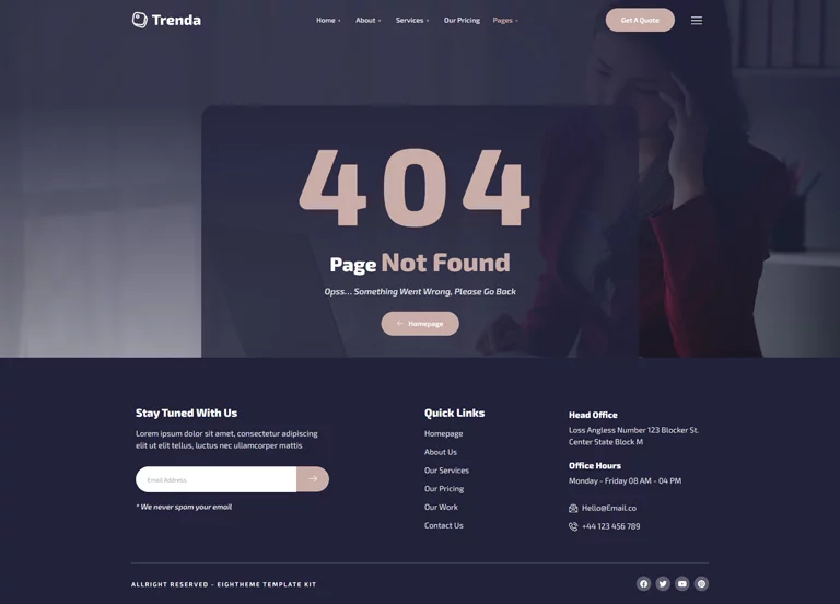 صفحه اصلی 01، صفحه اصلی 02، درباره ما، تیم ما، خدمات ما، خدمات تک، قیمتگذاری ما، کارهای ما، سوالات متداول، تماس با ما، خطای 404، وبلاگ ما، پست تک، کیت استایل جهانی، بلوک – هدر، بلوک – فوتر، بلوک – محتوای خارج از بوم، فرم تماس MetForm، فرم اشتراک MetForm، فرم سوال MetForm