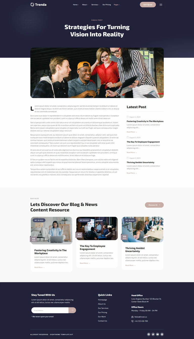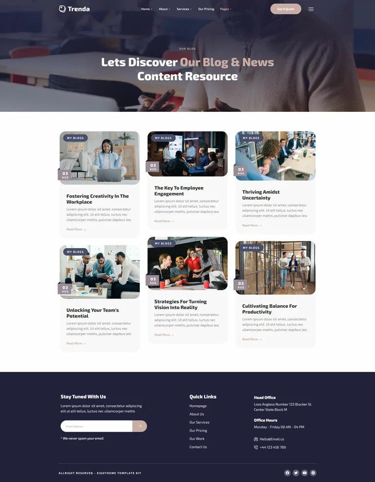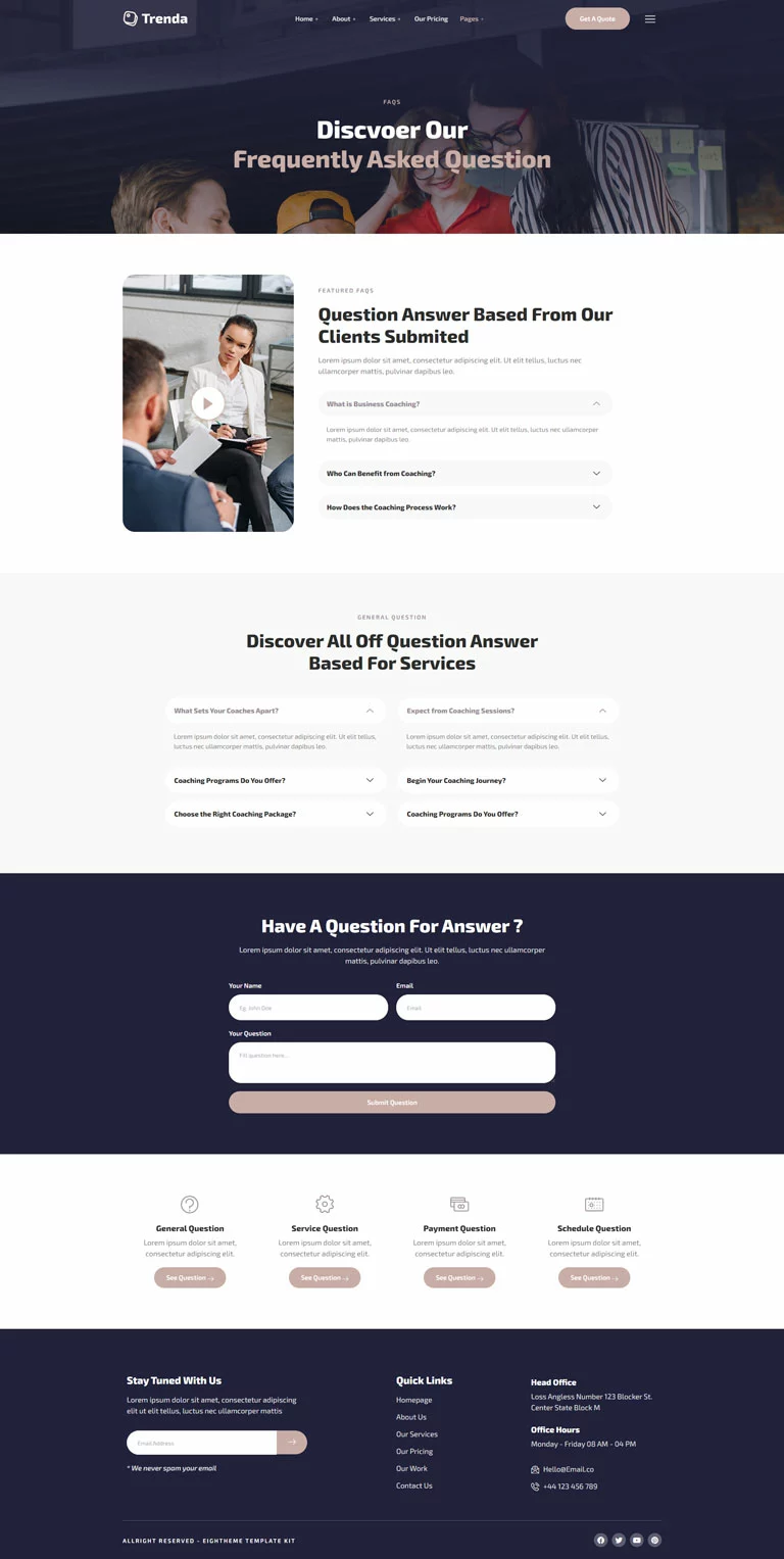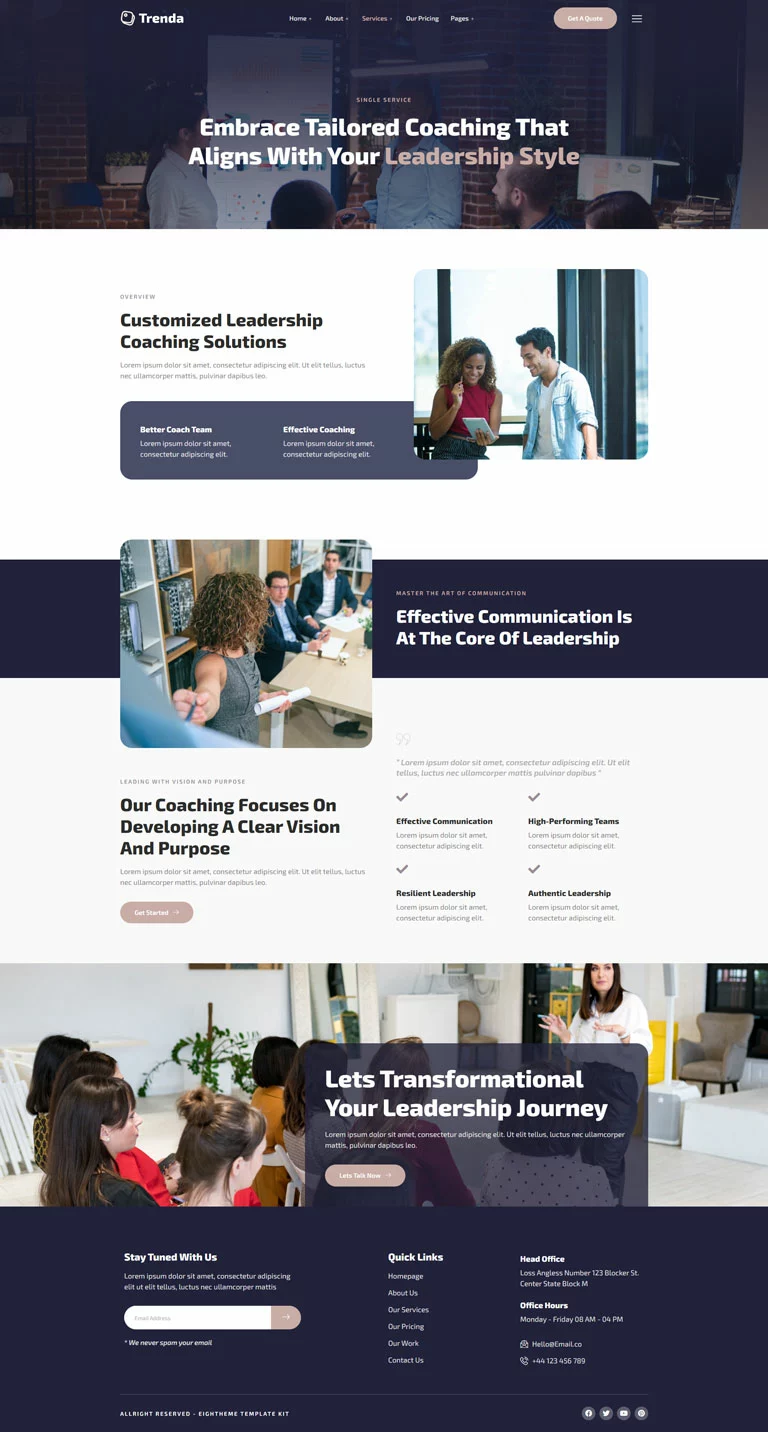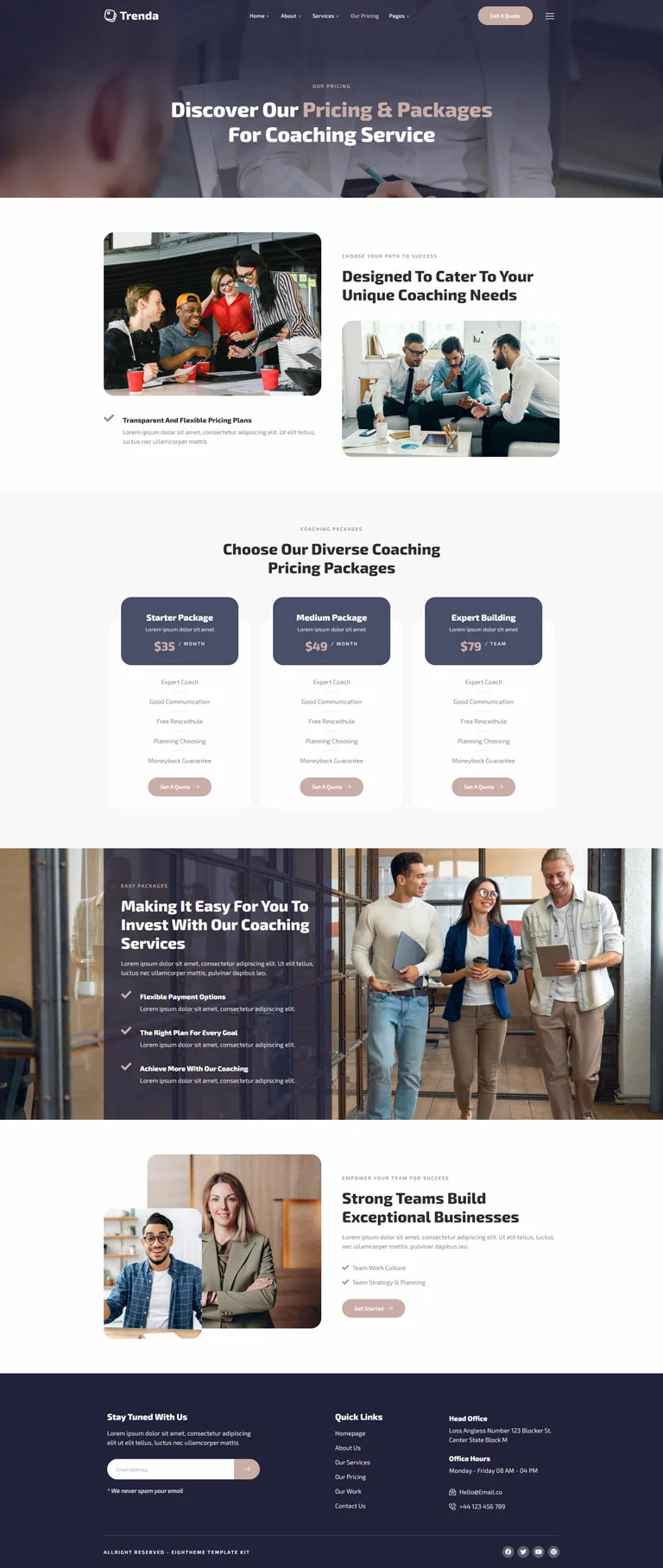 کیت قالب المنتور مربیگری کسب و کار Trenda، تمامی ابزارهای لازم برای ایجاد یک وبسایت حرفهای و جذاب را در اختیار شما قرار میدهد. این کیت با استفاده از افزونه رایگان المنتور و بدون نیاز به کدنویسی، به شما امکان میدهد تا به سرعت و به راحتی یک وبسایت تمیز و زیبا برای کسبوکار مربیگری خود ایجاد کنید.