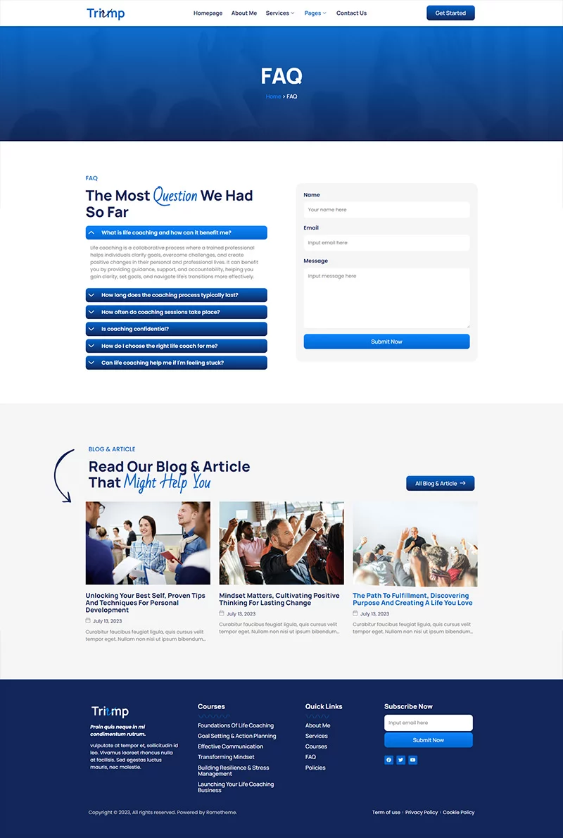 کیت قالب المنتور مشاوره Triump یک ابزار کامل و حرفهای برای ایجاد وبسایتهای مرتبط با مربی زندگی و انگیزهدهندهها است. با طراحی مدرن و منحصربهفرد، این کیت قالب به شما امکان میدهد تا وبسایتی جذاب و کاربرپسند بسازید که به بهترین شکل ممکن خدمات و تخصصهای شما را به نمایش بگذارد. تمامی قالبهای از پیش ساخته شده با دقت طراحی شدهاند و به راحتی قابل سفارشیسازی هستند، بنابراین میتوانید ظاهر وبسایت خود را به دلخواه تغییر دهید. با پشتیبانی کامل از نمای موبایل، وبسایت شما در تمامی دستگاهها به خوبی نمایش داده خواهد شد و تجربه کاربری بهتری برای بازدیدکنندگان فراهم میکند. با افزونههای همراه این کیت، امکانات و قابلیتهای بیشتری برای وبسایت خود اضافه کنید و تجربه کاربری بهتری برای بازدیدکنندگان خود فراهم نمایید.