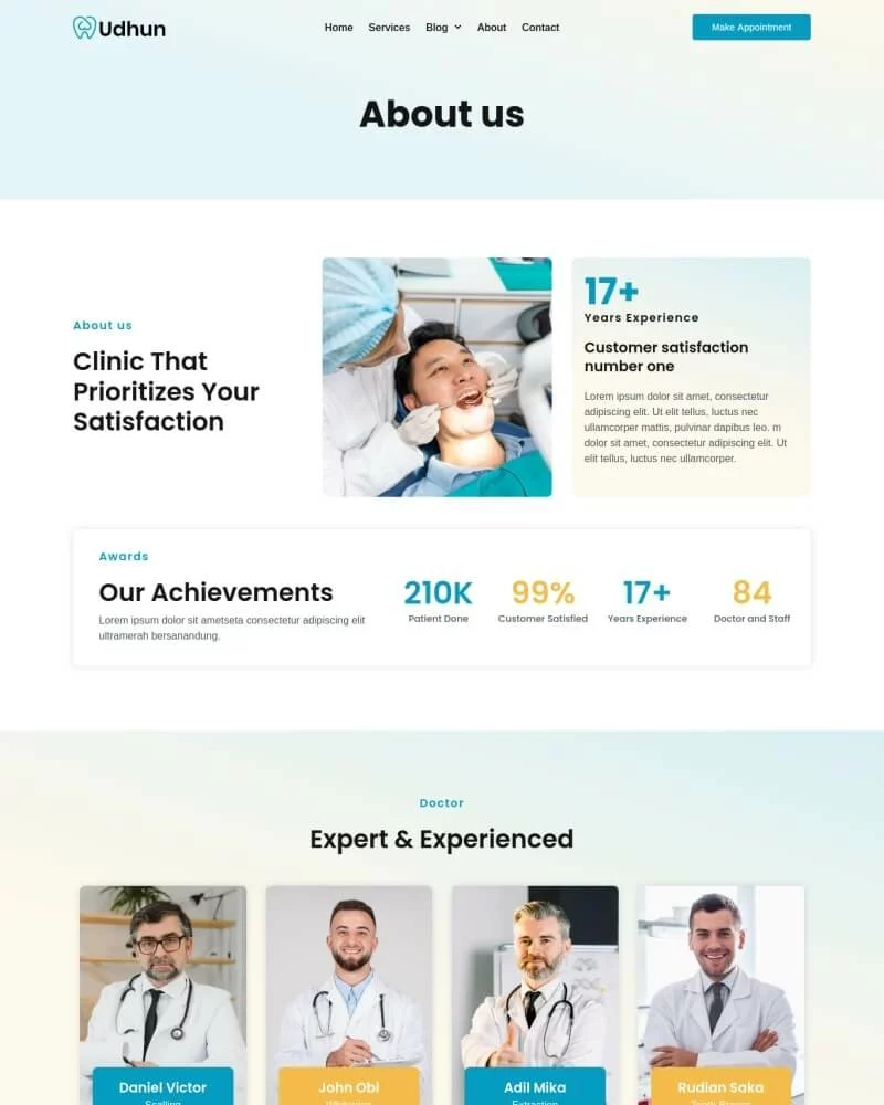کیت قالب المنتور دندانپزشکی Udhun به صورت کامل واکنشگرا برای دسکتاپ، تبلت و موبایل طراحی شده است. این قالب با ترکیب رنگی جذاب و طراحی مدرن و تمیز، مناسب برای کسانی است که میخواهند یک وبسایت برای خدمات دندانپزشکی شخصی یا شرکتی ایجاد کنند. این کیت بسیار آسان برای سفارشیسازی است و نیازی به دانش کدنویسی ندارد.