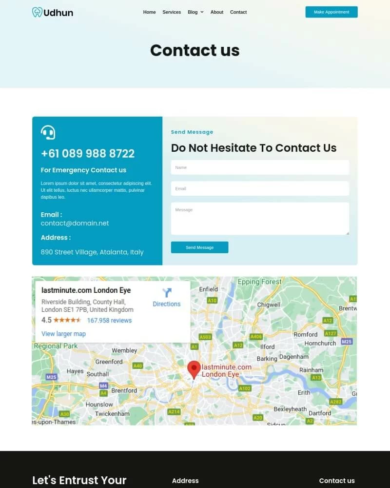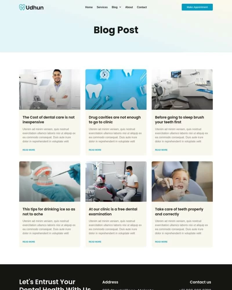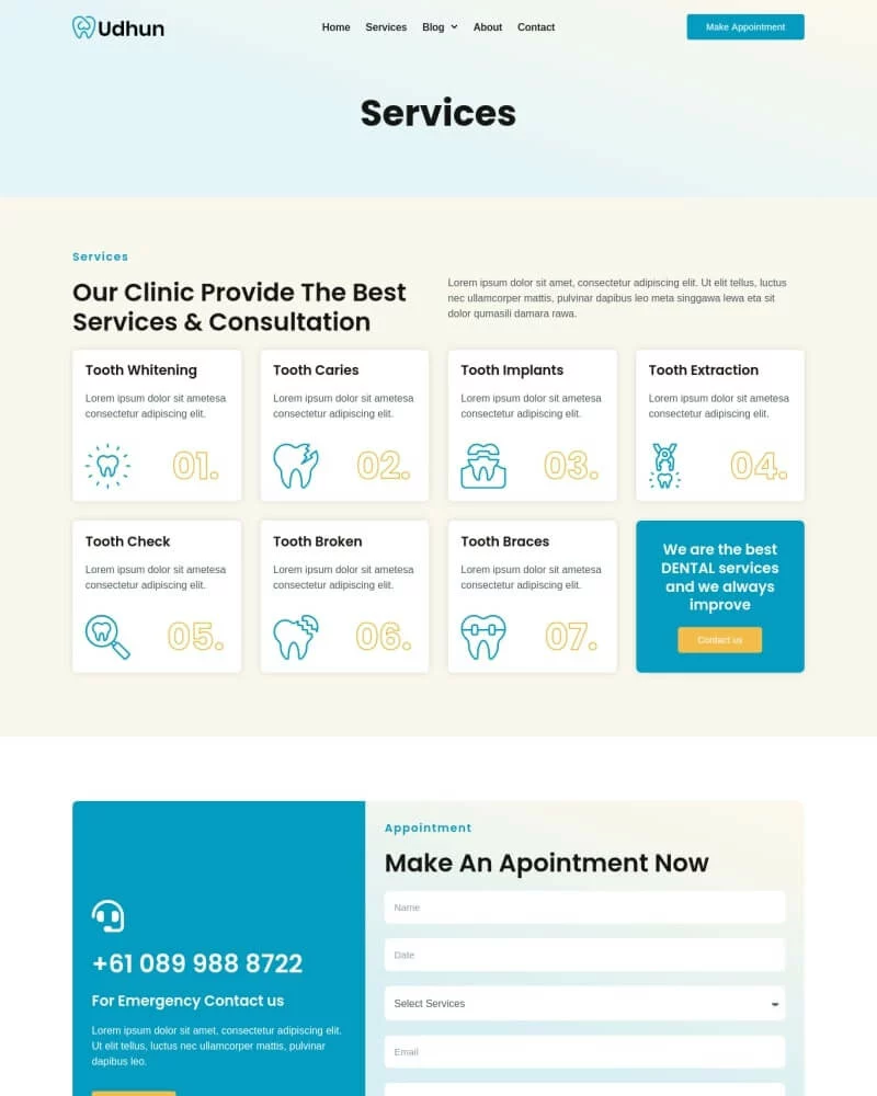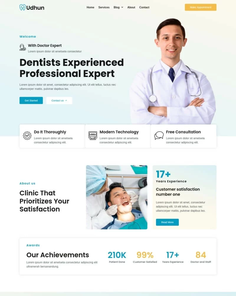 با استفاده از کیت قالب المنتور دندانپزشکی Udhun، شما میتوانید به راحتی یک وبسایت حرفهای و خیرهکننده برای کلینیک دندانپزشکی خود ایجاد کنید. این کیت با طراحی مدرن و امکانات سفارشیسازی آسان، به شما امکان میدهد تا بدون نیاز به کدنویسی، وبسایت خود را تنها با کشیدن و رها کردن عناصر ایجاد و ویرایش کنید. با این کیت، میتوانید حضور آنلاین خود را بهبود بخشیده و به راحتی با مخاطبان خود ارتباط برقرار کنید و خدمات دندانپزشکی خود را به بهترین شکل به نمایش بگذارید.
