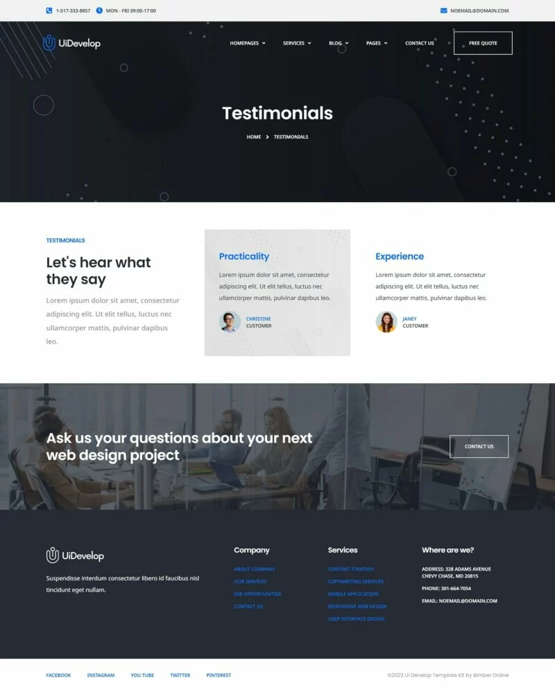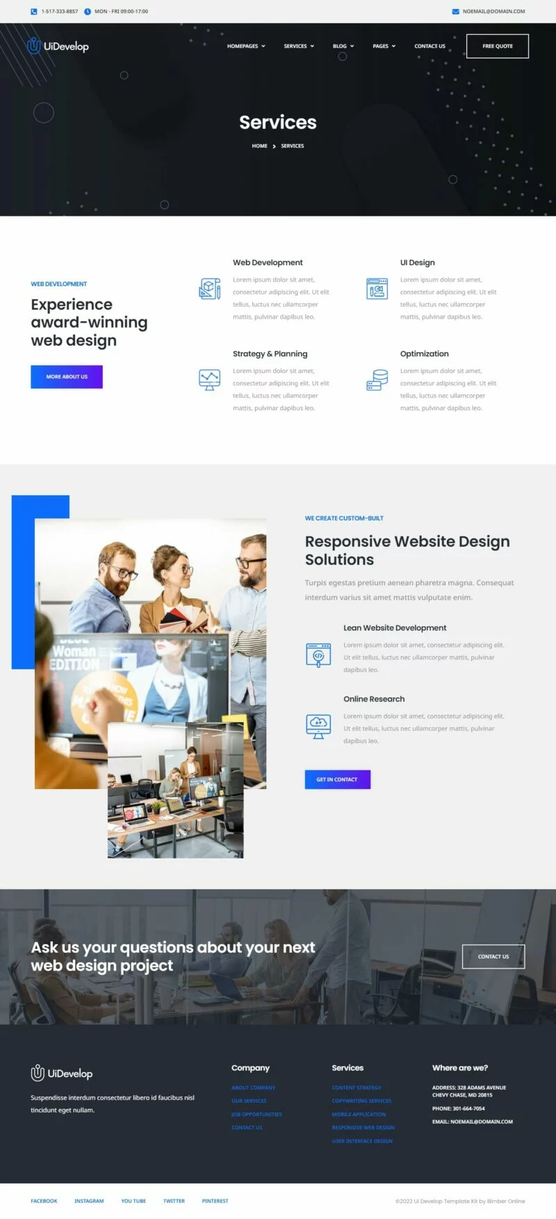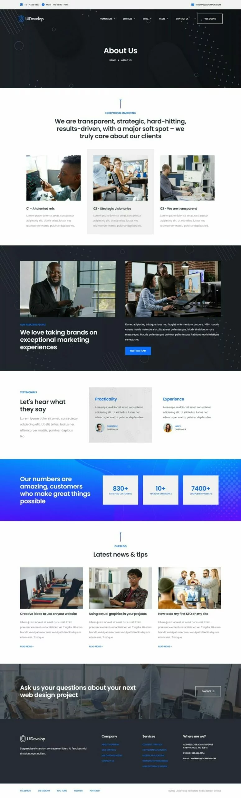 با کیت قالب المنتور شرکت طراحی وب UiDevelop شما همه چیزهایی که برای داشتن یک وبسایت در سطح جهانی نیاز دارید را خواهید داشت تا مشتریان خود را به خدمات طراحی وب، نگهداری، ایجاد، بازاریابی یا خدمات SEO جذب کنید.
