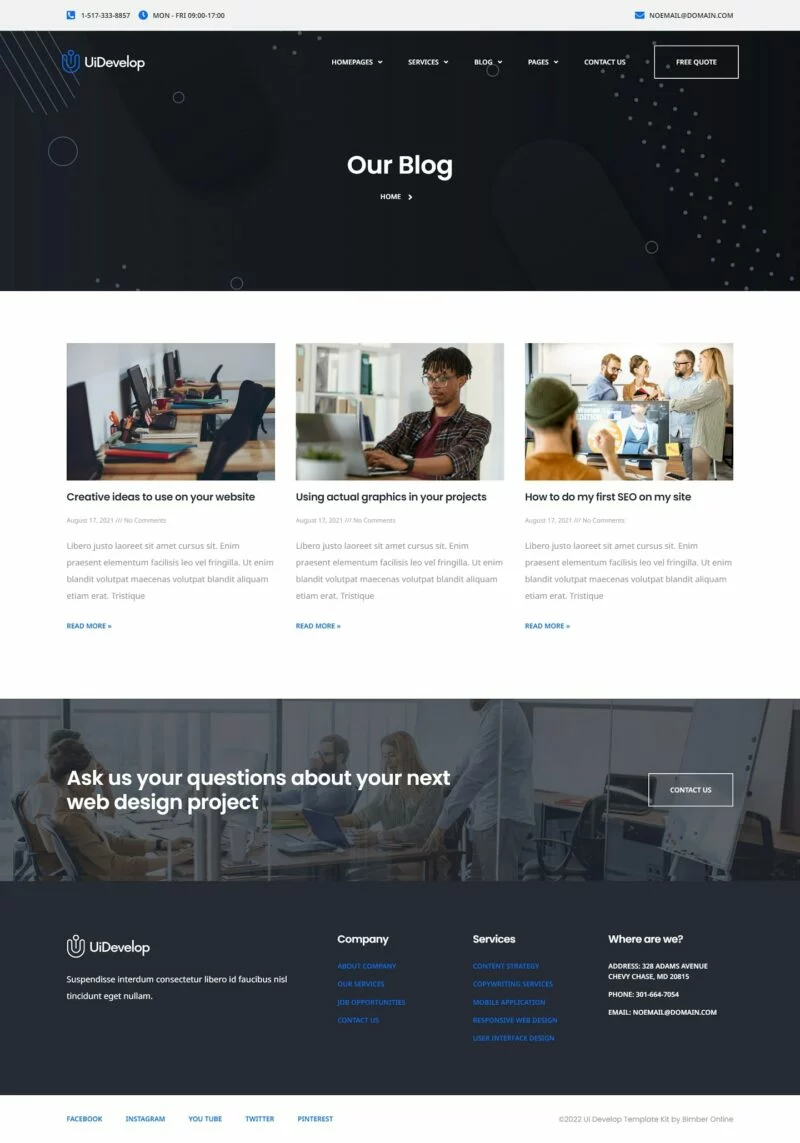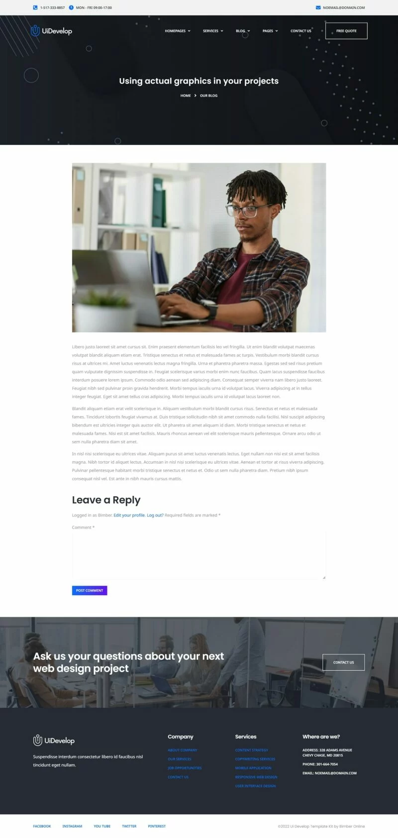 اگر نیاز به نوشتن نکات در مورد کسب و کار طراحی وب خود دارید، کیت قالب UiDevelop دارای منطقه وبلاگ برای نمایش محتوا به مشتریان شماست.