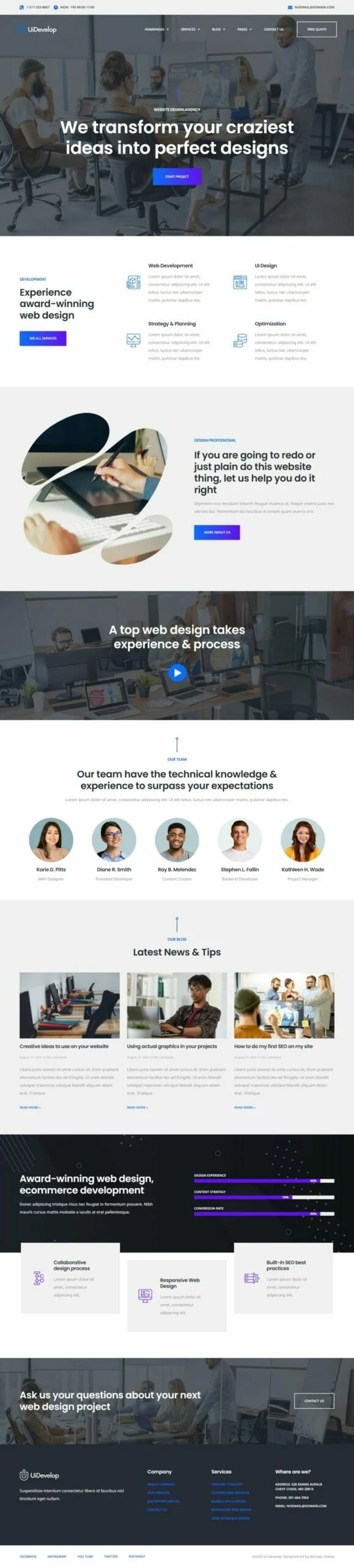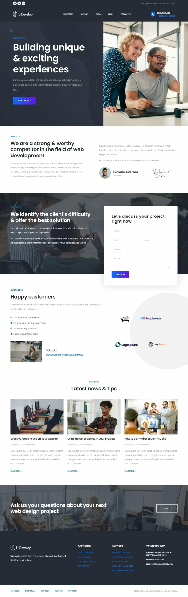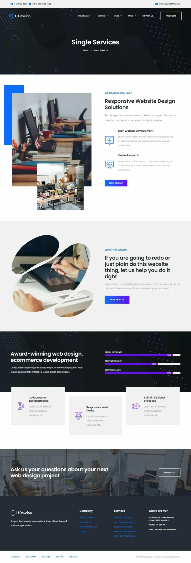کیت قالب UiDevelop با ظاهری مدرن و کیفیت بالا ساخته شده است و از آخرین روندهای طراحی وب پیروی میکند.