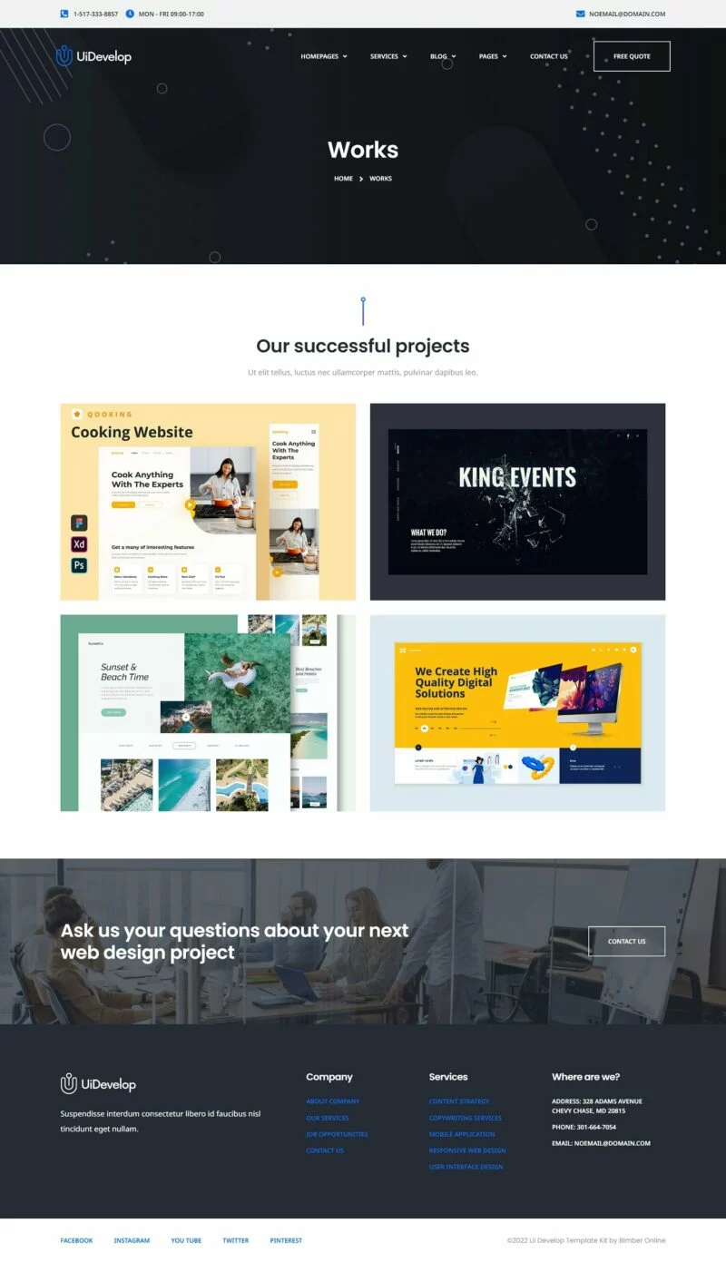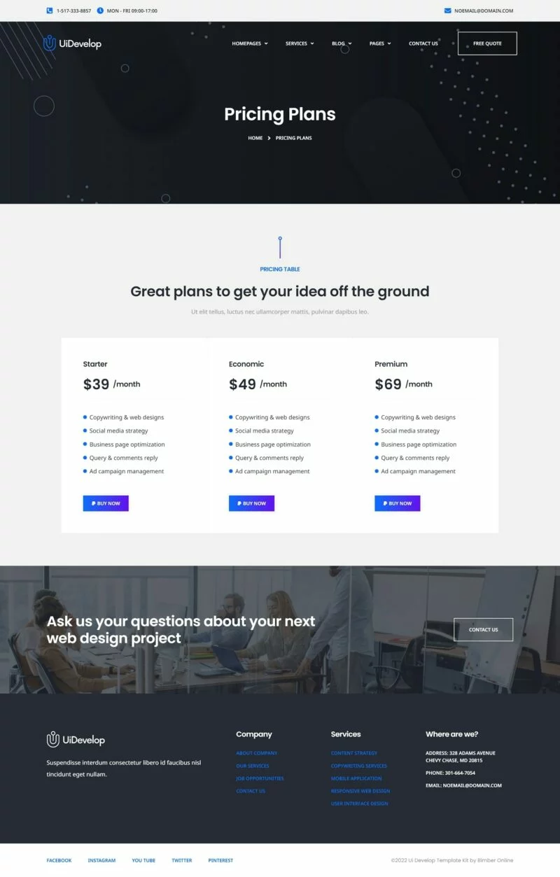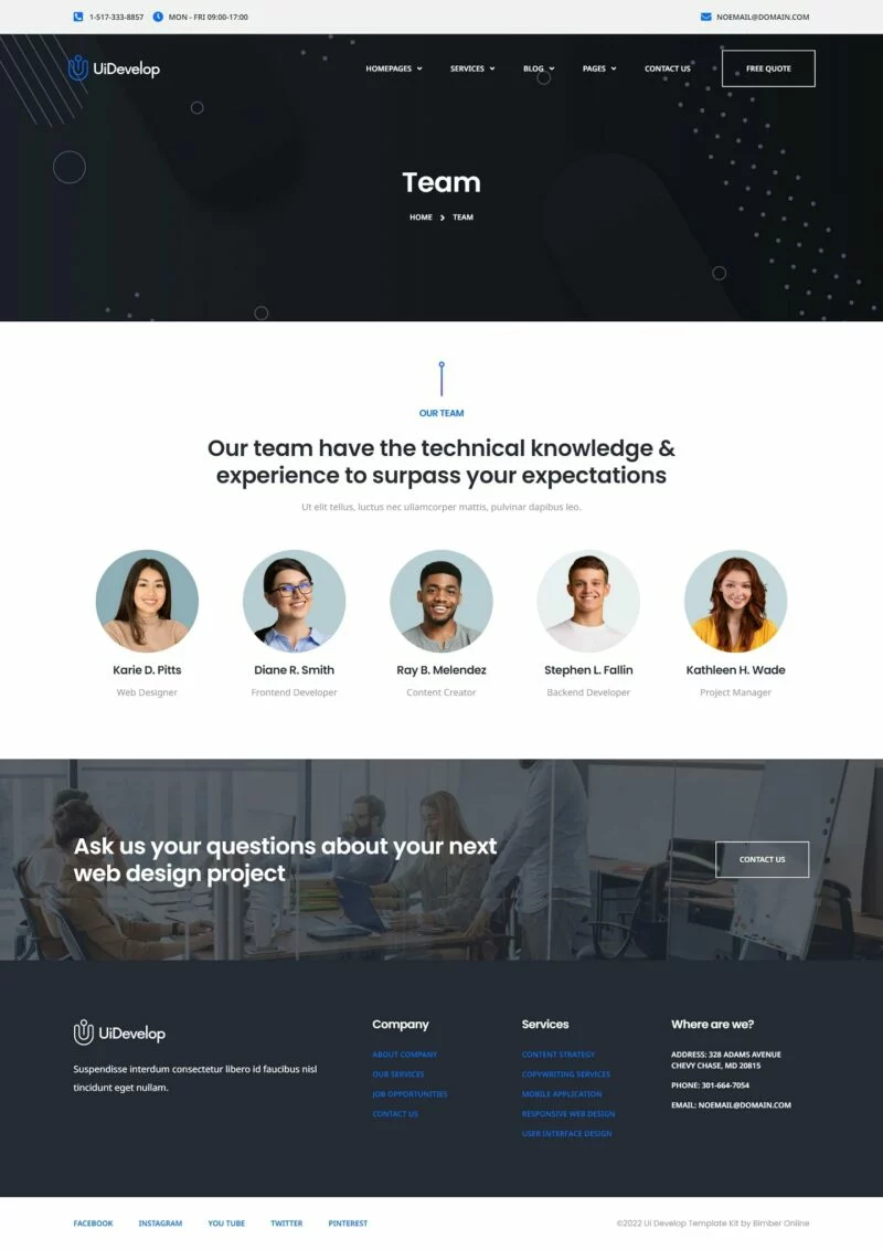 کیت قالب UiDevelop با ظاهری مدرن و کیفیت بالا ساخته شده است و از آخرین روندهای طراحی وب پیروی میکند.