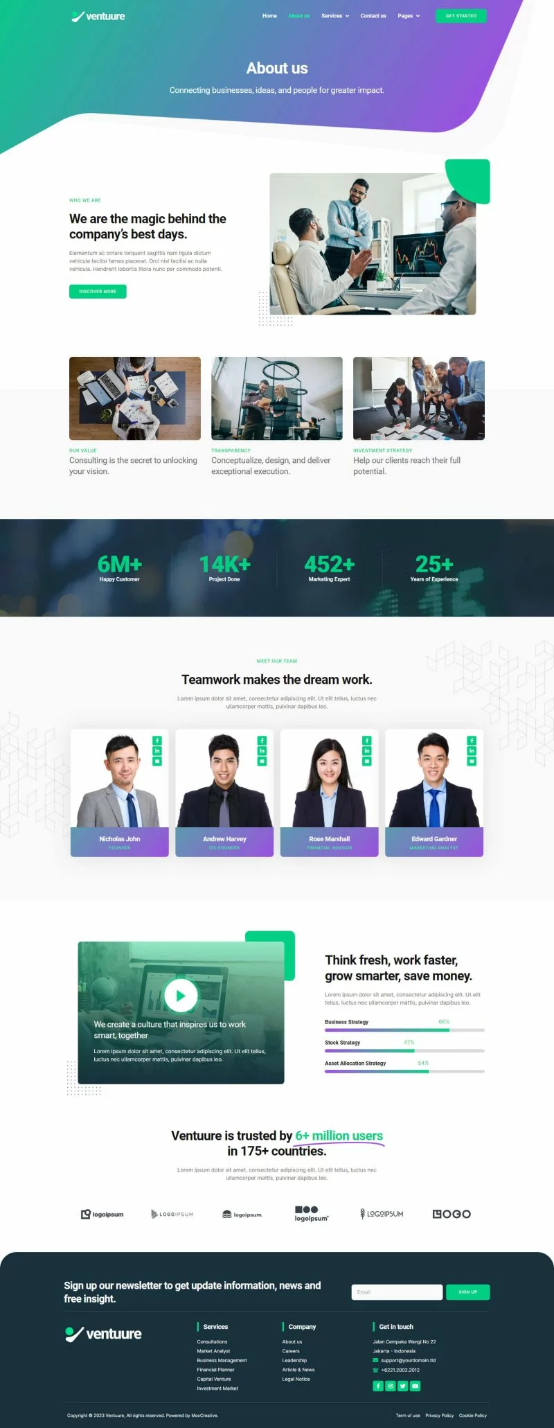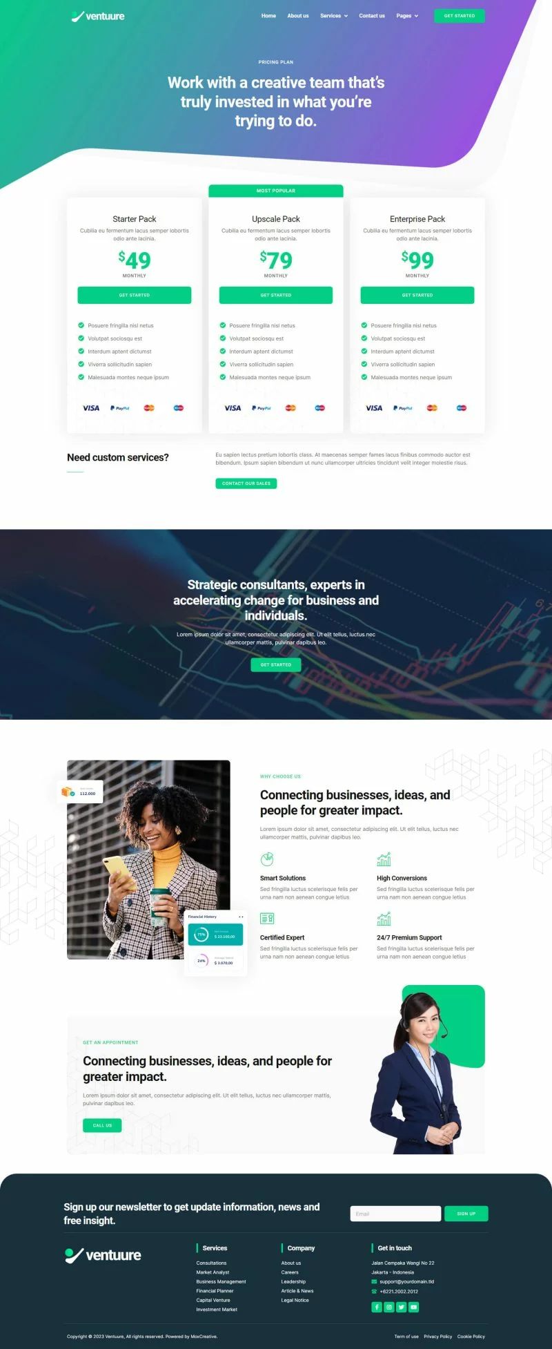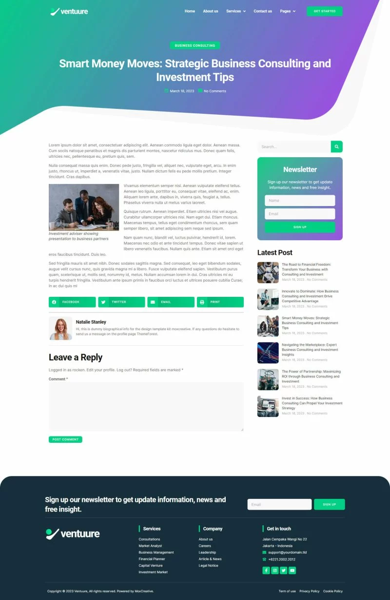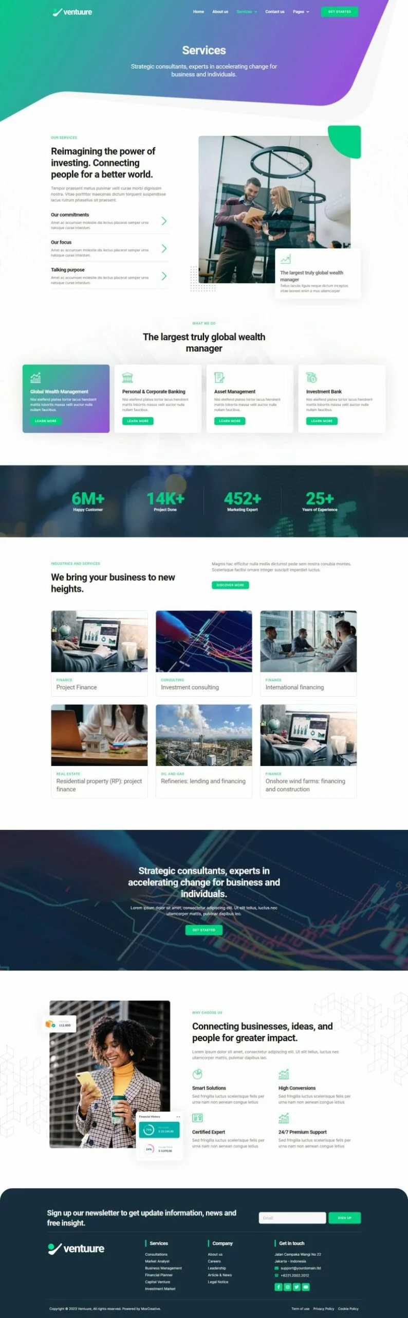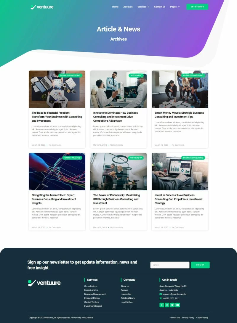 کیت قالب المنتور مشاوره کسب و کار و سرمایهگذاری Ventuure مناسب برای ایجاد هر وبسایتی مرتبط با مشاوره کسب و کار و سرمایهگذاری مانند شرکتهای تجاری، سرمایهگذاری، صندوقهای سرمایهگذاری مشترک، مدیریت ثروت، مشاوره سرمایهگذاری، سرمایهگذاری کریپتو، سرمایهگذاری در سهام و غیره میباشد. این کیت دارای بیش از 12 قالب آماده با طراحی مدرن، ساده و حرفهای است.