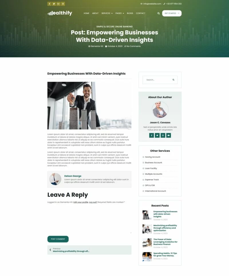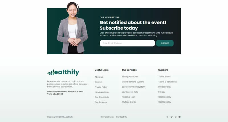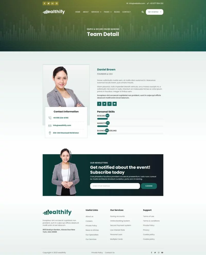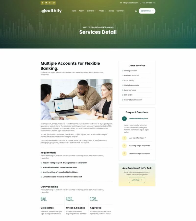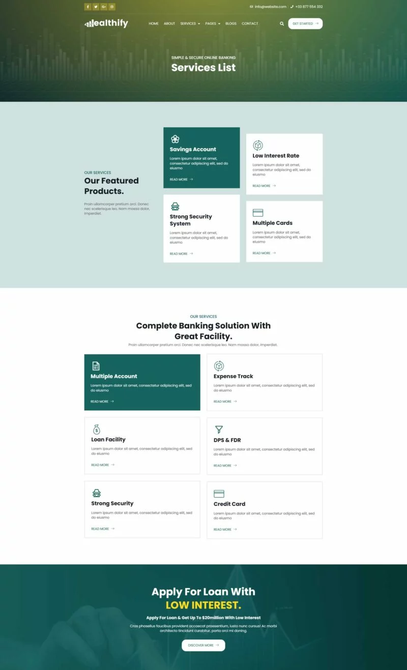 کیت قالب المنتور بانکداری آنلاین Wealthify برای استفاده در بانکداری موبایل، مشاوره تجاری، وامهای بانکی، مالی، مدیریت سرمایهگذاری، بیمه، تجارت فارکس، راهحلهای پرداخت و بسیاری موارد دیگر بسیار مناسب است. این کیت قالب شامل 15+ صفحه با طراحی ساده، مدرن و تمیز و با یک طرح 100٪ پاسخگو است که بسیار آسان برای سفارشیسازی بوده و توسط هر کسی که برای تضمین خوشحالی و رضایت مشتری طراحی و توسعه داده شده است، قابل استفاده میباشد.