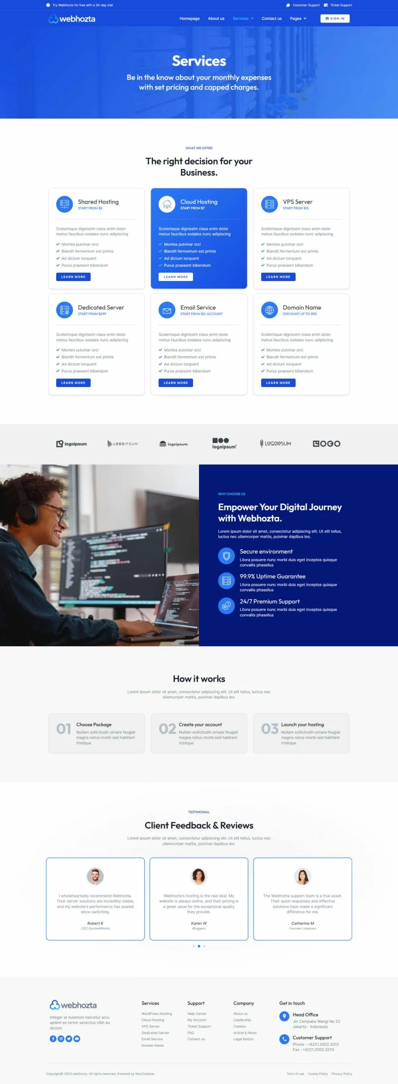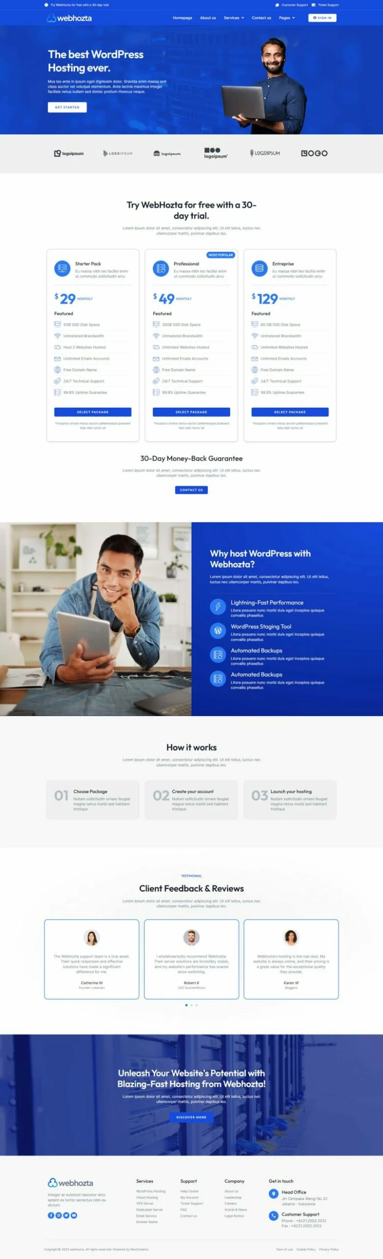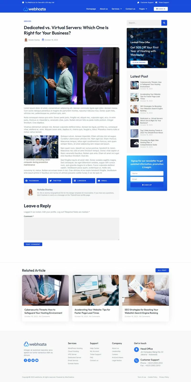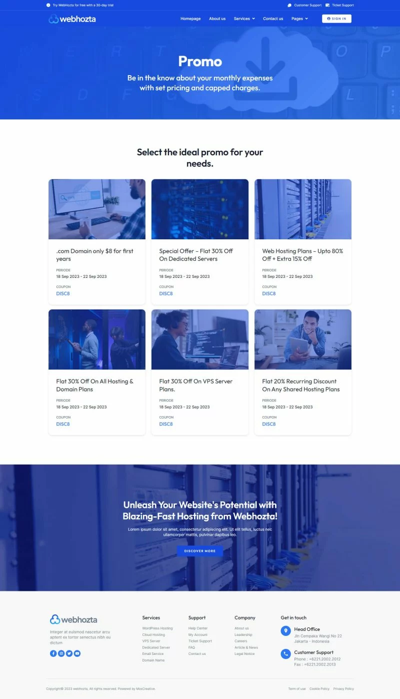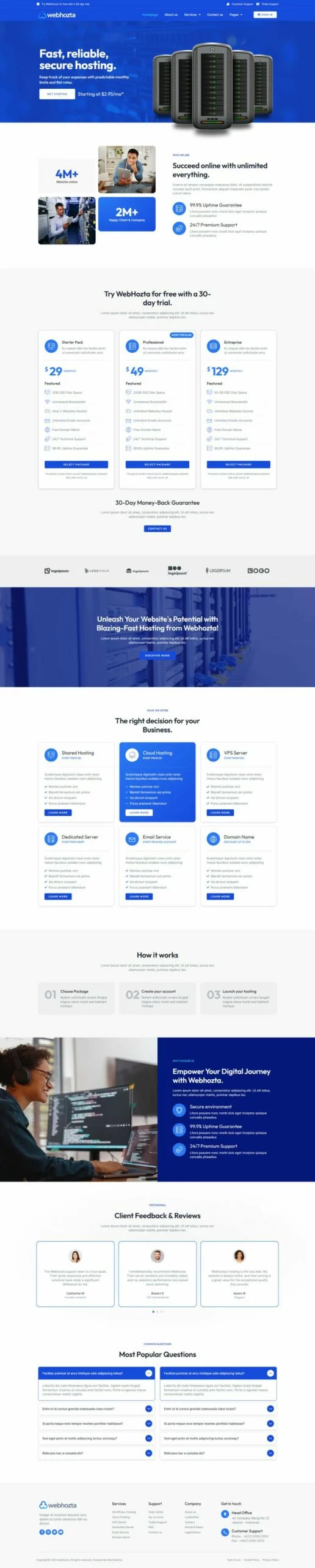کیت قالب المنتور خدمات میزبانی وب WebHozta با طراحی مدرن و حرفهای، مناسب برای هر کسب و کاری که به میزبانی وب و خدمات مرتبط میپردازد، میباشد.