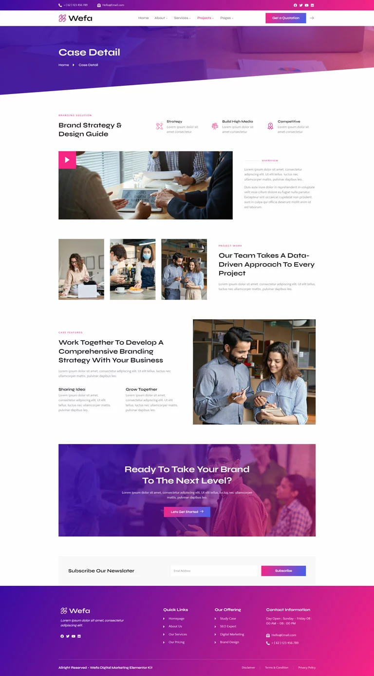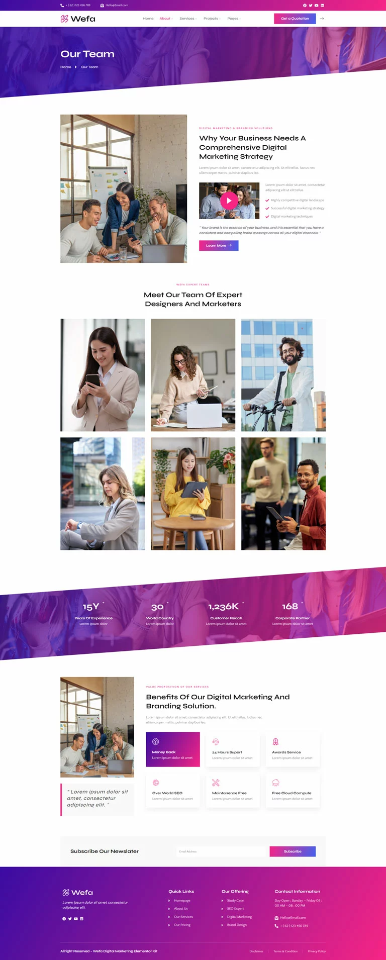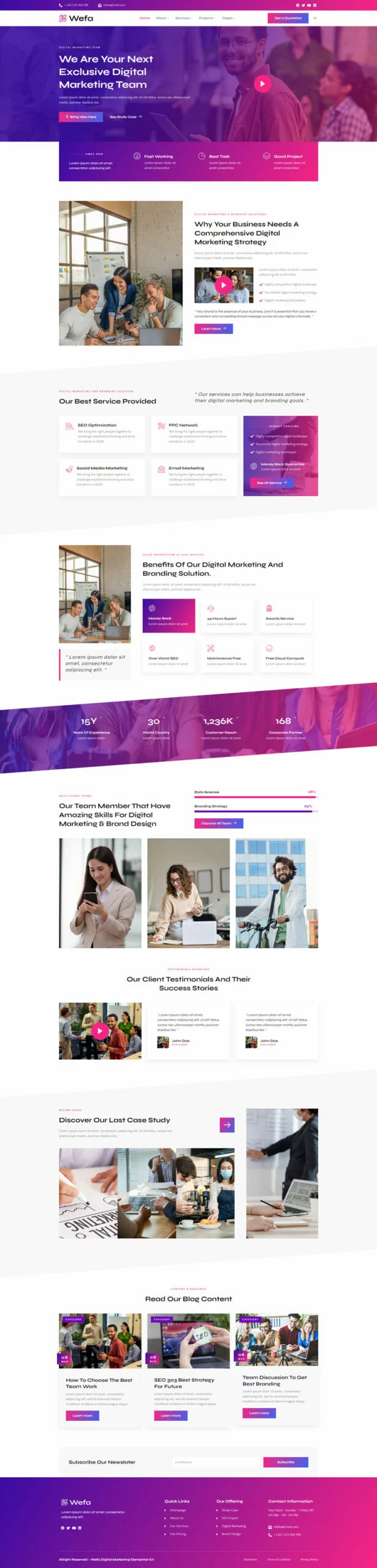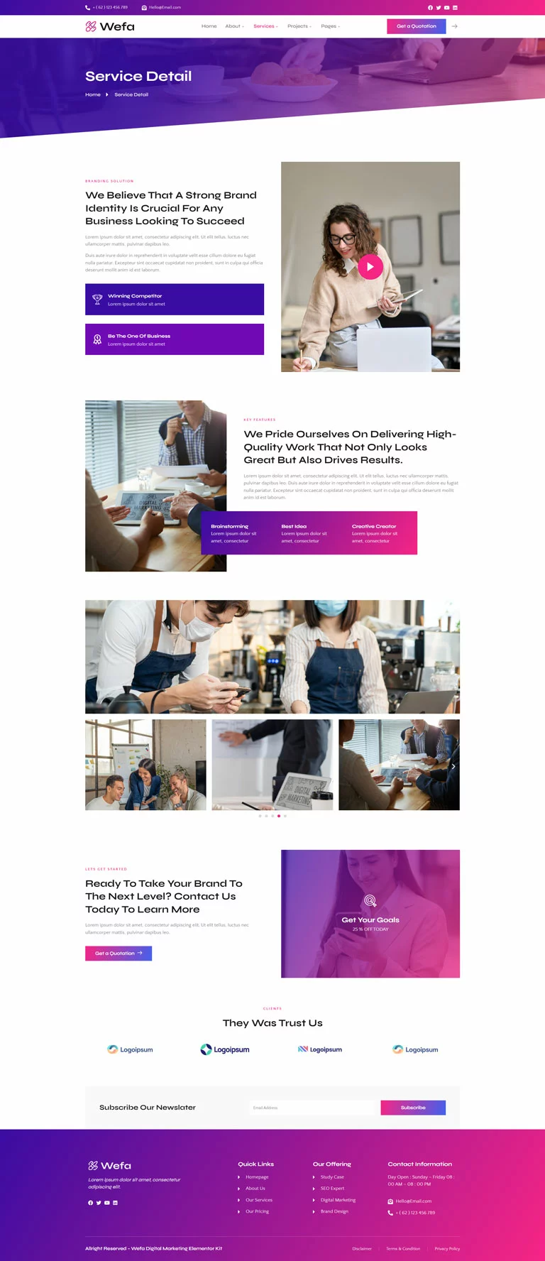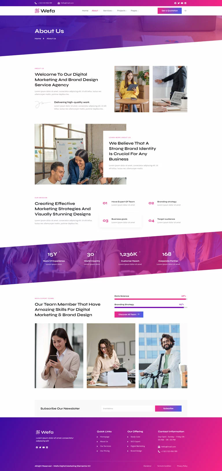 توضیحات بیشتر درباره کیت قالب المنتور آژانس طراحی برند و بازاریابی دیجیتال Wefa
