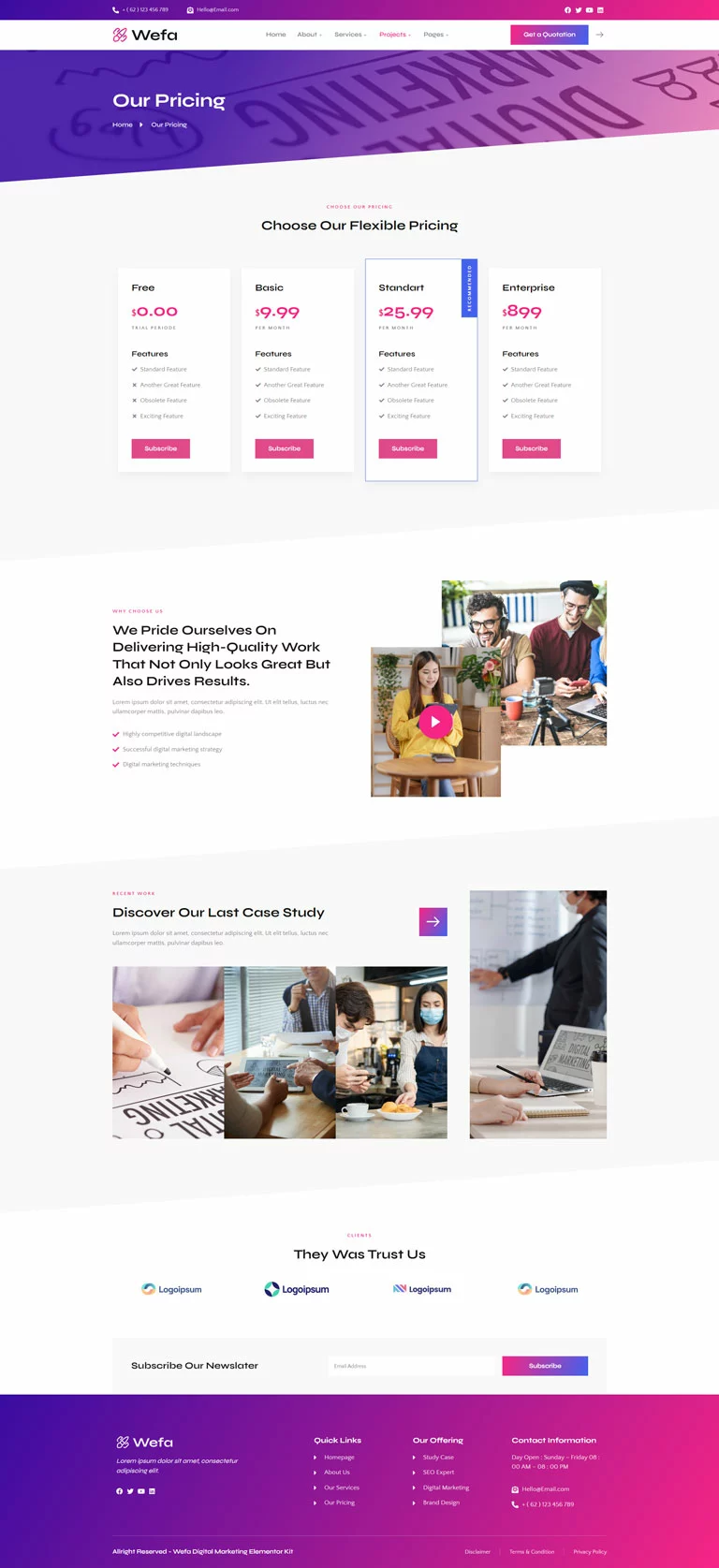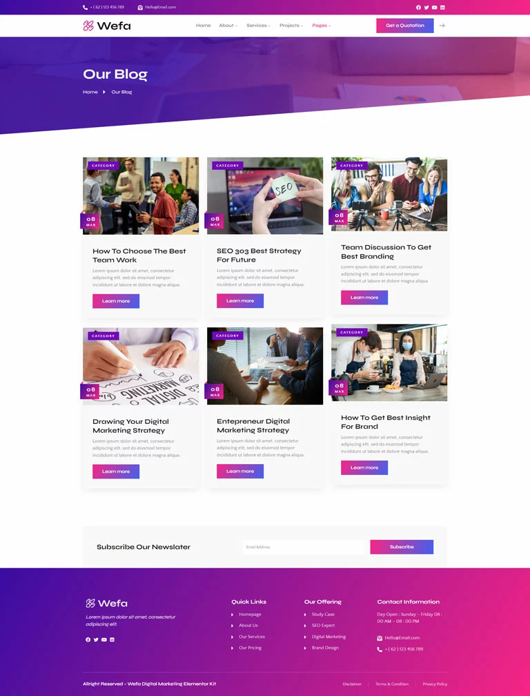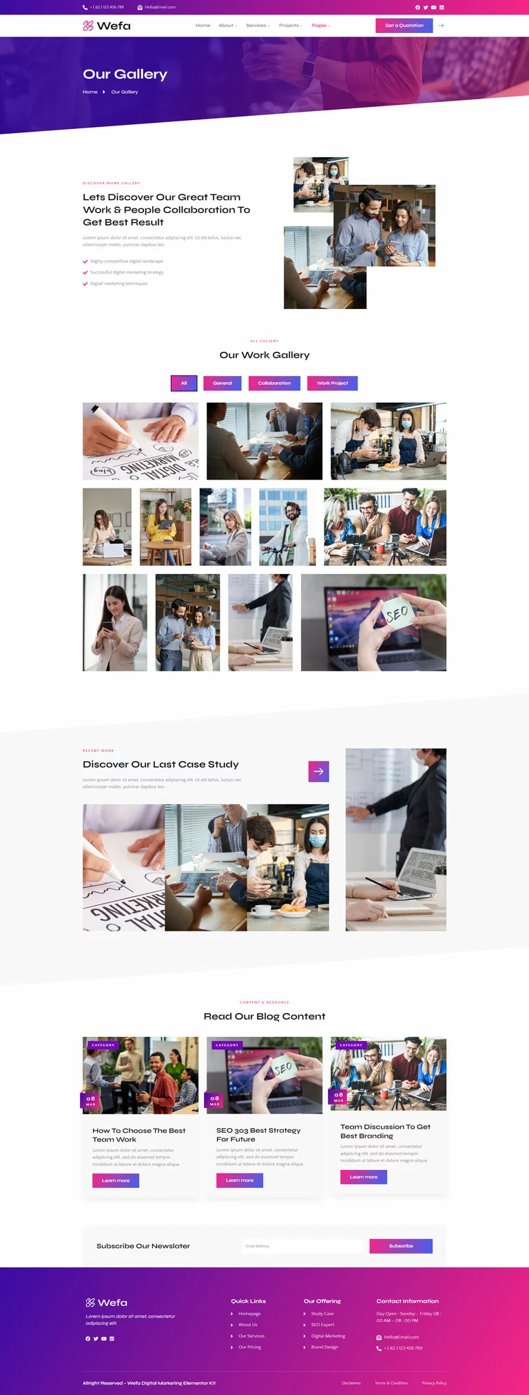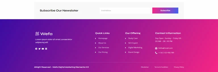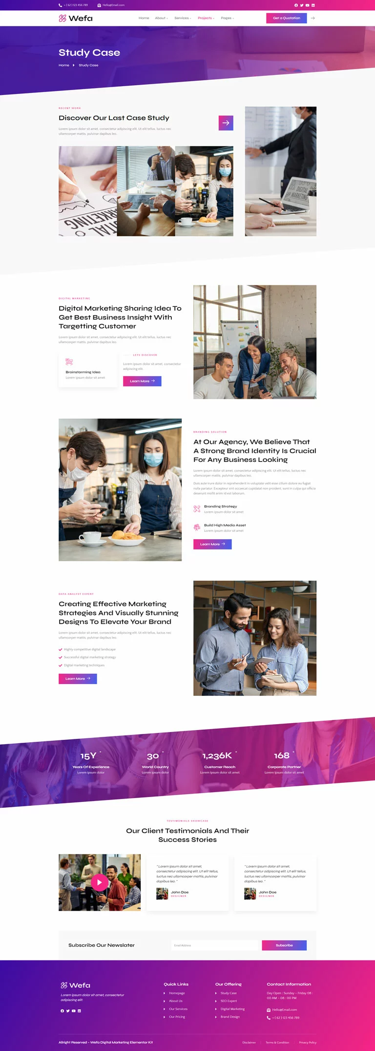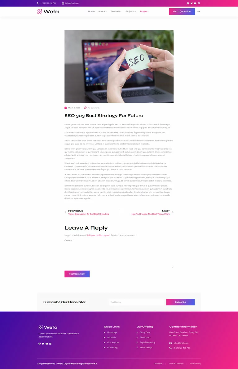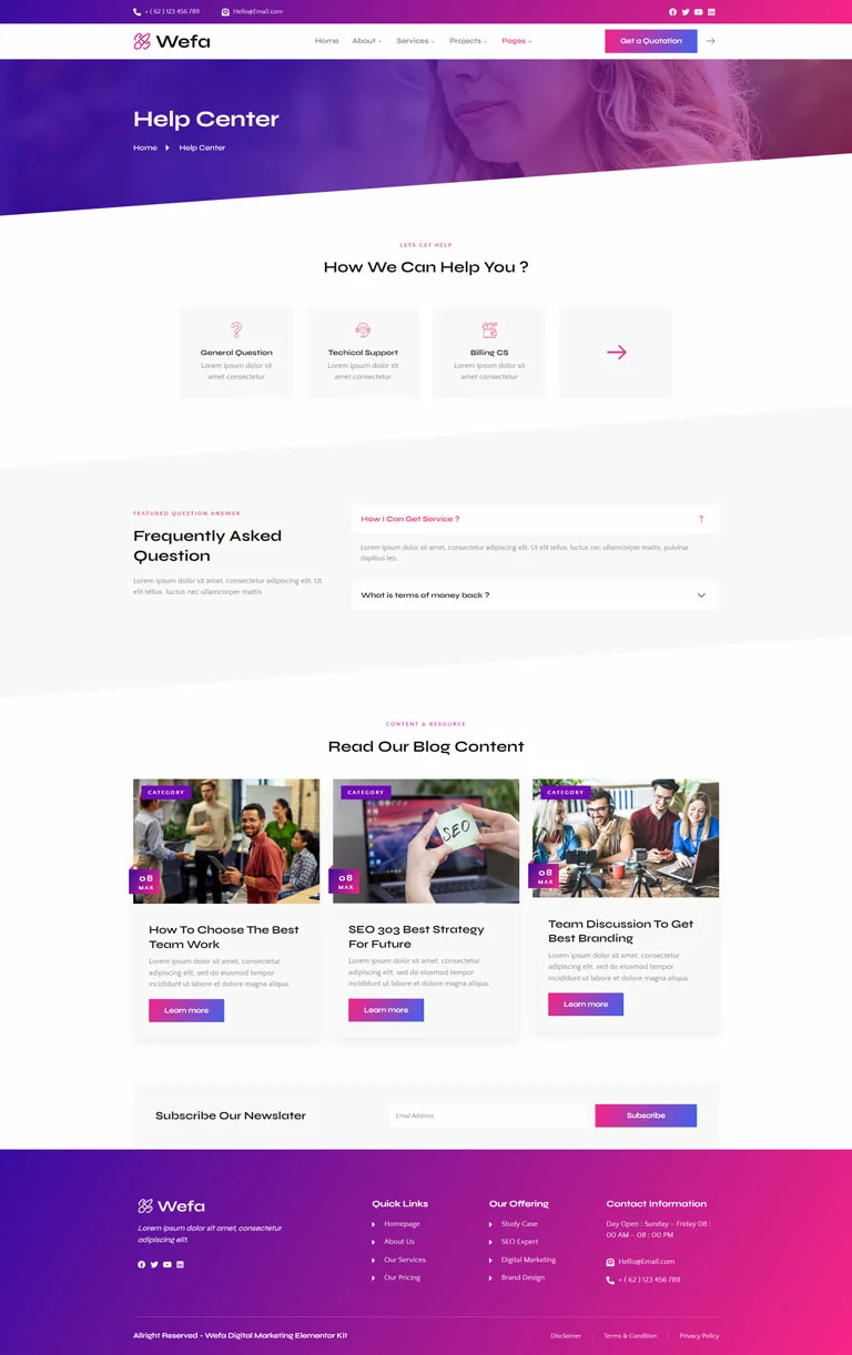 توضیحات بیشتر درباره کیت قالب المنتور آژانس طراحی برند و بازاریابی دیجیتال Wefa