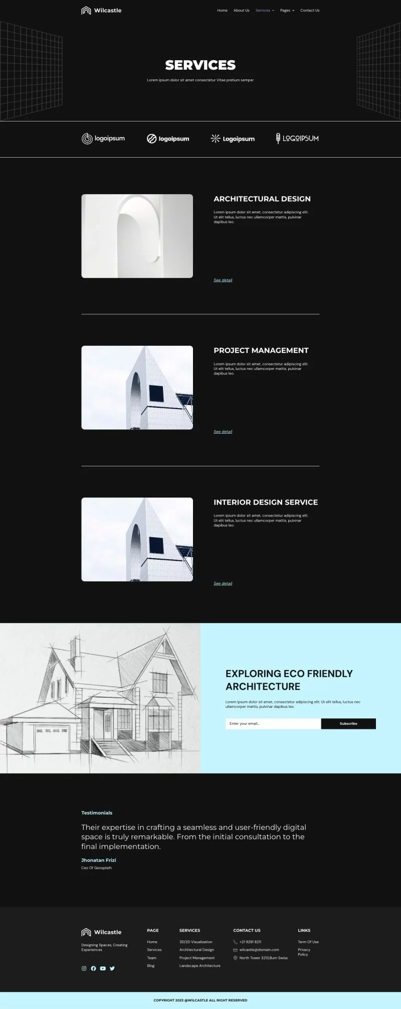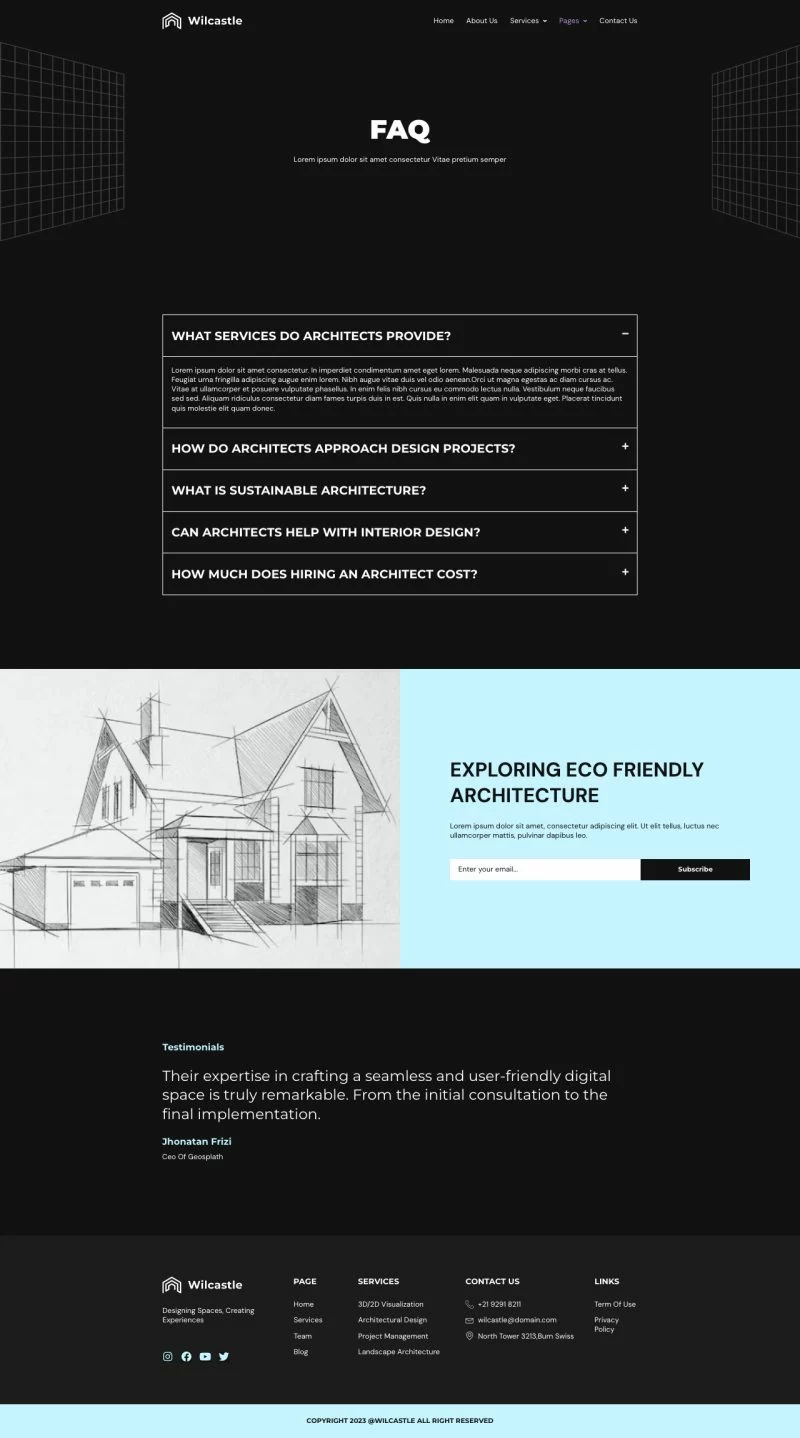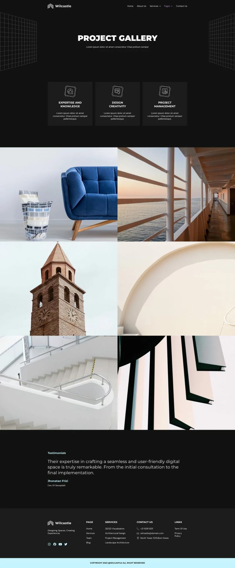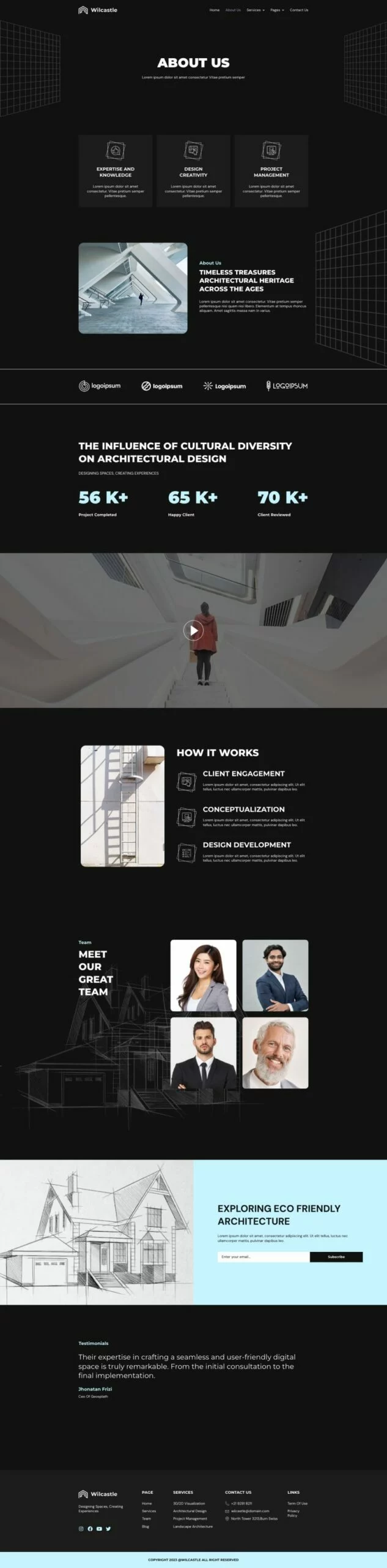 کیت قالب المنتور معماری و طراحی داخلی Wilcastle برای ایجاد سریع و آسان وبسایتهای آژانس و بازاریابی مدرن برای کسبوکار شما با استفاده از افزونه Elementor Page Builder برای وردپرس طراحی شده است. این یک قالب وردپرس نیست. کیتهای قالب حاوی محتوای صفحه برای افزونه صفحهساز المنتور هستند. این کیت برای استفاده با تم رایگان Hello Elementor بهینهسازی شده است اما میتواند با بیشتر تمهایی که از المنتور پشتیبانی میکنند، استفاده شود.