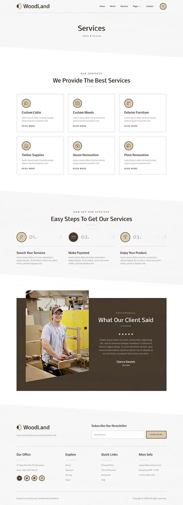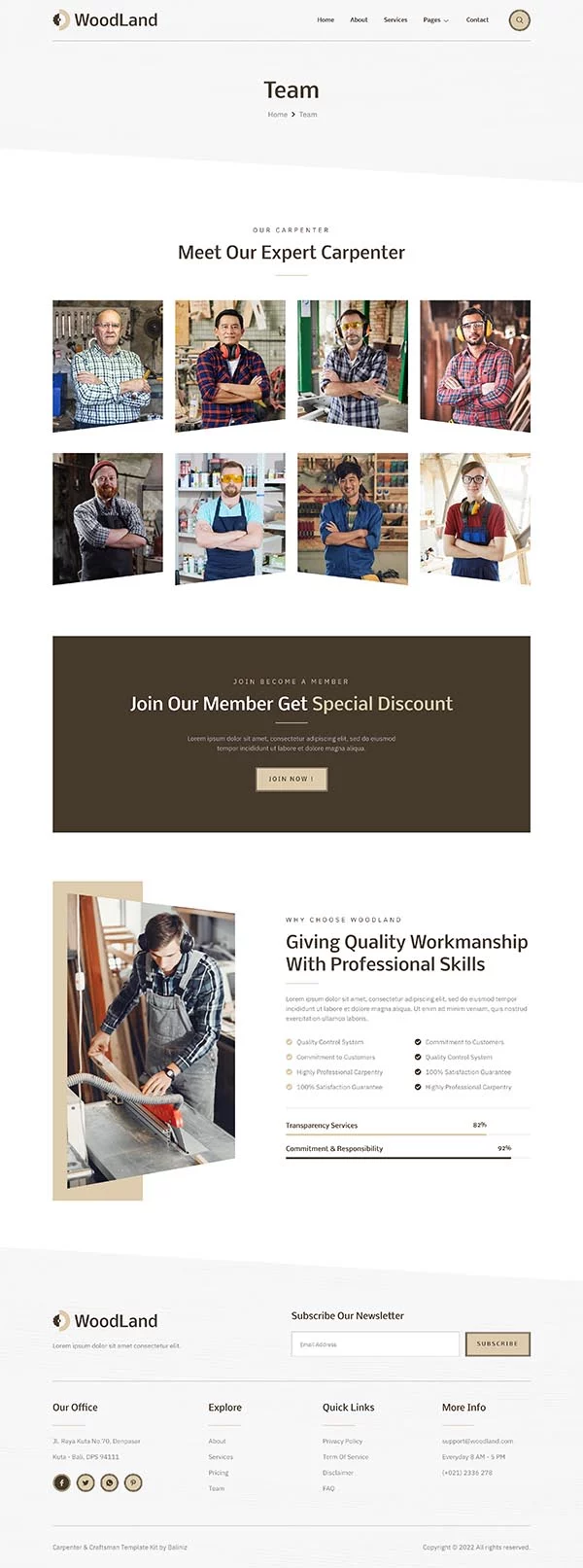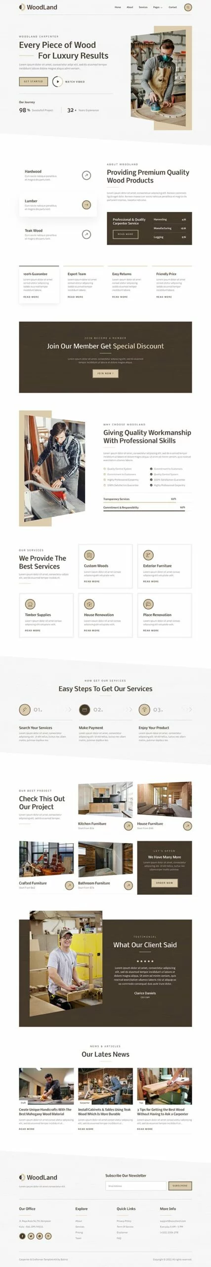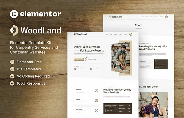کیت قالب المنتور نجاری WoodLand برای ایجاد وبسایتهای حرفهای و کارآمد برای خدمات نجاری، نجار، صنعتگر، چوبکاری، خدمات نوسازی داخلی و هر کسب و کار مرتبط دیگر طراحی شده است.