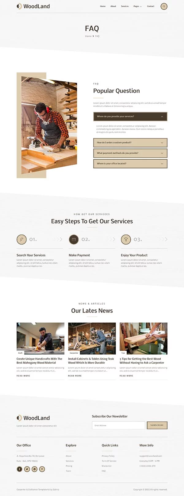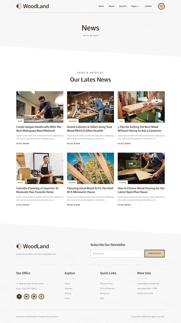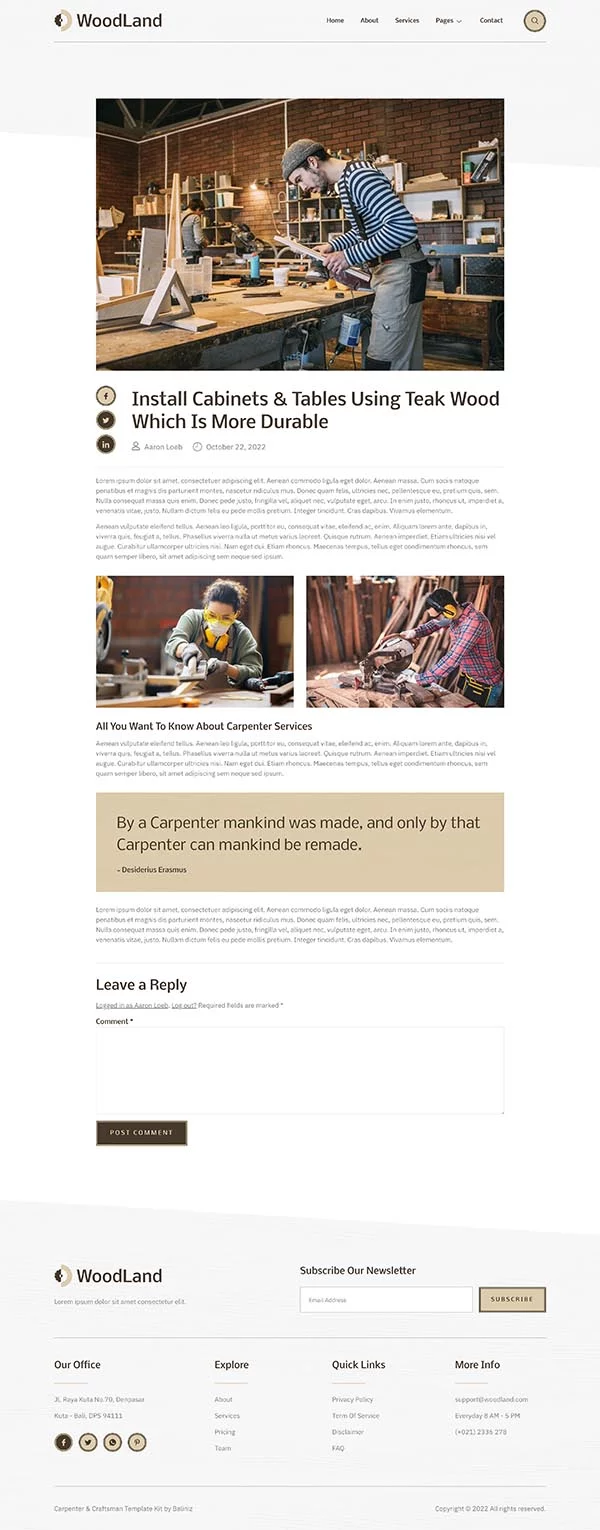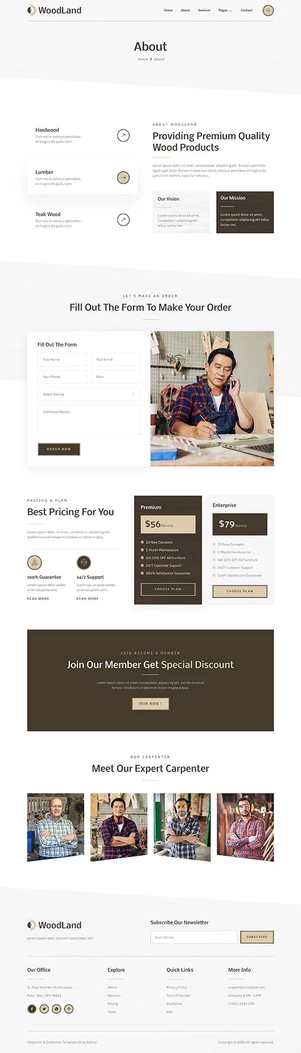 کیت قالب المنتور نجاری WoodLand برای ایجاد وبسایتهای حرفهای و کارآمد برای خدمات نجاری، نجار، صنعتگر، چوبکاری، خدمات نوسازی داخلی و هر کسب و کار مرتبط دیگر طراحی شده است.