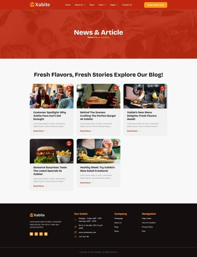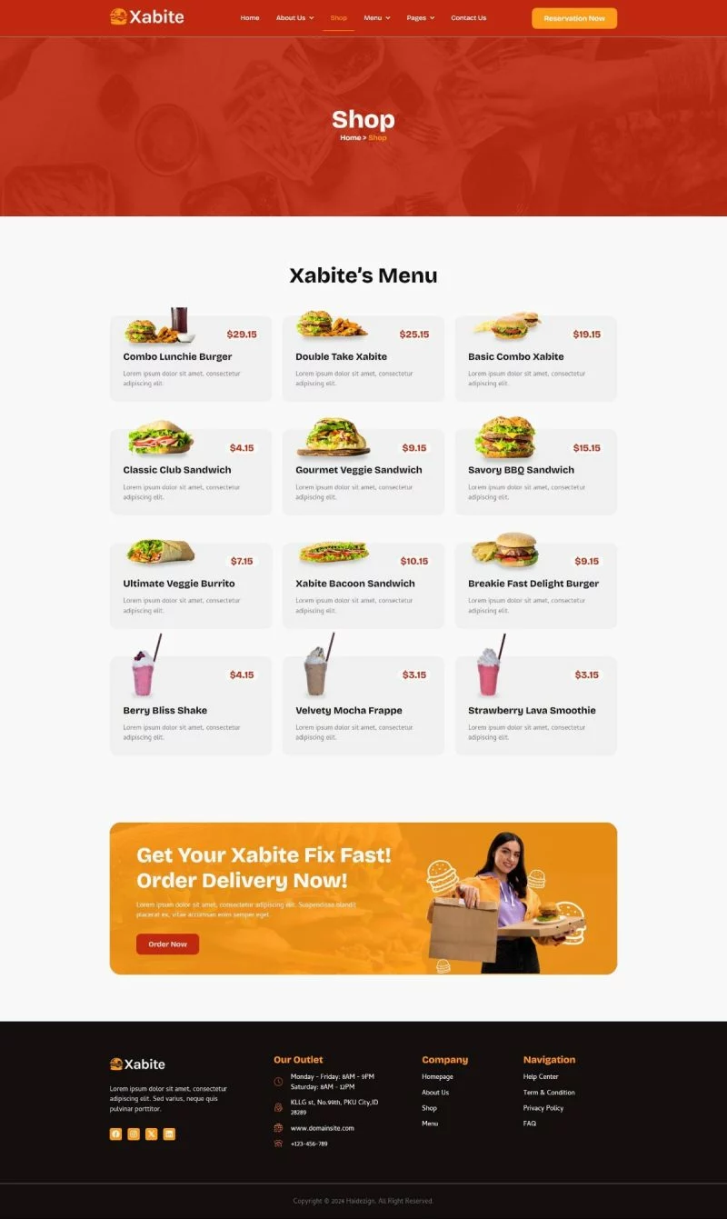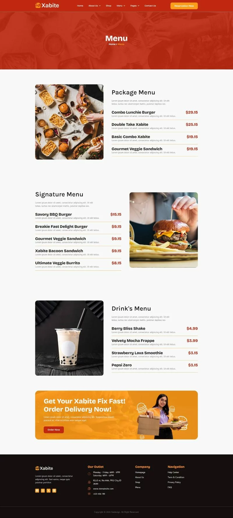 کیت قالب المنتور فست فود Xabite با انتخاب ایدهآل از قالبها برای برگر، کامبو، تحویل غذا، فست فود، غذا، فرنچایز، رستوران ارائه میشود. این کیت با طراحی مدرن و منحصربهفرد، کاملاً واکنشگرا، نصب آسان و سفارشیسازی بدون نیاز به حتی یک خط کدنویسی، باعث صرفهجویی در زمان شما میشود.