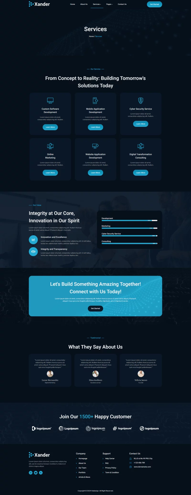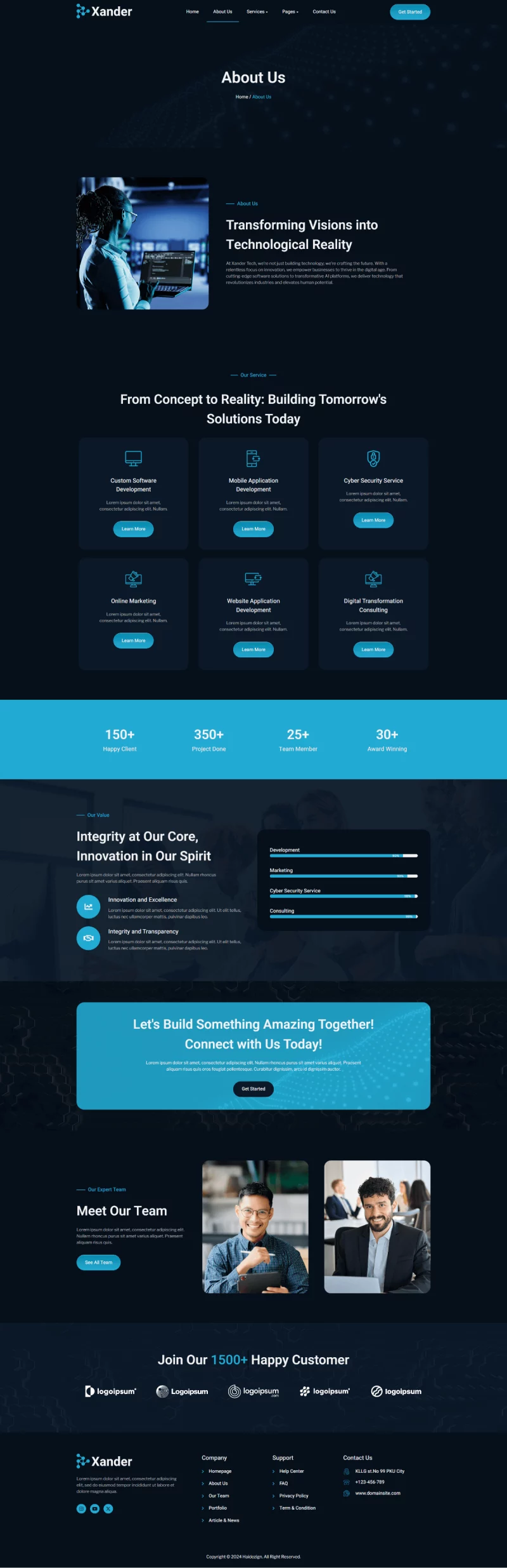 کیت قالب المنتور شرکت فناوری Xander شامل مجموعهای از قالبهای ایدهآل برای کسبوکارها، شرکتها، خدمات توسعه، آژانسهای دیجیتال، استارتاپها و هر نوع فعالیت مرتبط با فناوری اطلاعات و خدمات فناوری است. طراحی این قالب مدرن و منحصربهفرد است و با چیدمان 100% واکنشگرا ارائه میشود. نصب آسان و سفارشیسازی راحت از ویژگیهای برجسته این قالب است، به طوری که نیازی به هیچگونه کدنویسی نخواهید داشت!