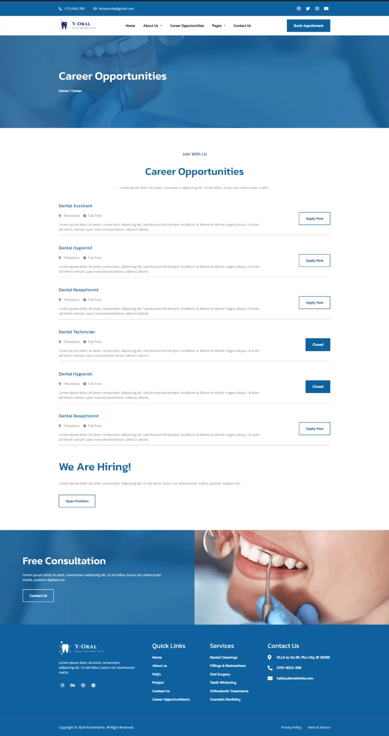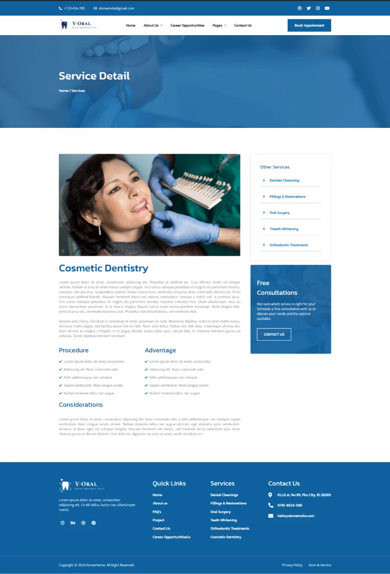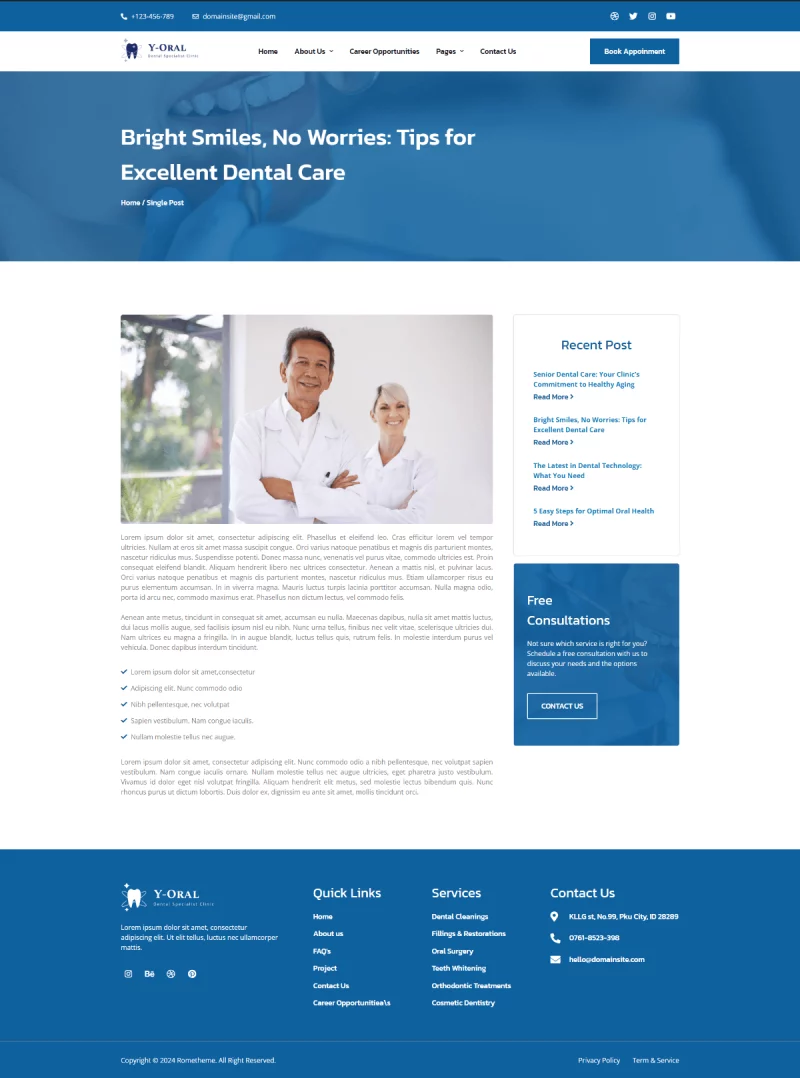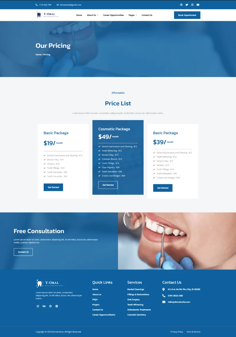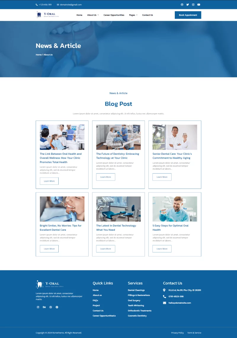 کیت قالب المنتور کلینیک دندانپزشکی Y-Oral بهطور ویژه برای وبسایتهای دندانپزشکی و کلینیکهای دندانپزشکی طراحی شده است. این کیت با مجموعهای از قالبهای ایدهآل برای کلینیکها، دندانپزشکی، مراقبت از دندان، درمانهای دندان، دندانپزشک، خدمات بهداشتی و پزشکی، طراحی شده است.