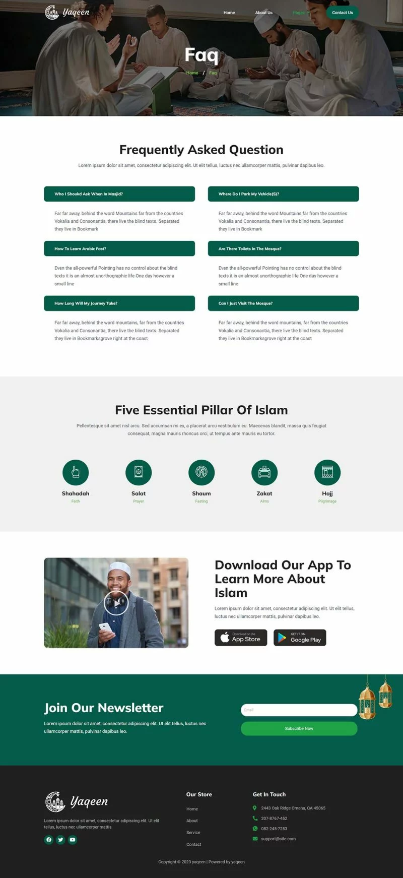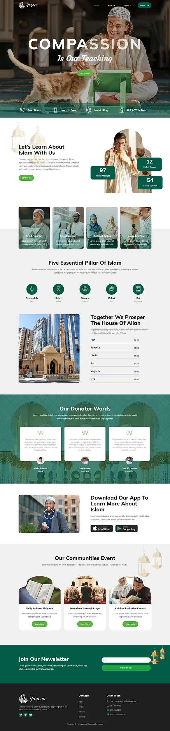 کیت قالب المنتور مرکز اسلامی و مسجد Yaqeen برای ایجاد سریع و آسان وبسایتهای کسبوکار شما با استفاده از افزونه Elementor Page Builder برای وردپرس طراحی شده است. این یک قالب وردپرس نیست بلکه مجموعهای از قالبهای آماده برای صفحهساز المنتور است. این کیت برای استفاده با قالب رایگان Hello Elementor بهینهسازی شده است اما ممکن است با اکثر قالبهایی که از المنتور پشتیبانی میکنند نیز قابل استفاده باشد.