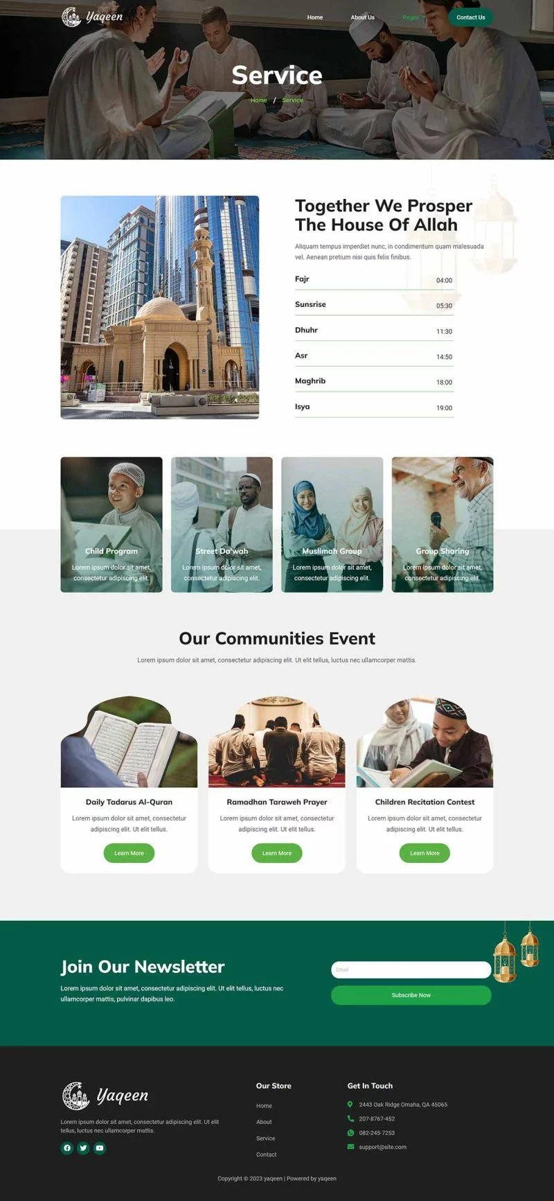 با کیت قالب المنتور Yaqeen، شما میتوانید یک وبسایت منحصر به فرد و جذاب برای نمایش خدمات و فعالیتهای مرکز اسلامی و مسجد خود ایجاد کنید و رضایت بازدیدکنندگان و جامعه خود را جلب کنید.