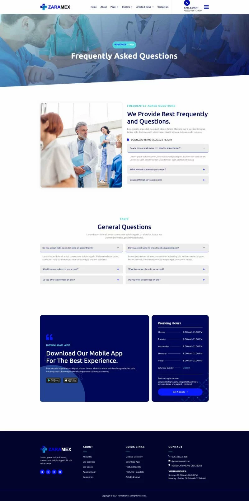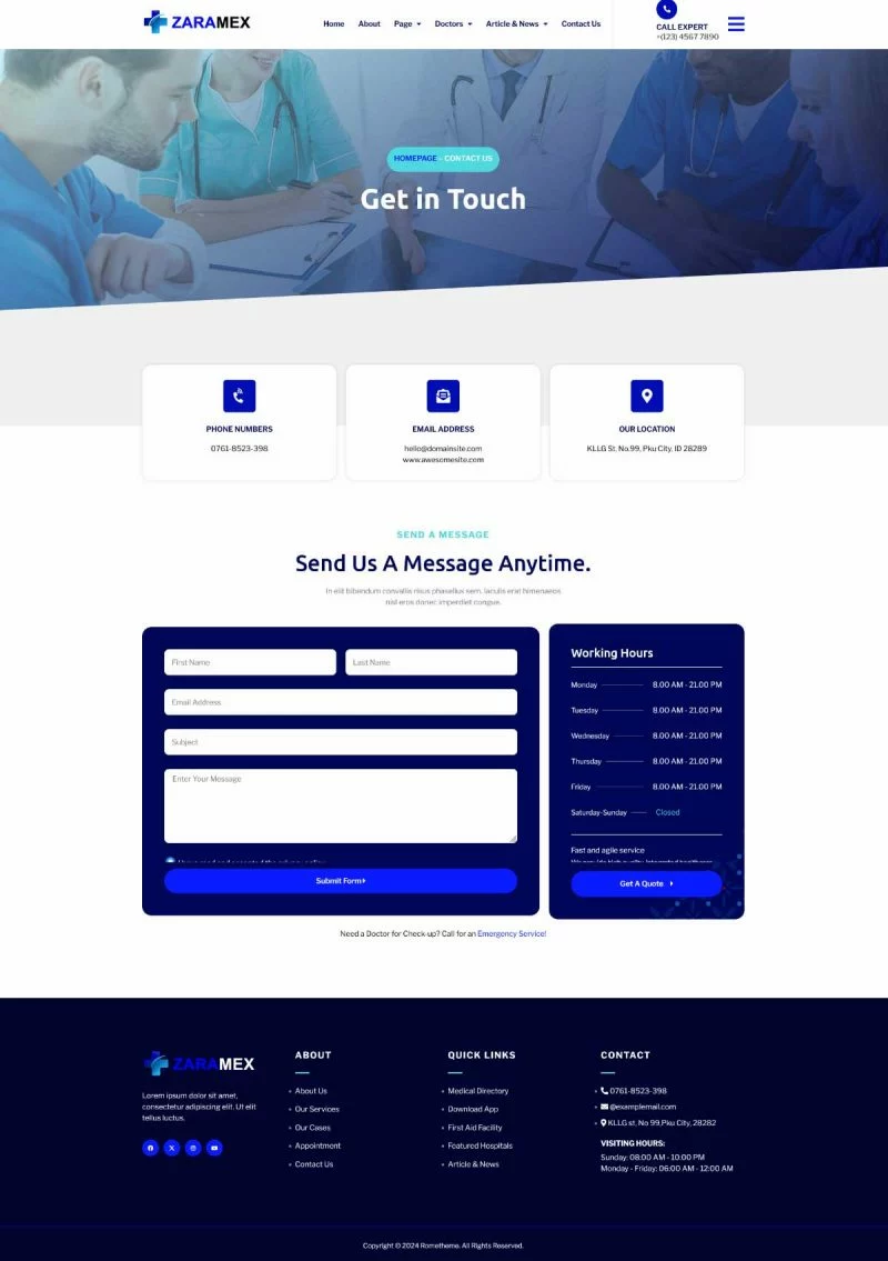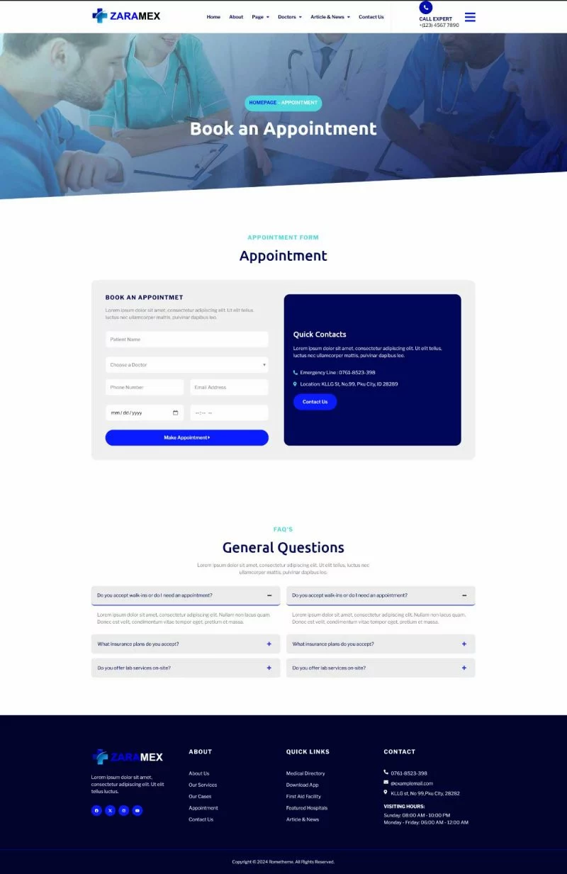 این قالب المنتور با ارائه بخشهای متنوع از جمله فرمهای مشاوره و نوبتدهی، به کسبوکارهای پزشکی کمک میکند تا به بهترین شکل خدمات خود را نمایش دهند و رضایت بیماران خود را جلب کنند. کیت قالب المنتور خدمات پزشکی و بهداشتی Zaramex با طراحی سریع و بهینهشده برای سئو، علاوه بر ظاهری زیبا، عملکردی قوی و بدون نقص ارائه میدهد و به شما در رسیدن به اهداف کسبوکارتان کمک میکند.